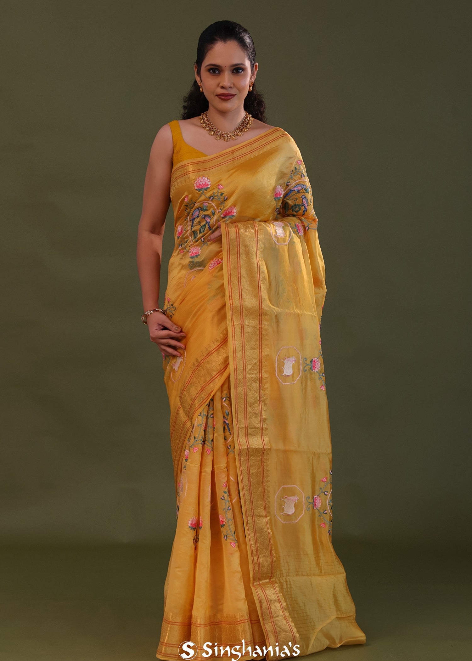 Tiger Orange Soft Chanderi Silk Saree With Embroidery Work