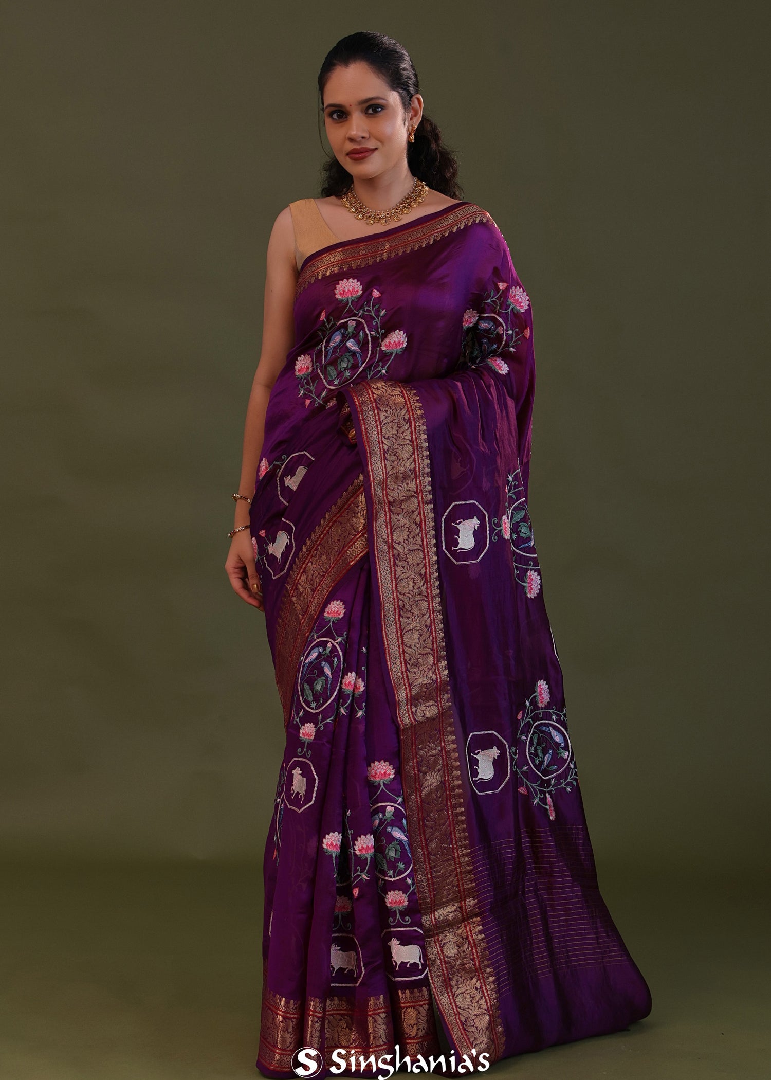 Very Dark Violet Soft Chanderi Silk Saree With Embroidery Work
