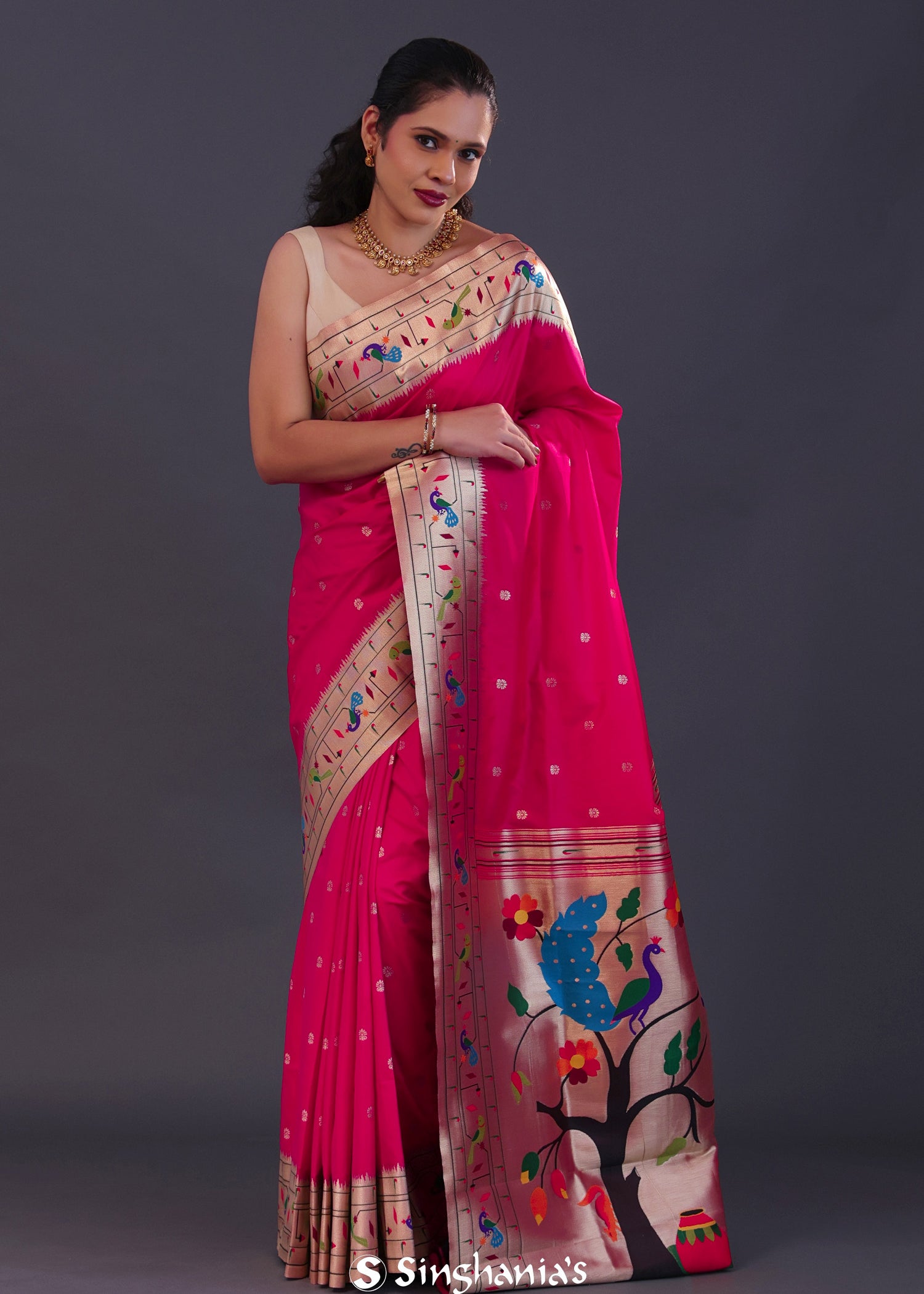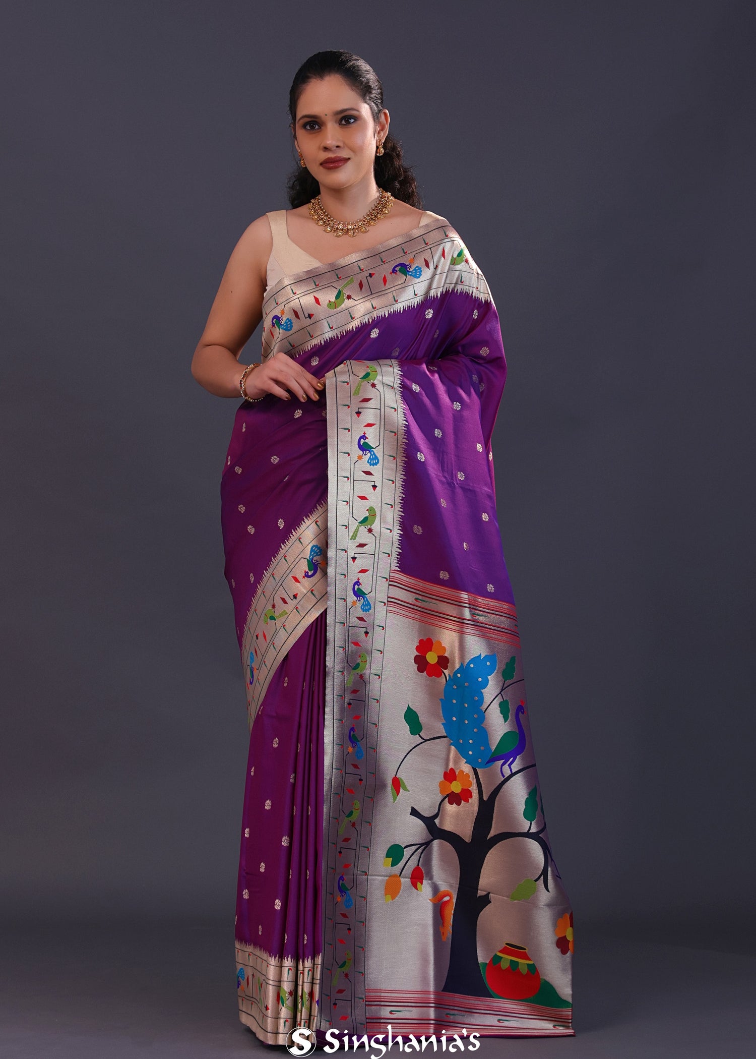 Dark Purple Burgundy Paithani Saree With Floral Butti'S