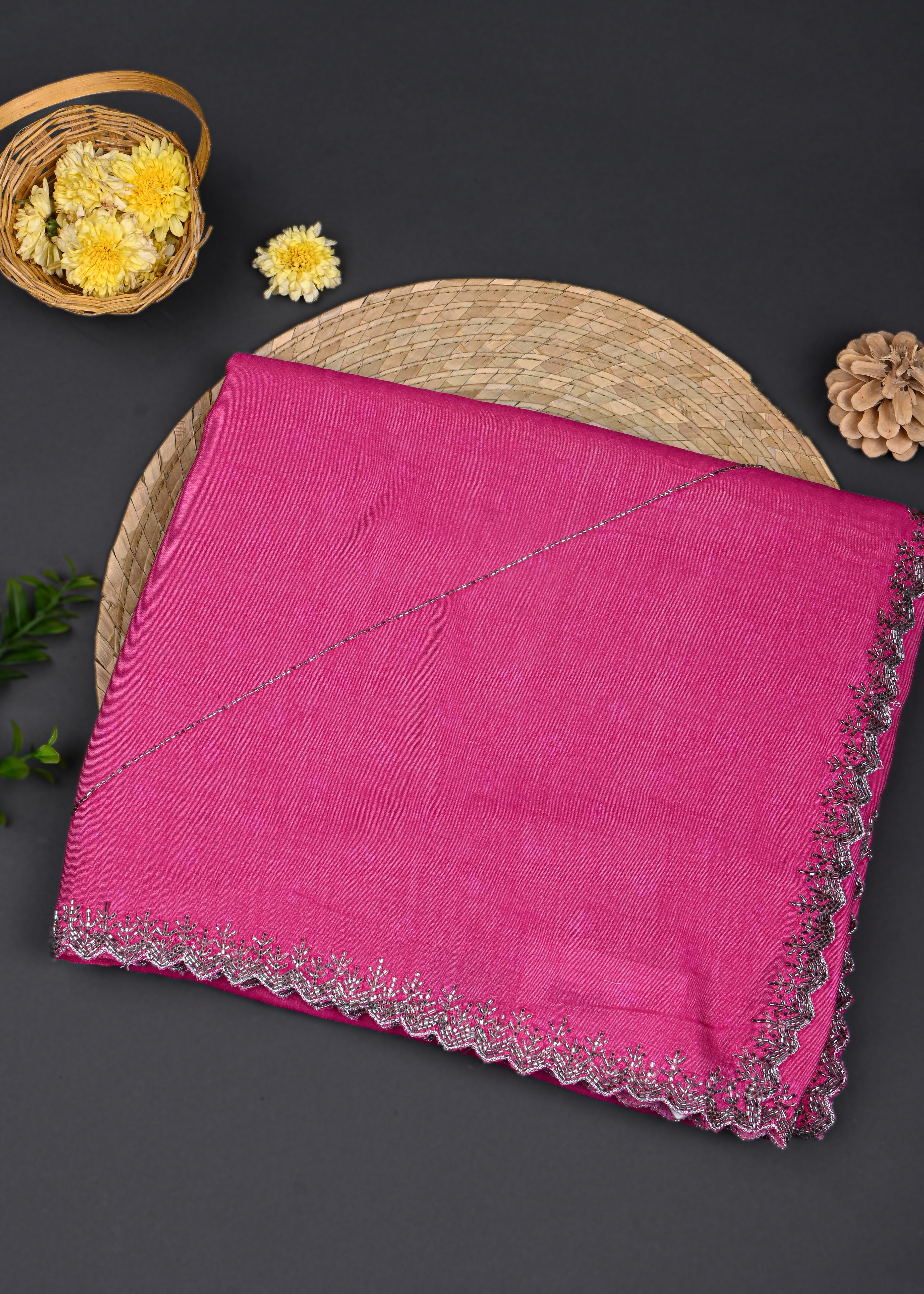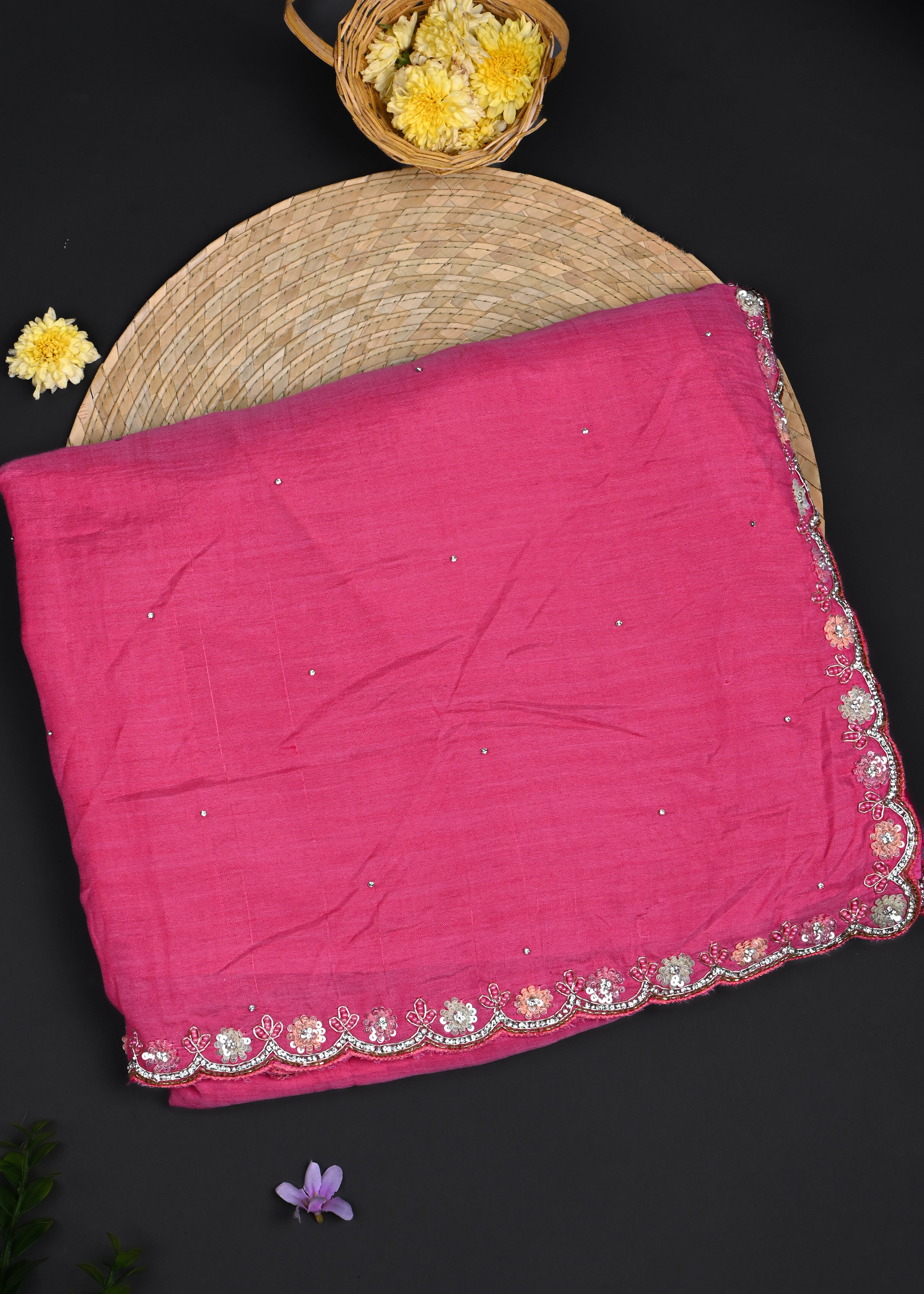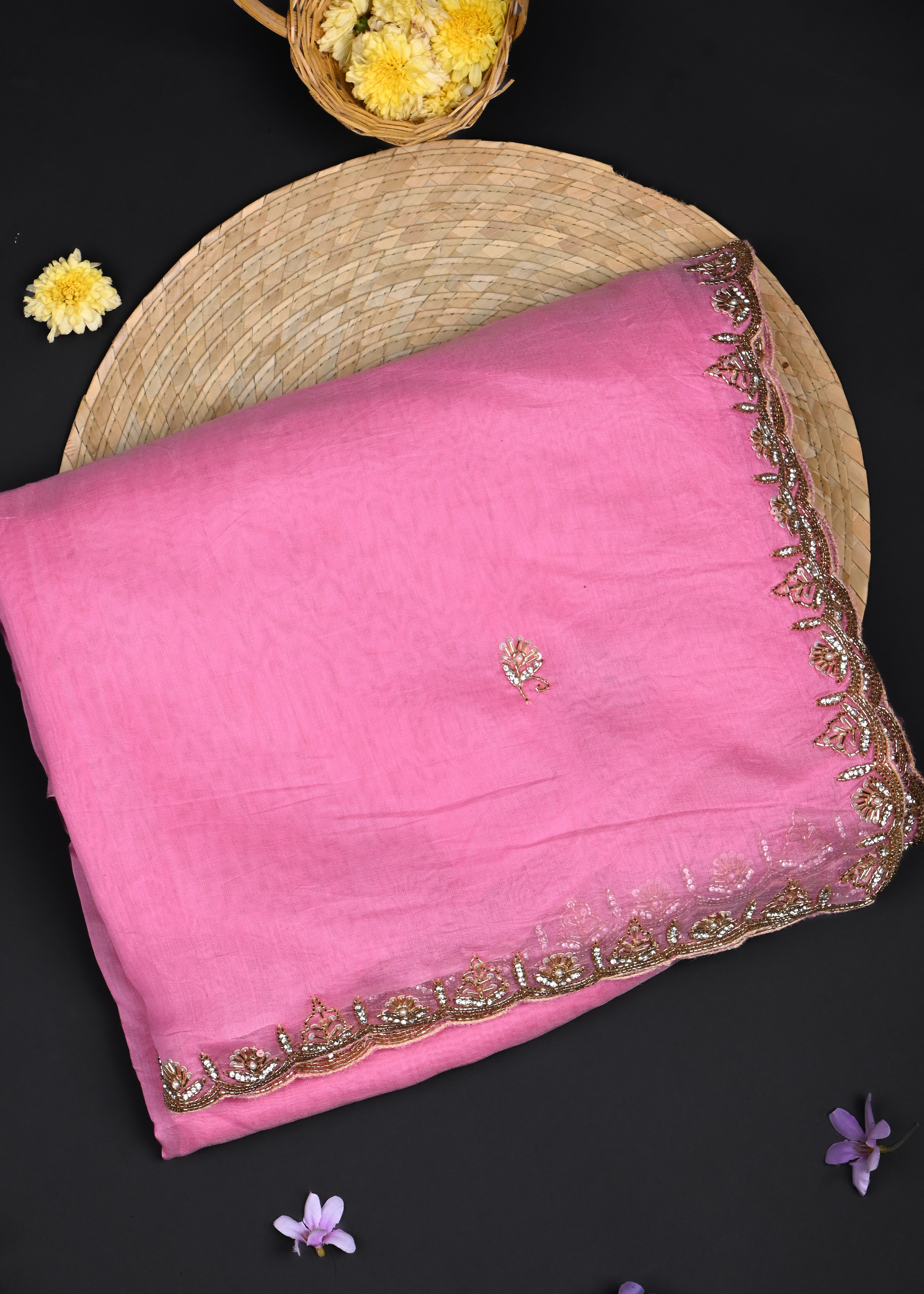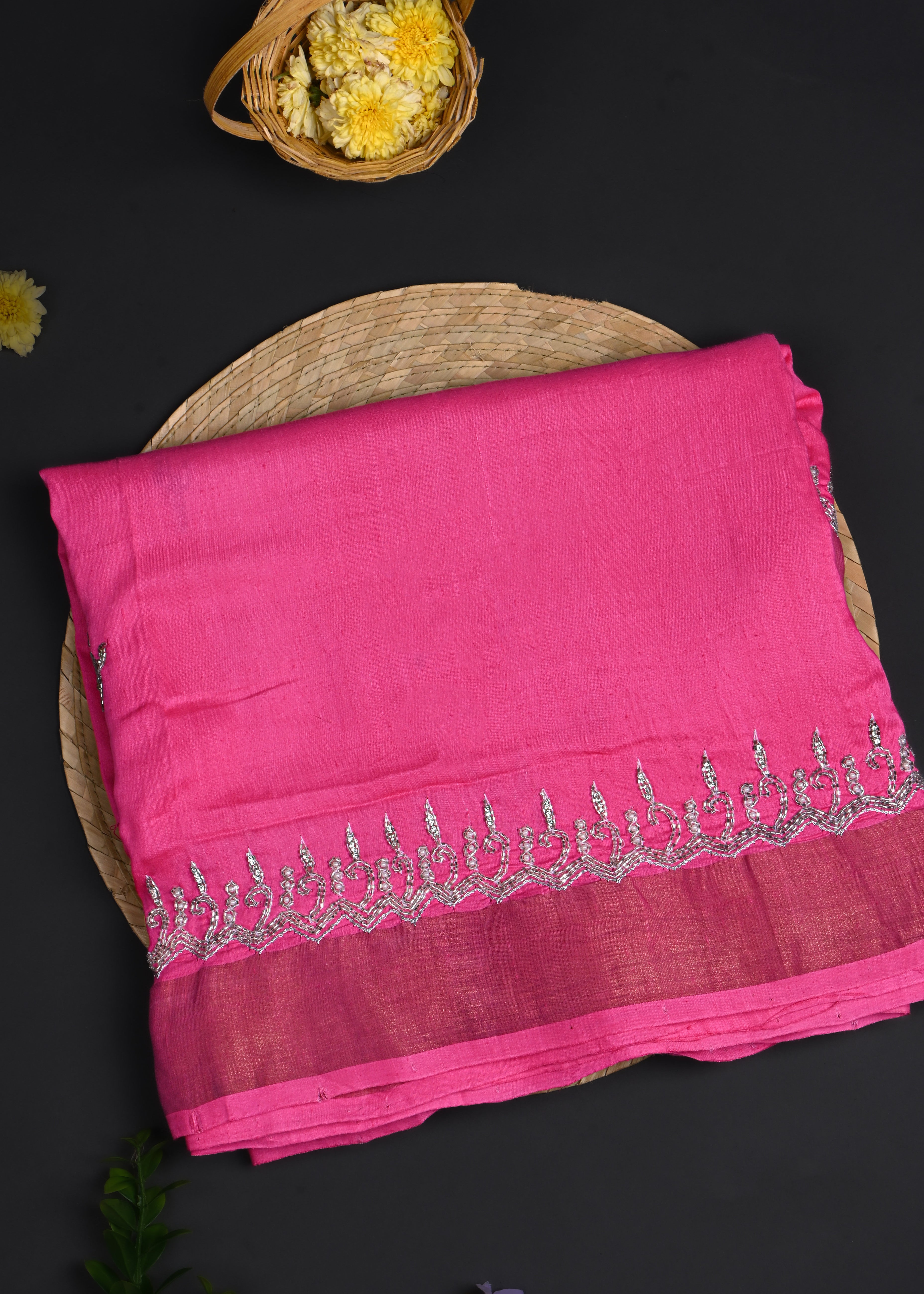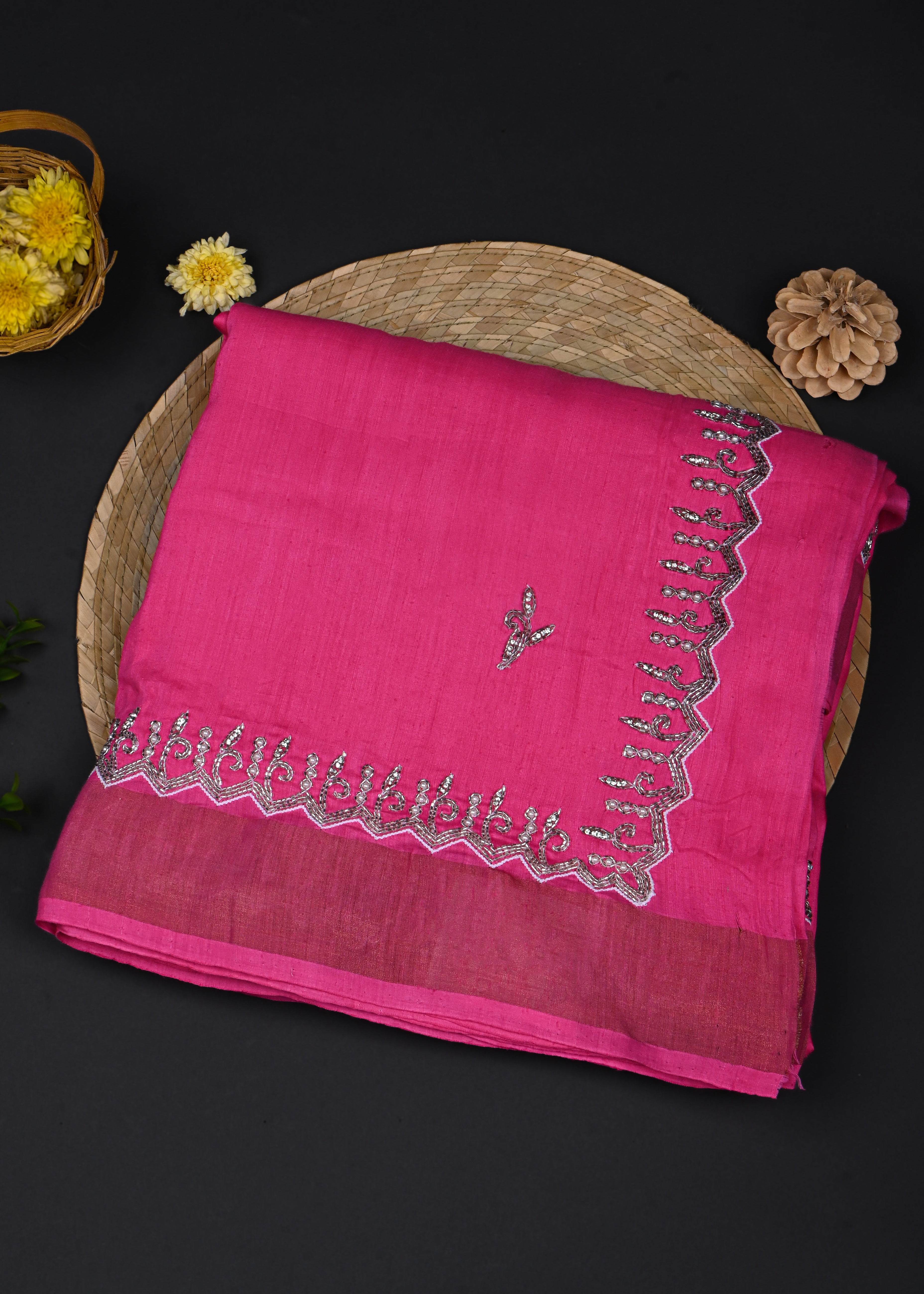 Dual Shade Pink Embroidered Dupion Silk Saree