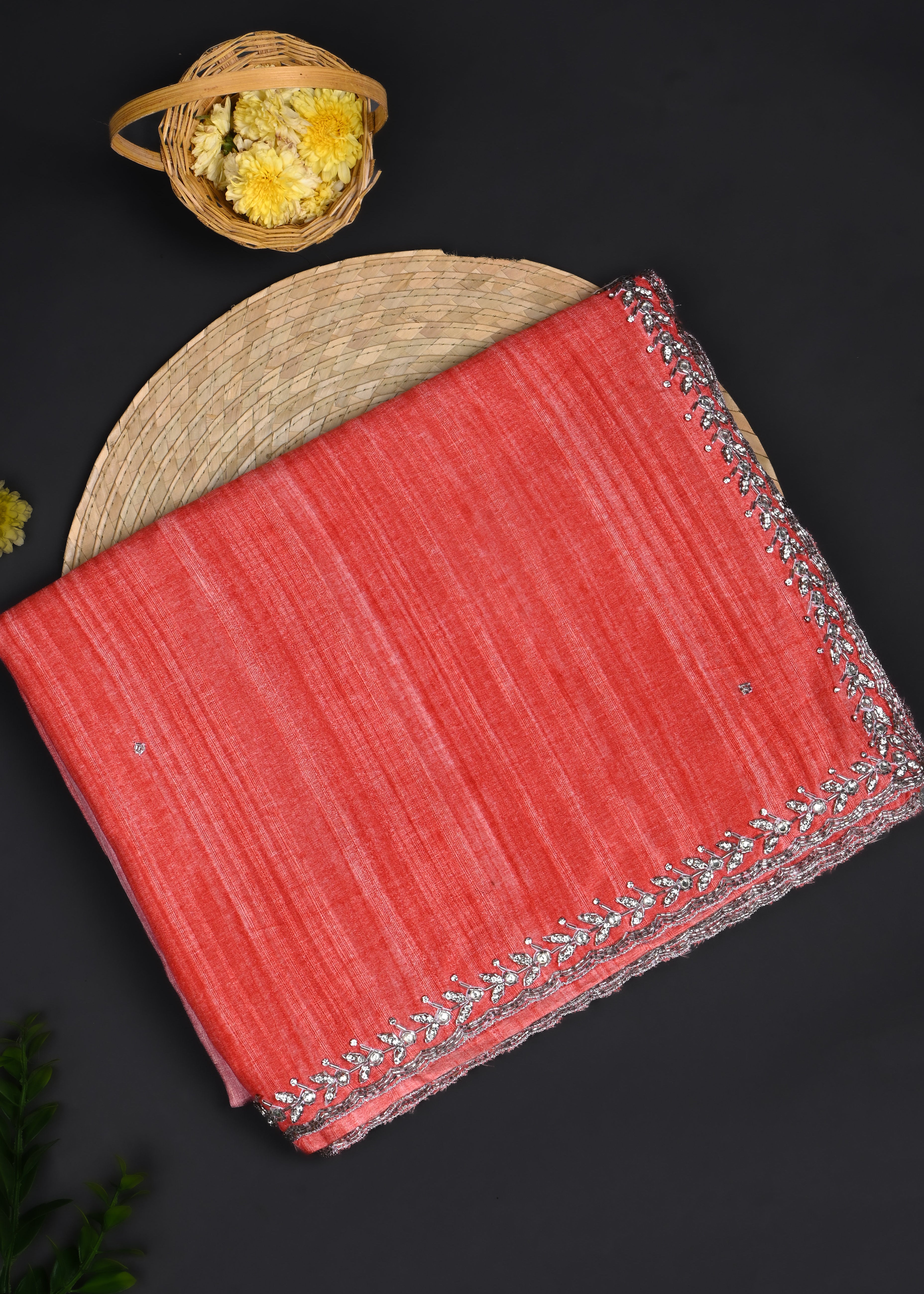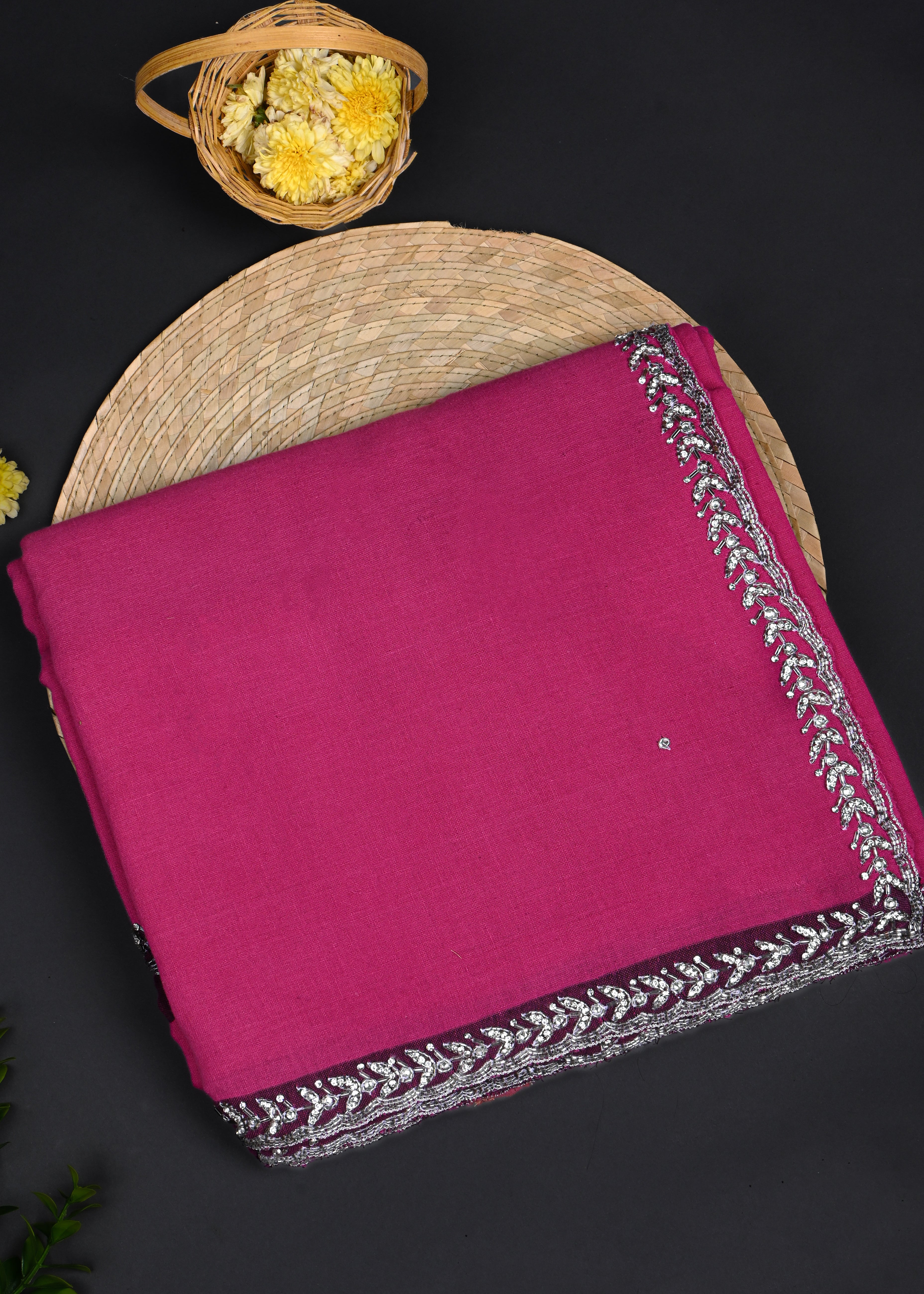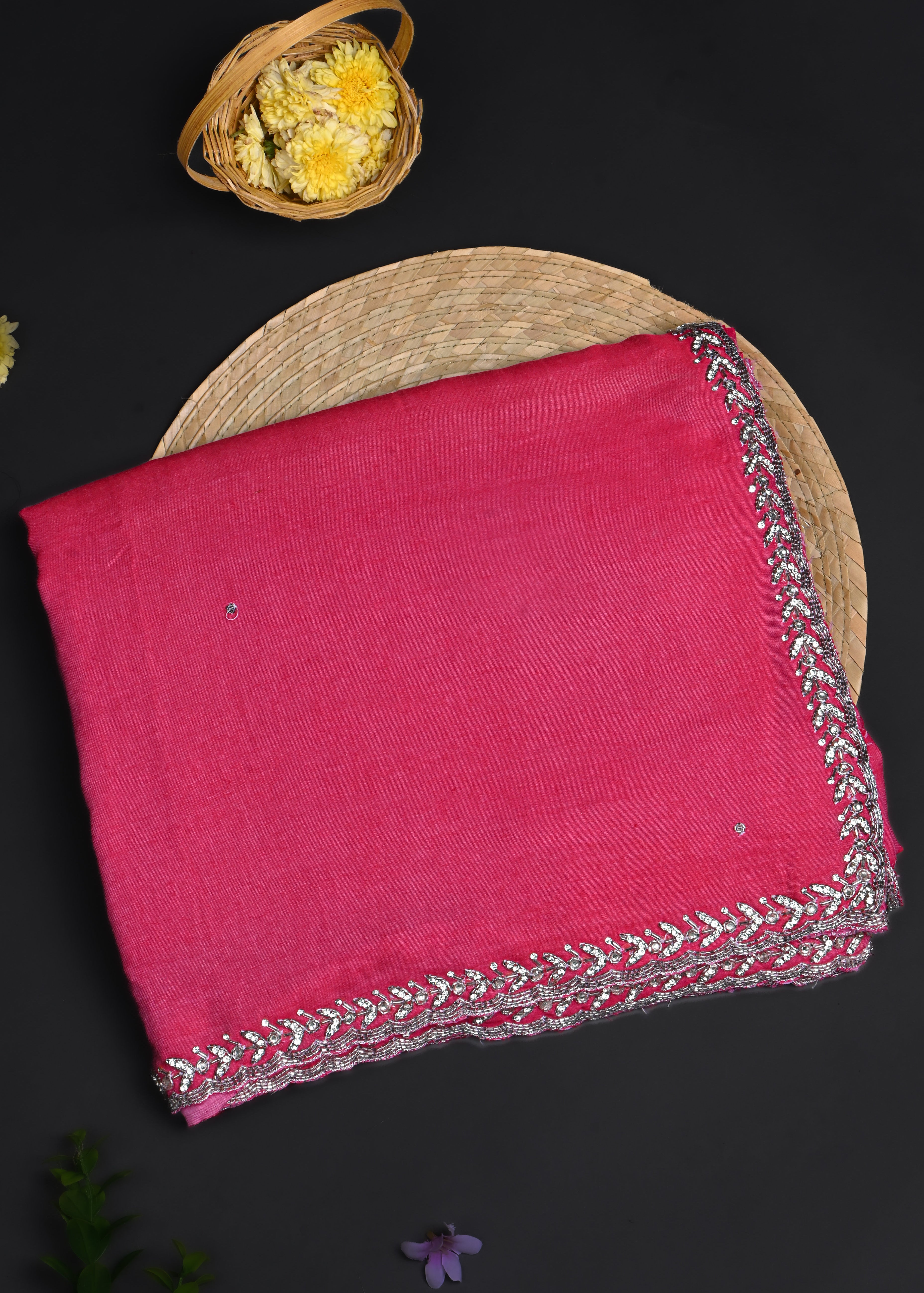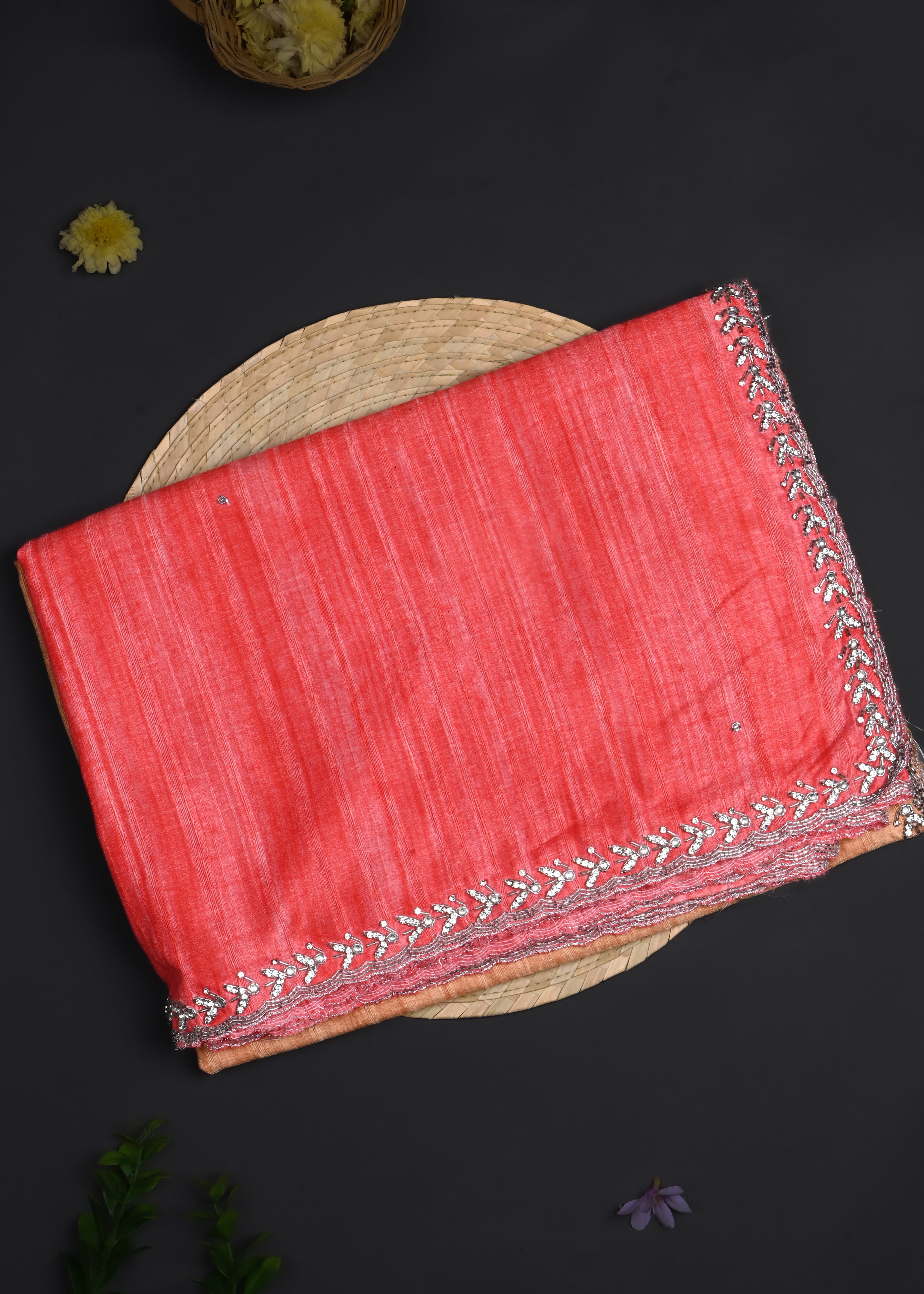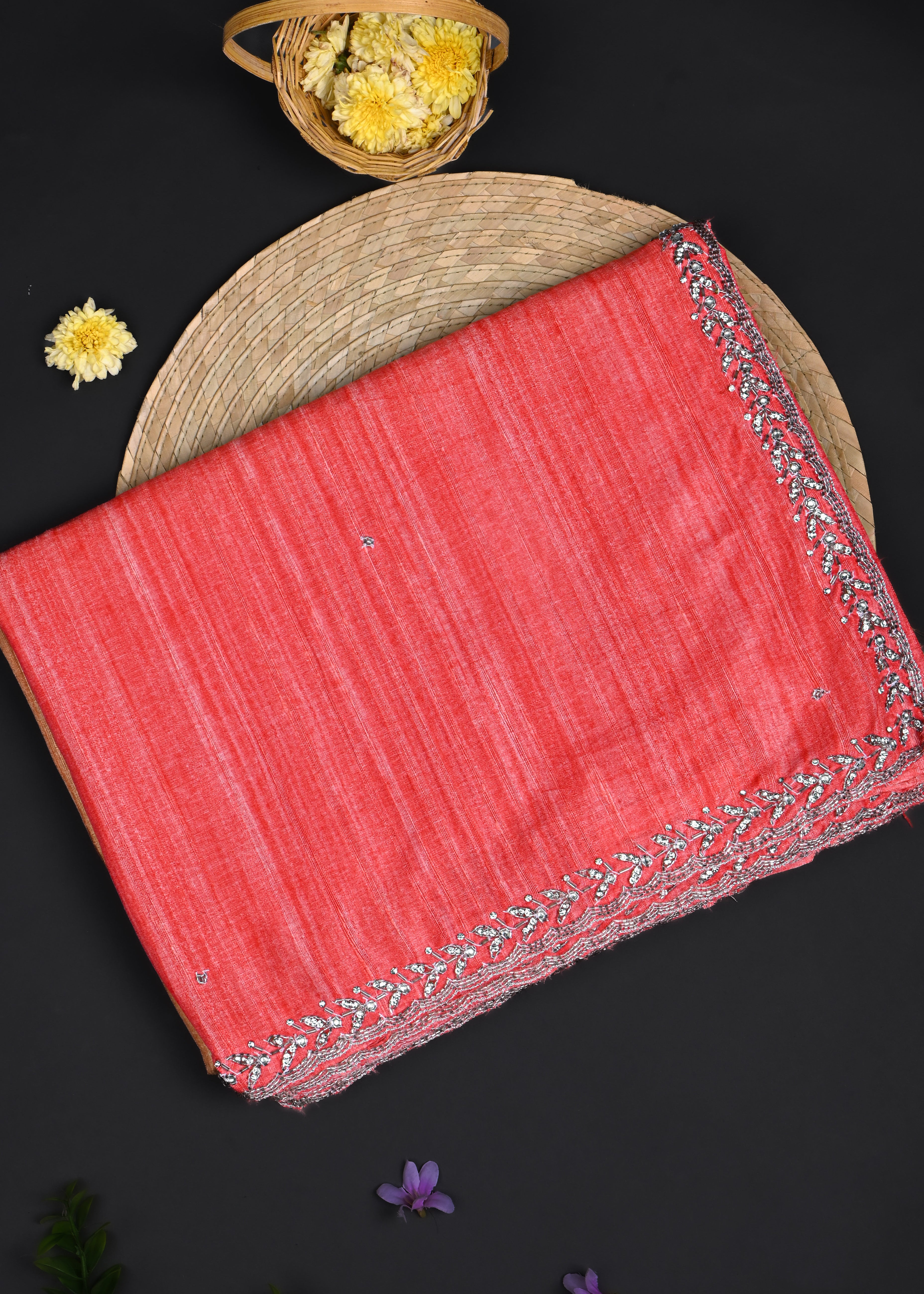 Dual Shade Pink Embroidered Dupion Silk Saree