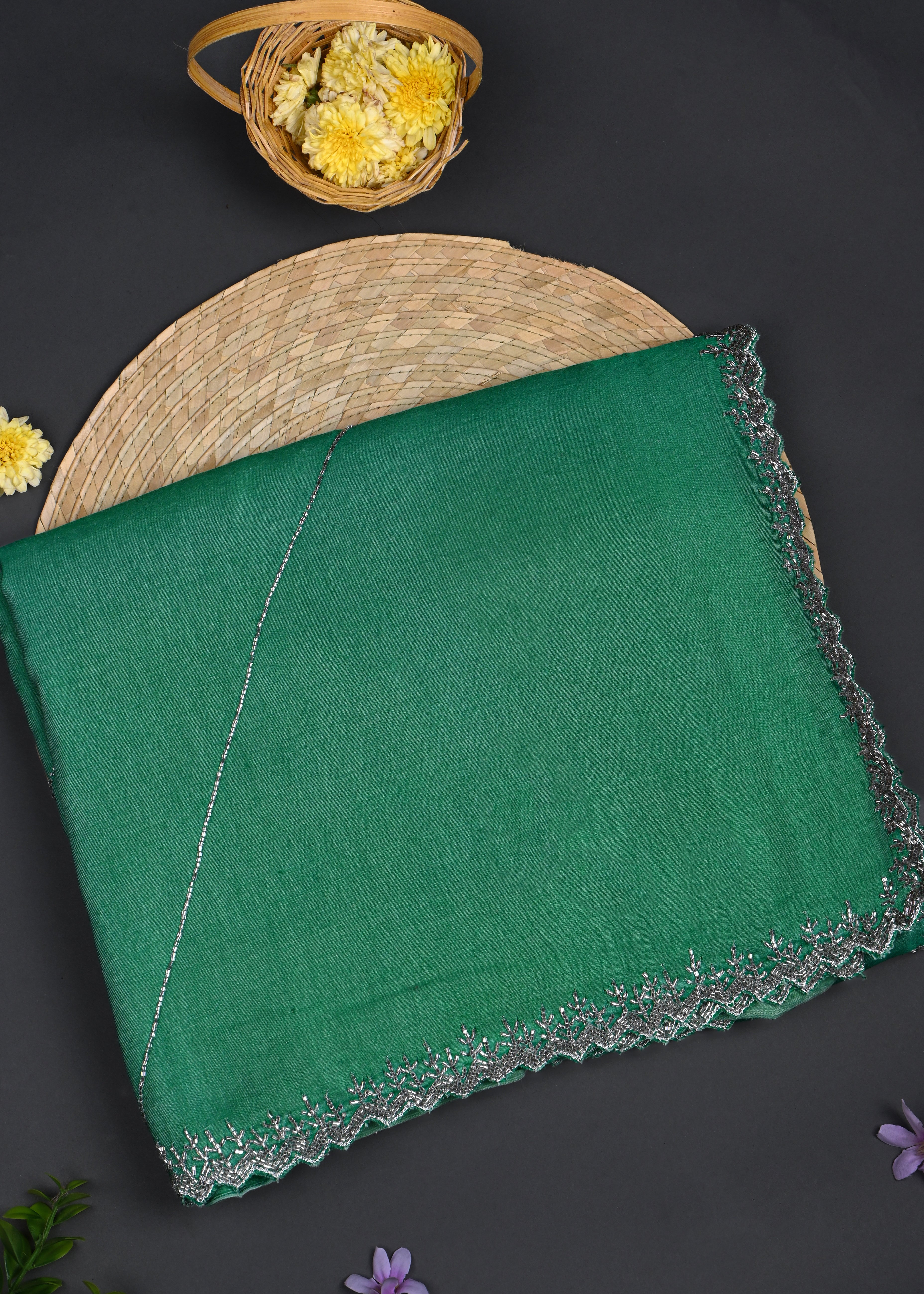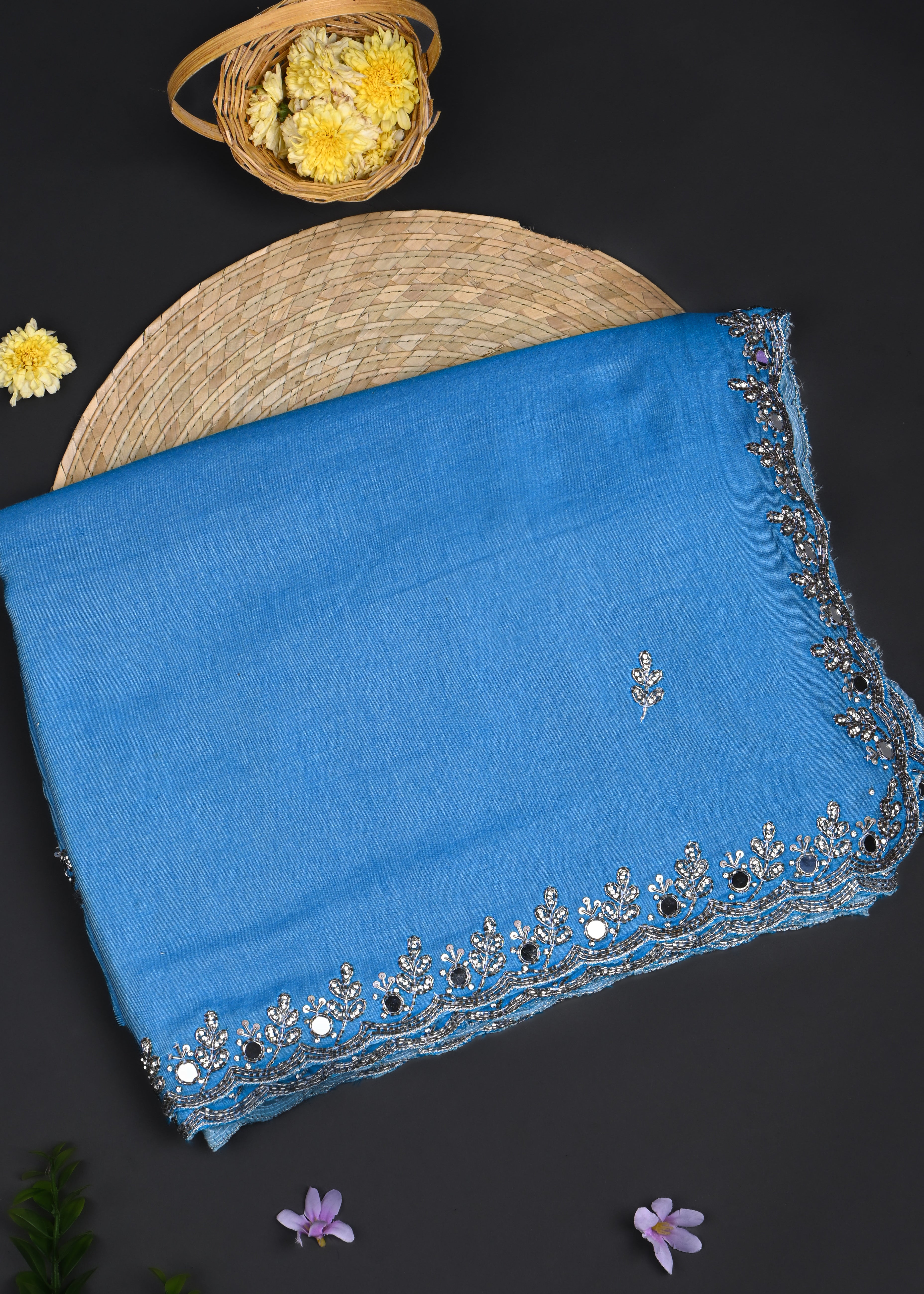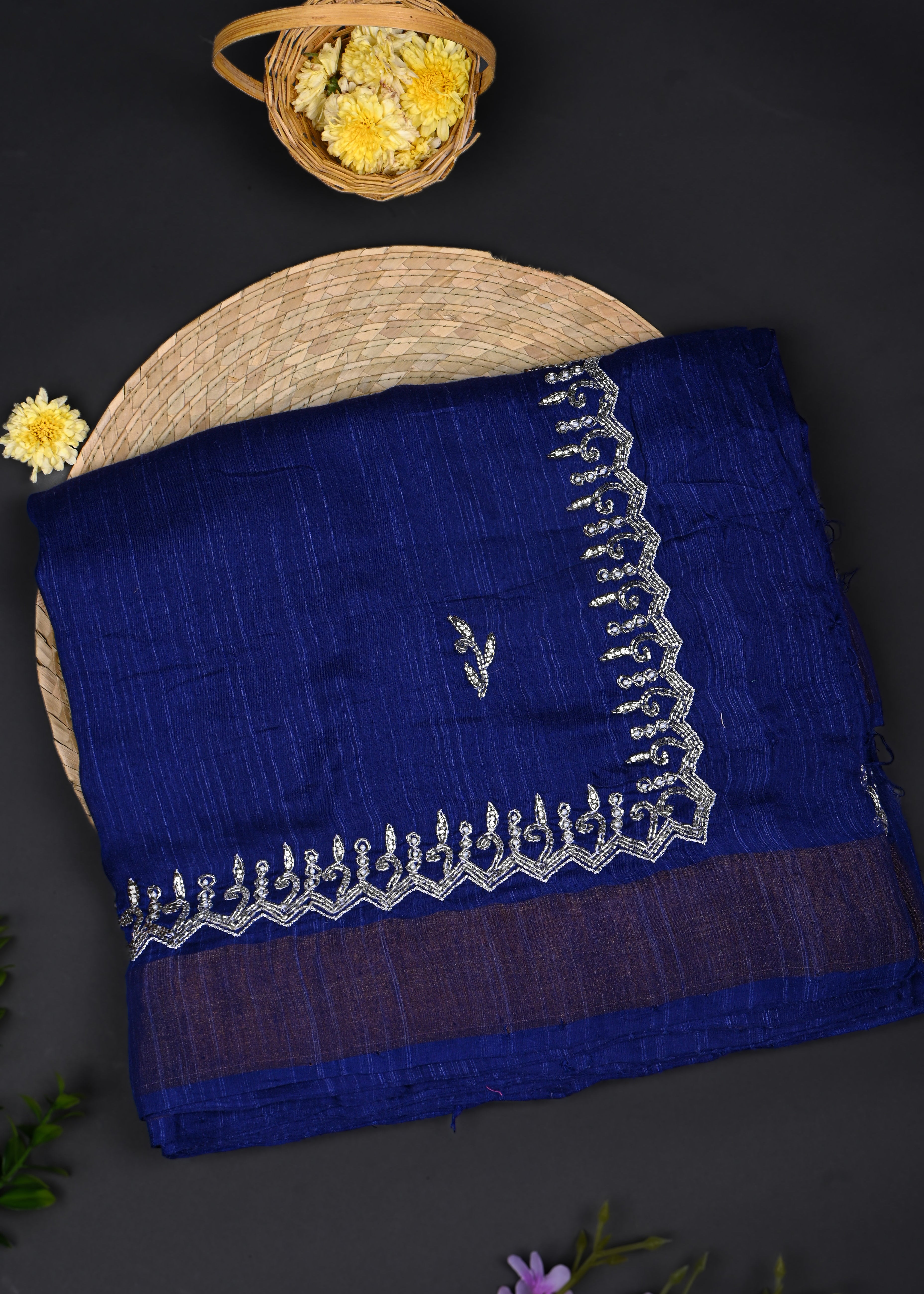 Navy Blue Organza Embroidery Saree With Sequins Border