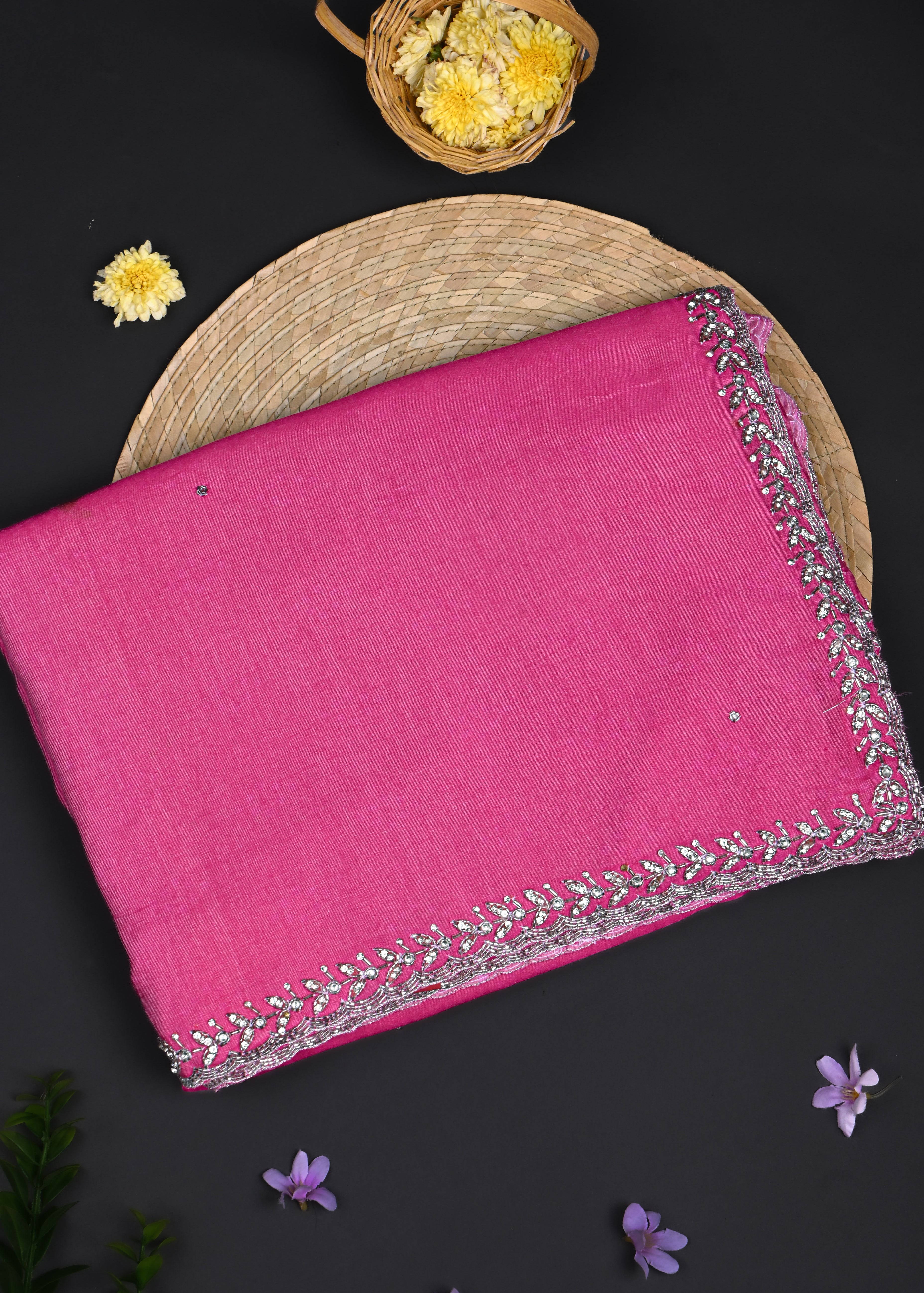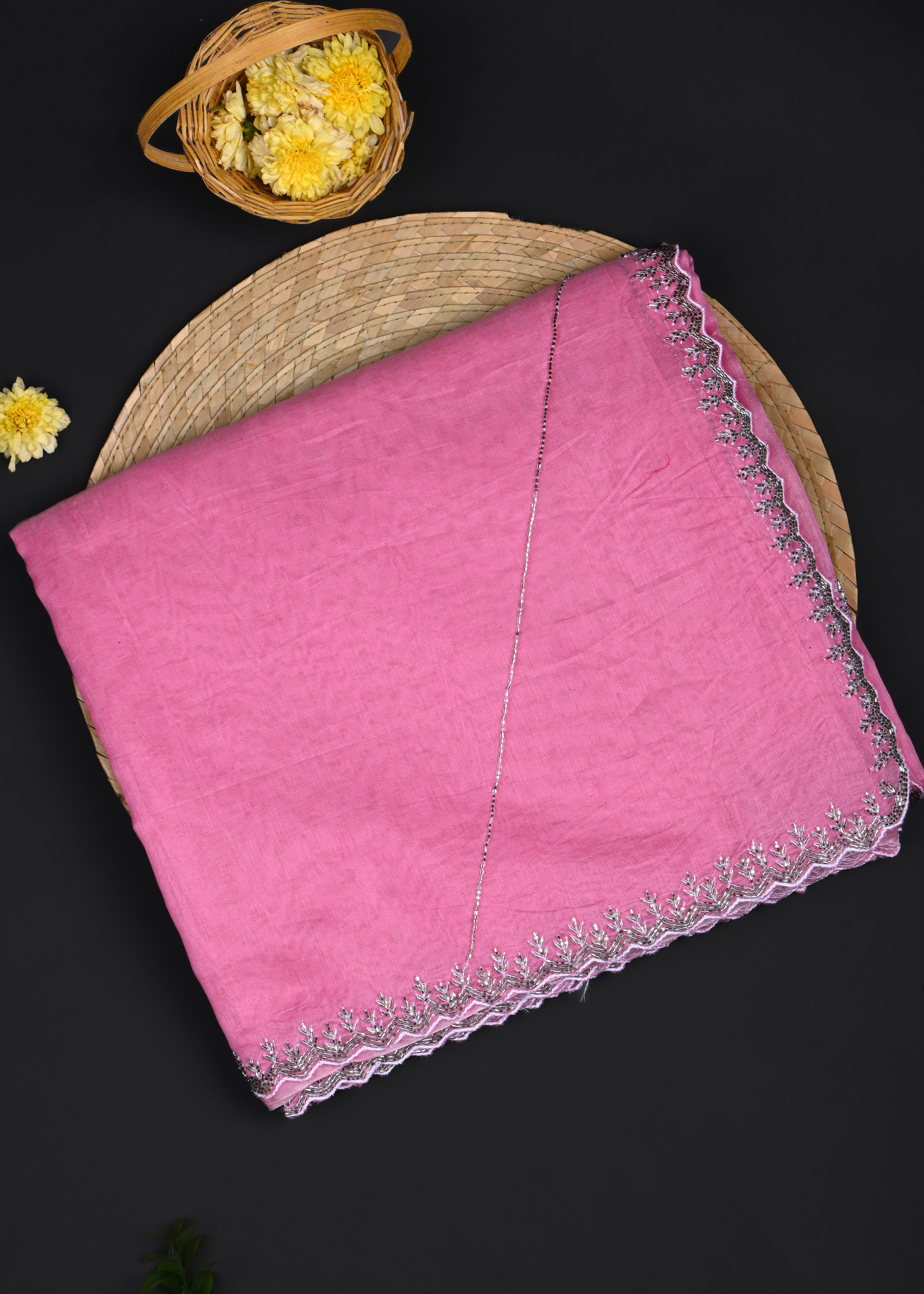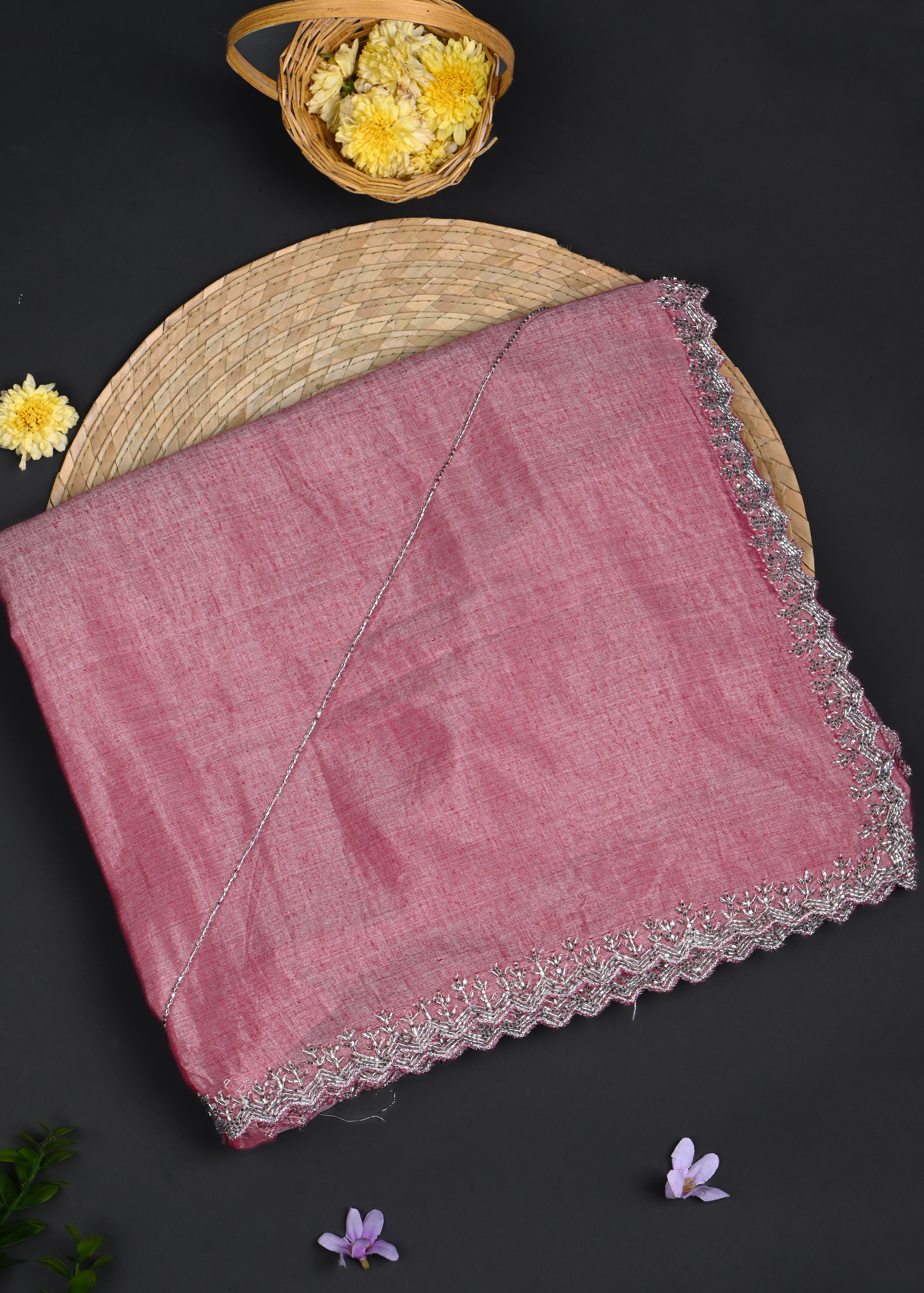 Dual Tone Pink Embroidered Dupion Silk Saree