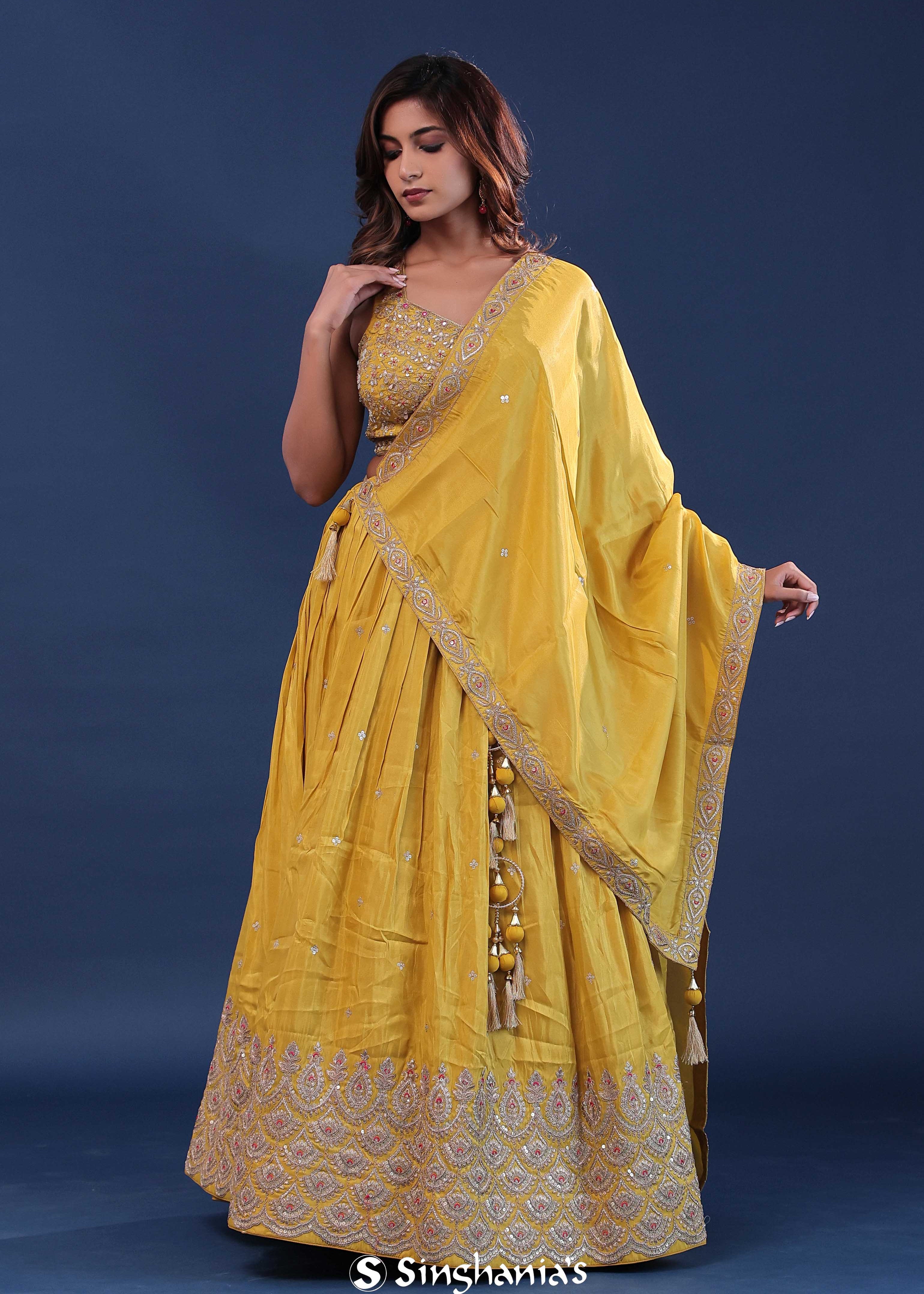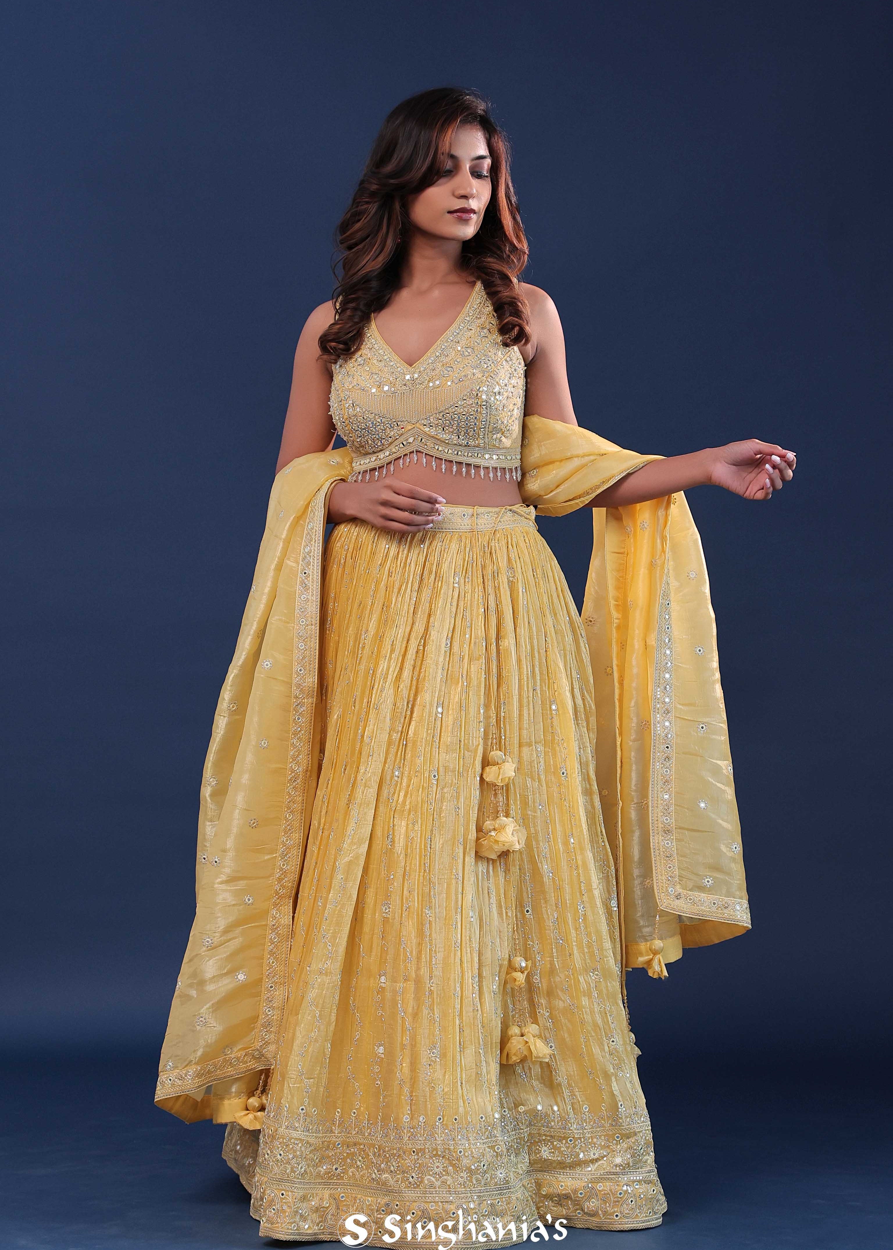 Royal Yellow Tissue Organza Lehenga Set