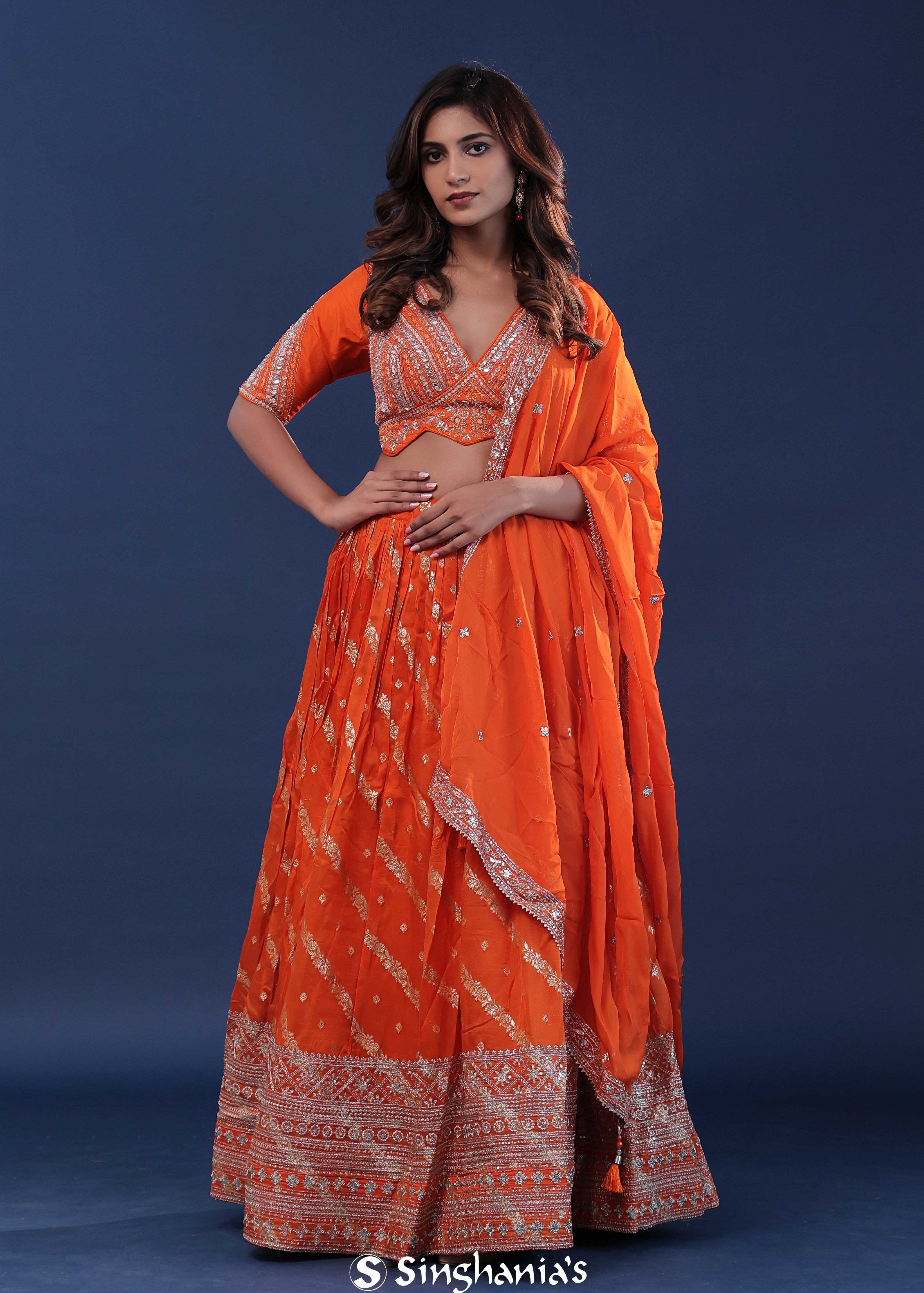 Orange Organza Lehenga Set With Silk Dupatta