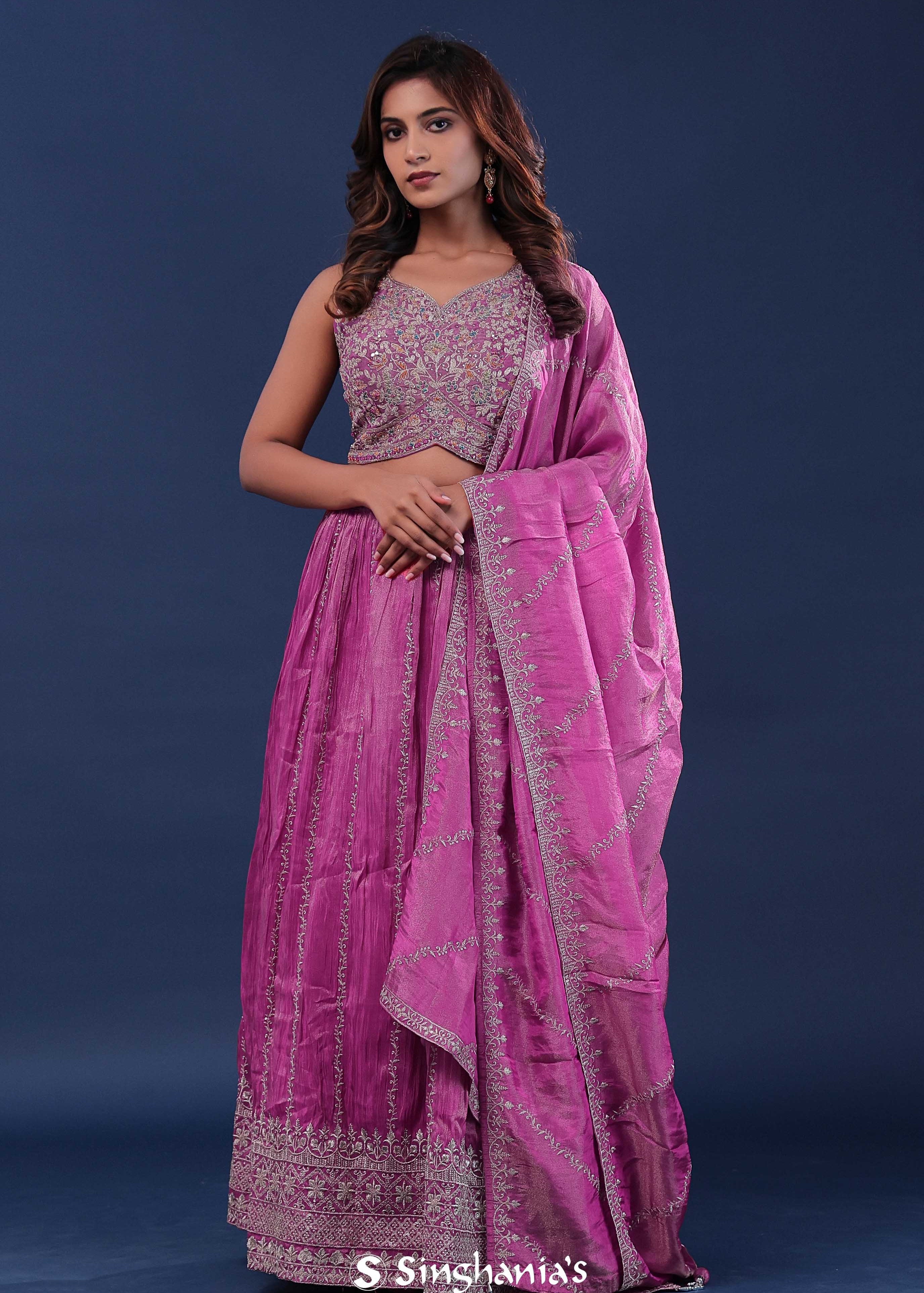 Amethyst Purple Crepe Lehenga Set With Organza Slit