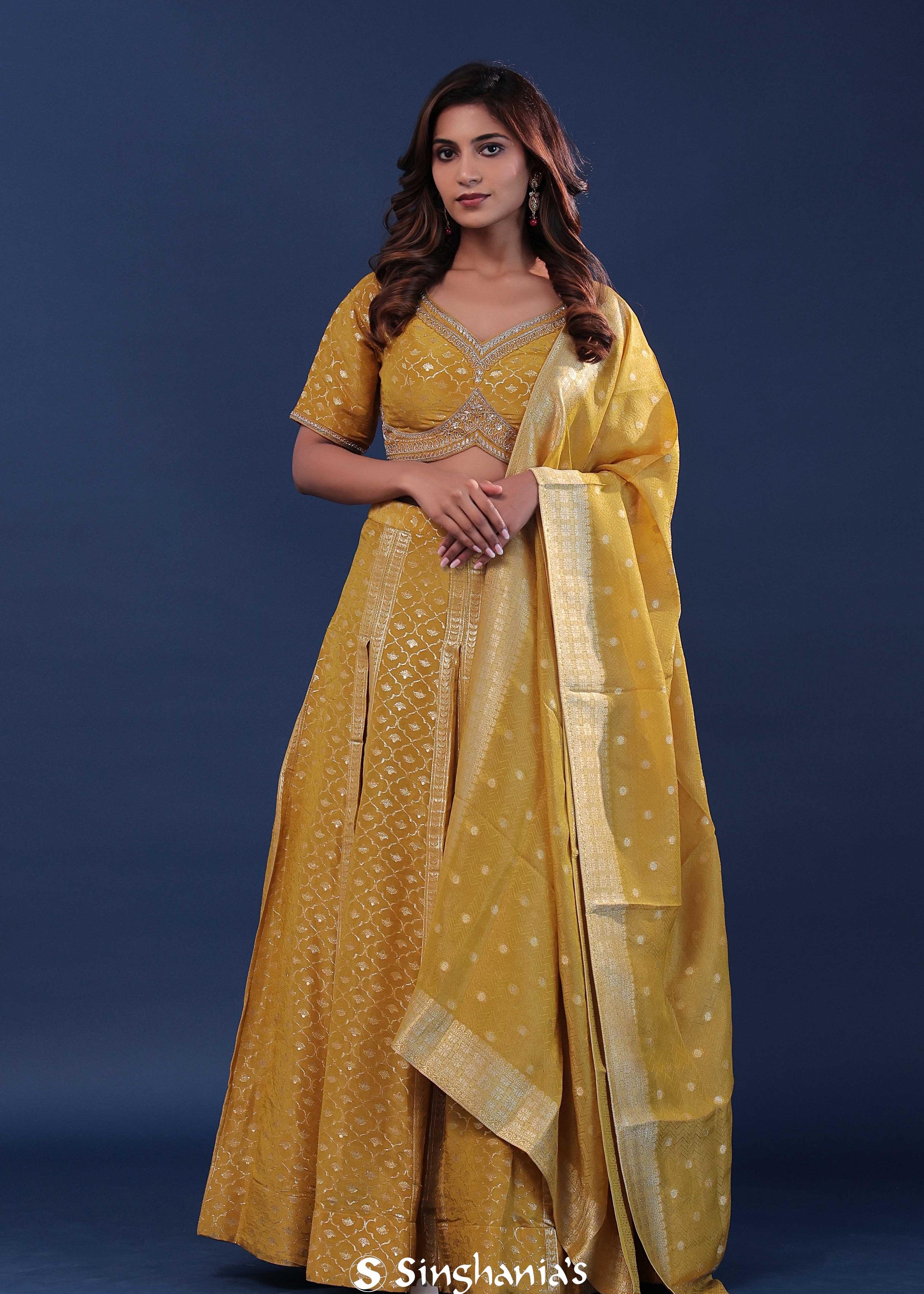 Mustard Yellow Banarasi Lehenga Set