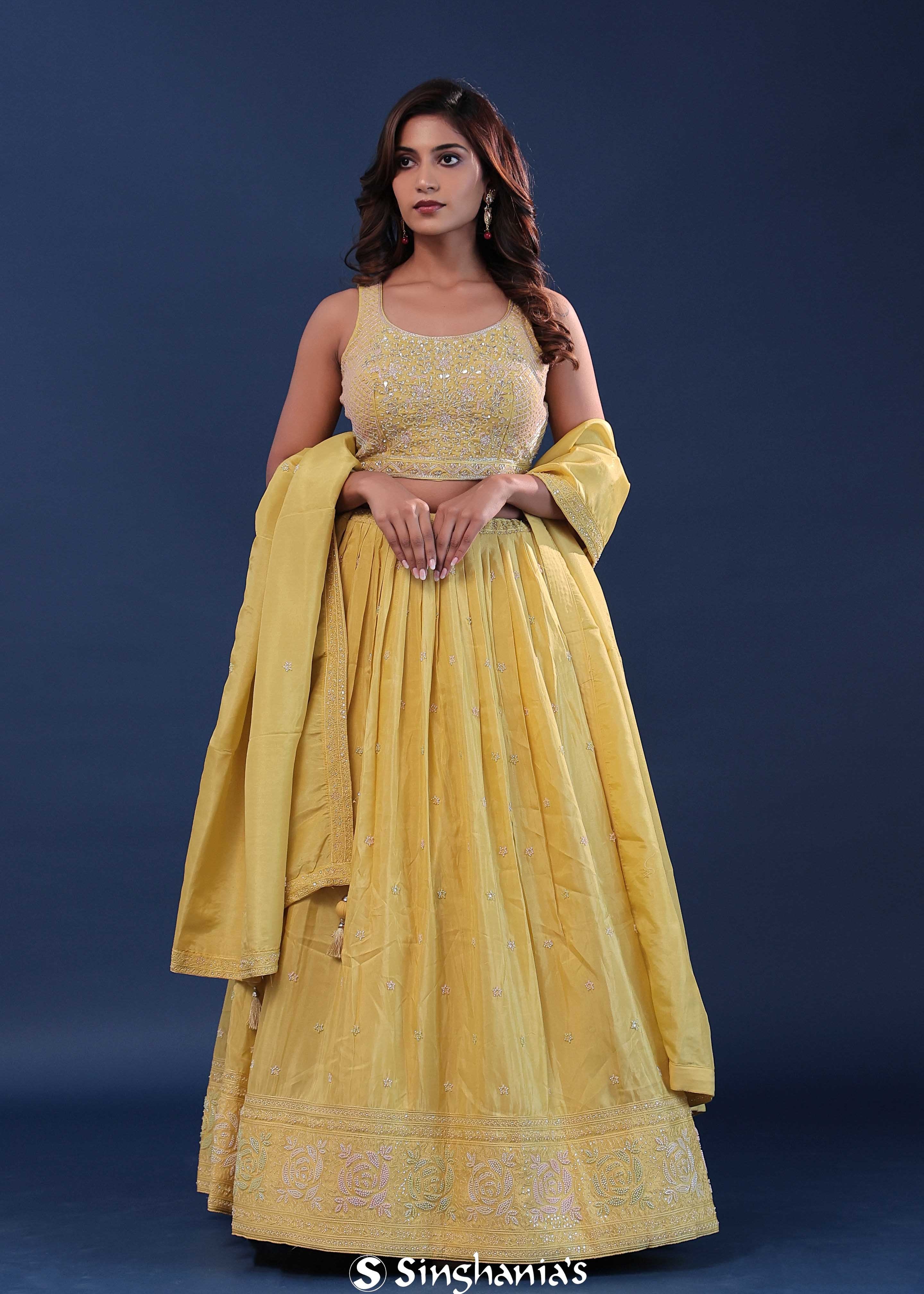 Naples Yellow Organza Lehenga Set