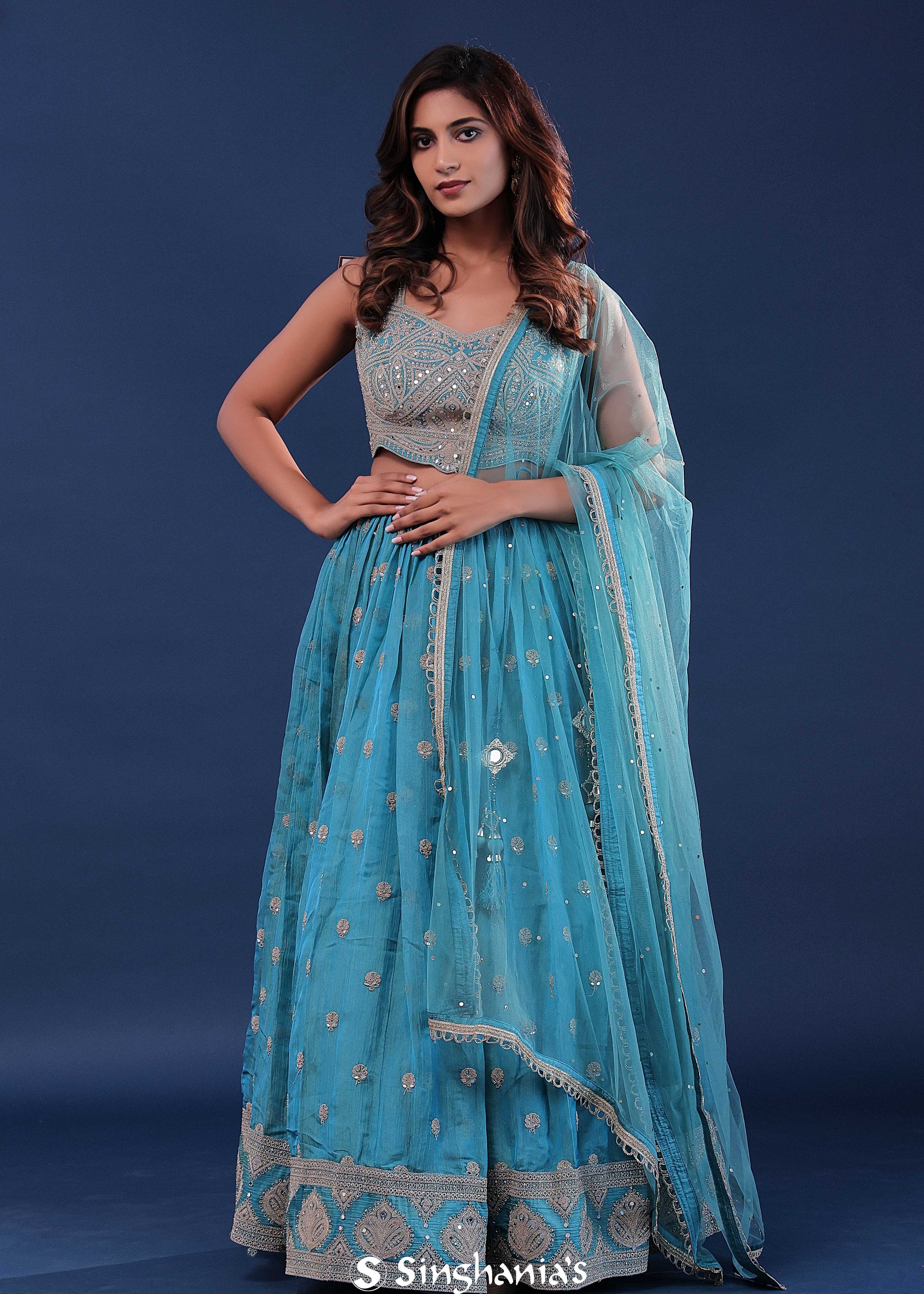 Capre Blue Silk Lehenga Set