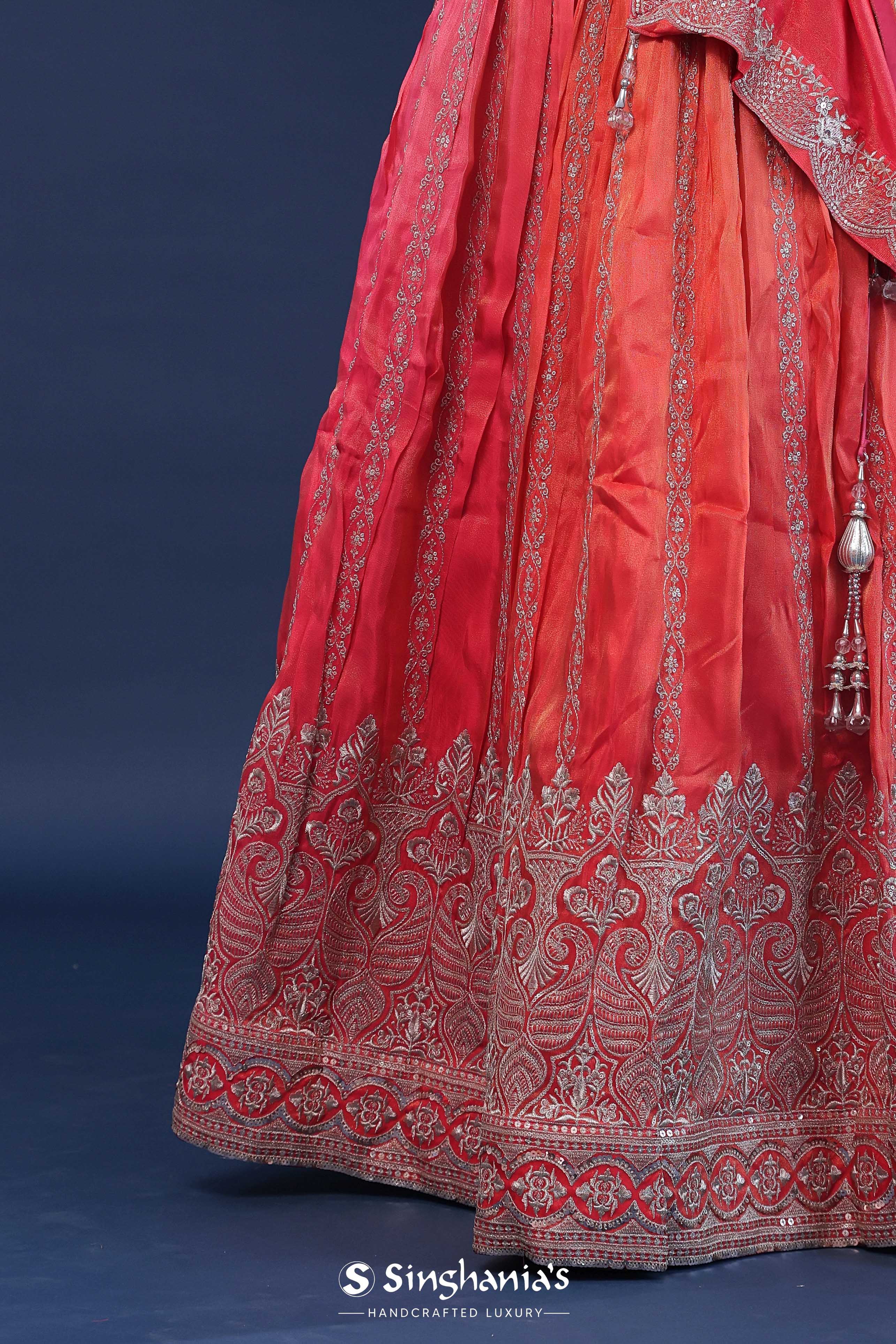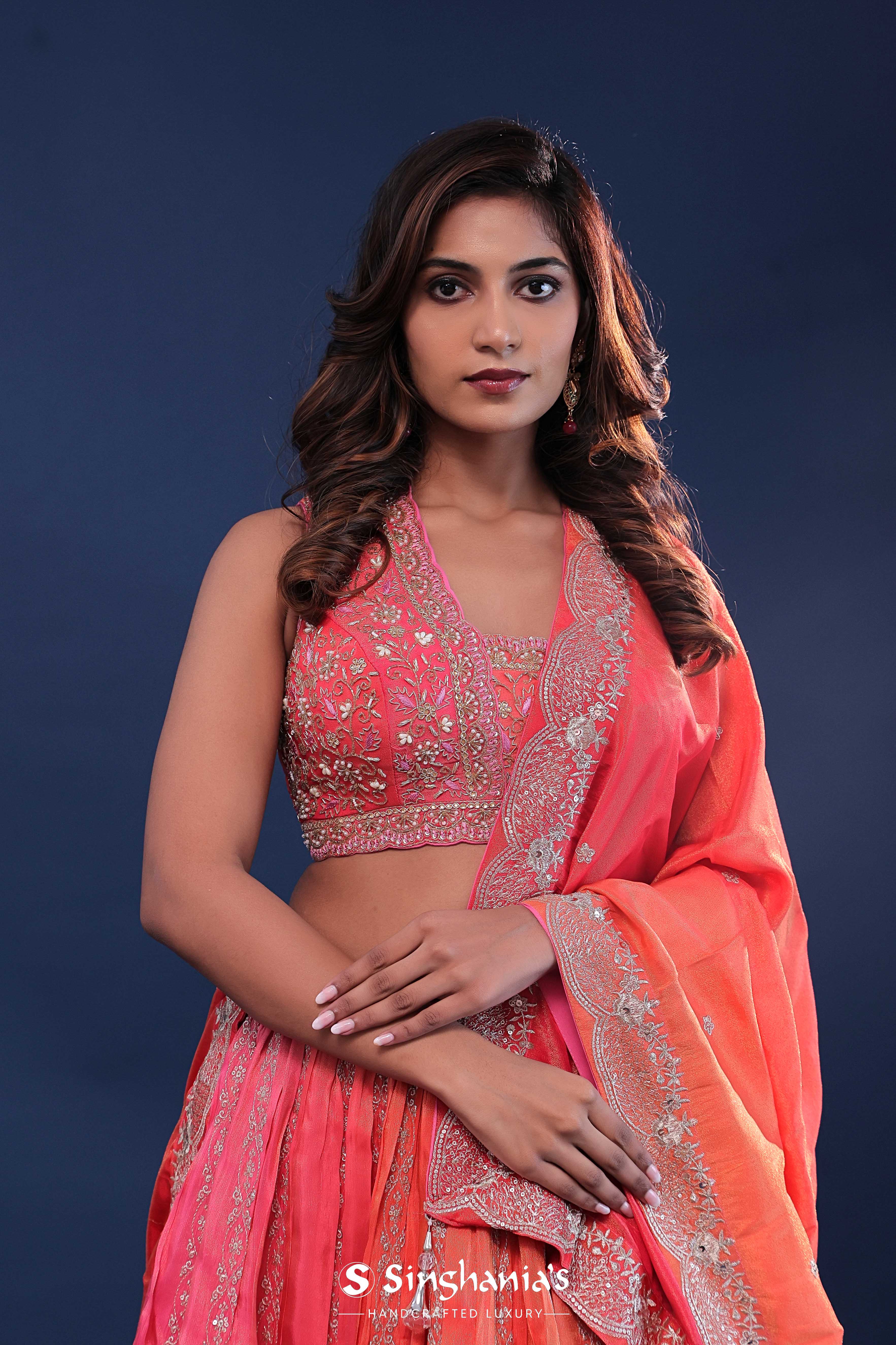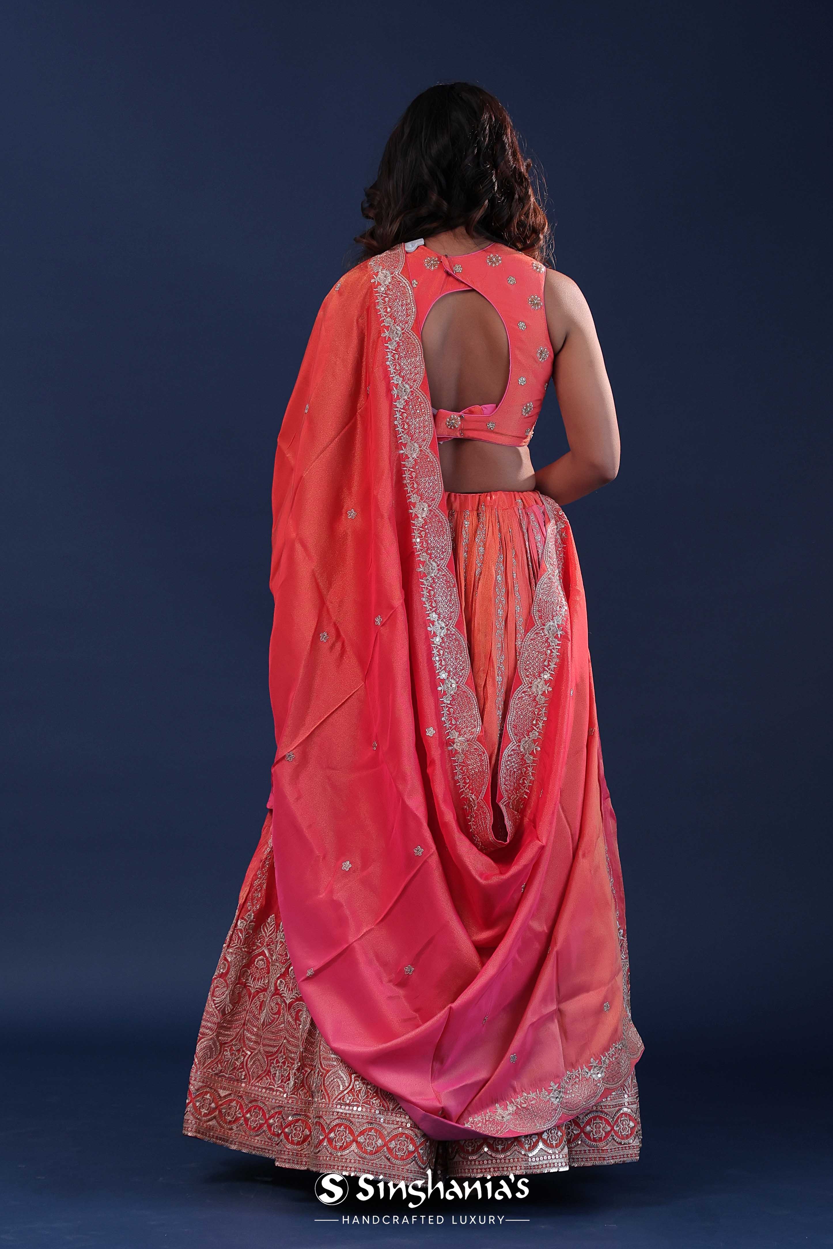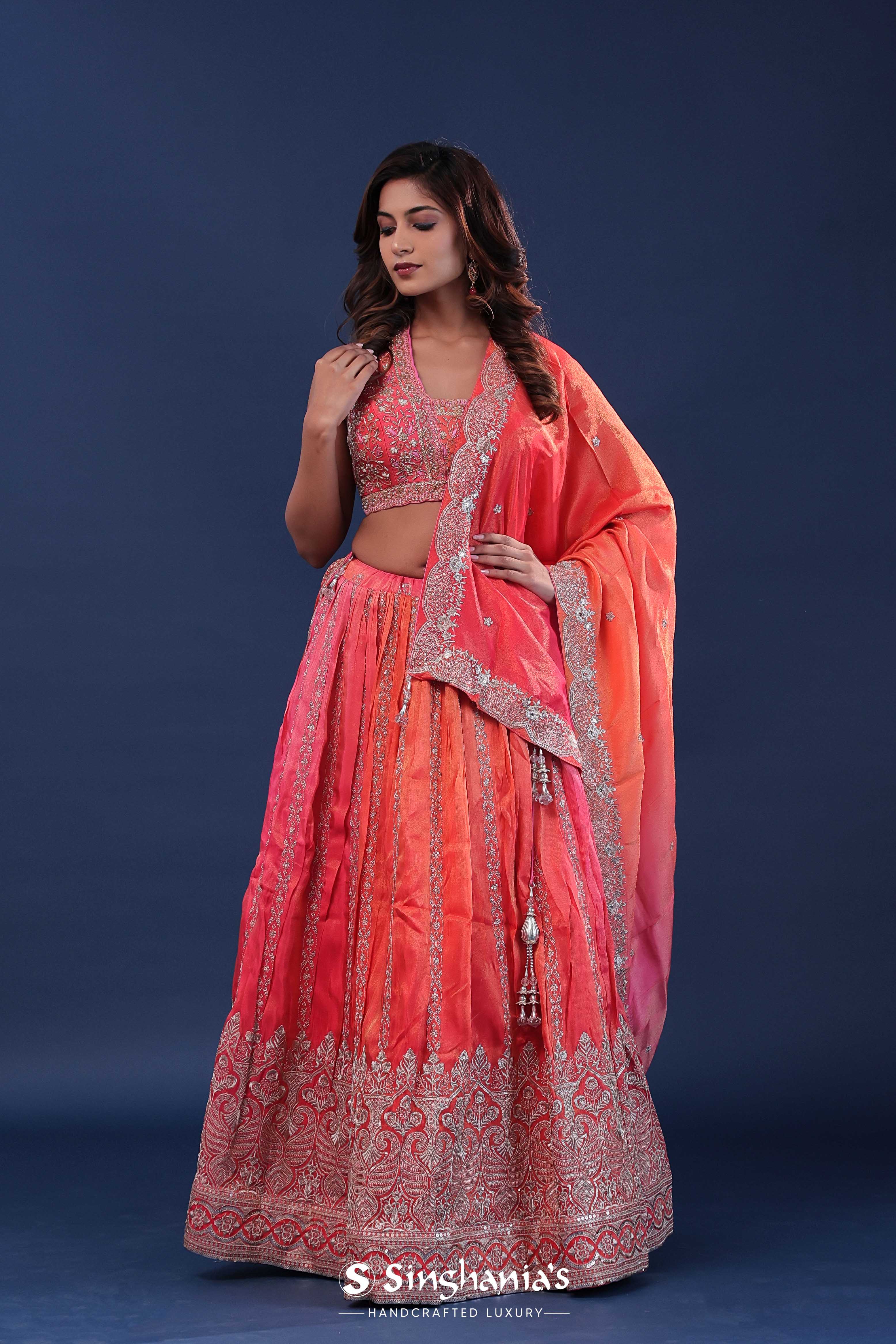 Dual Shades Chinon Lehenga Set With Silk Dupatta