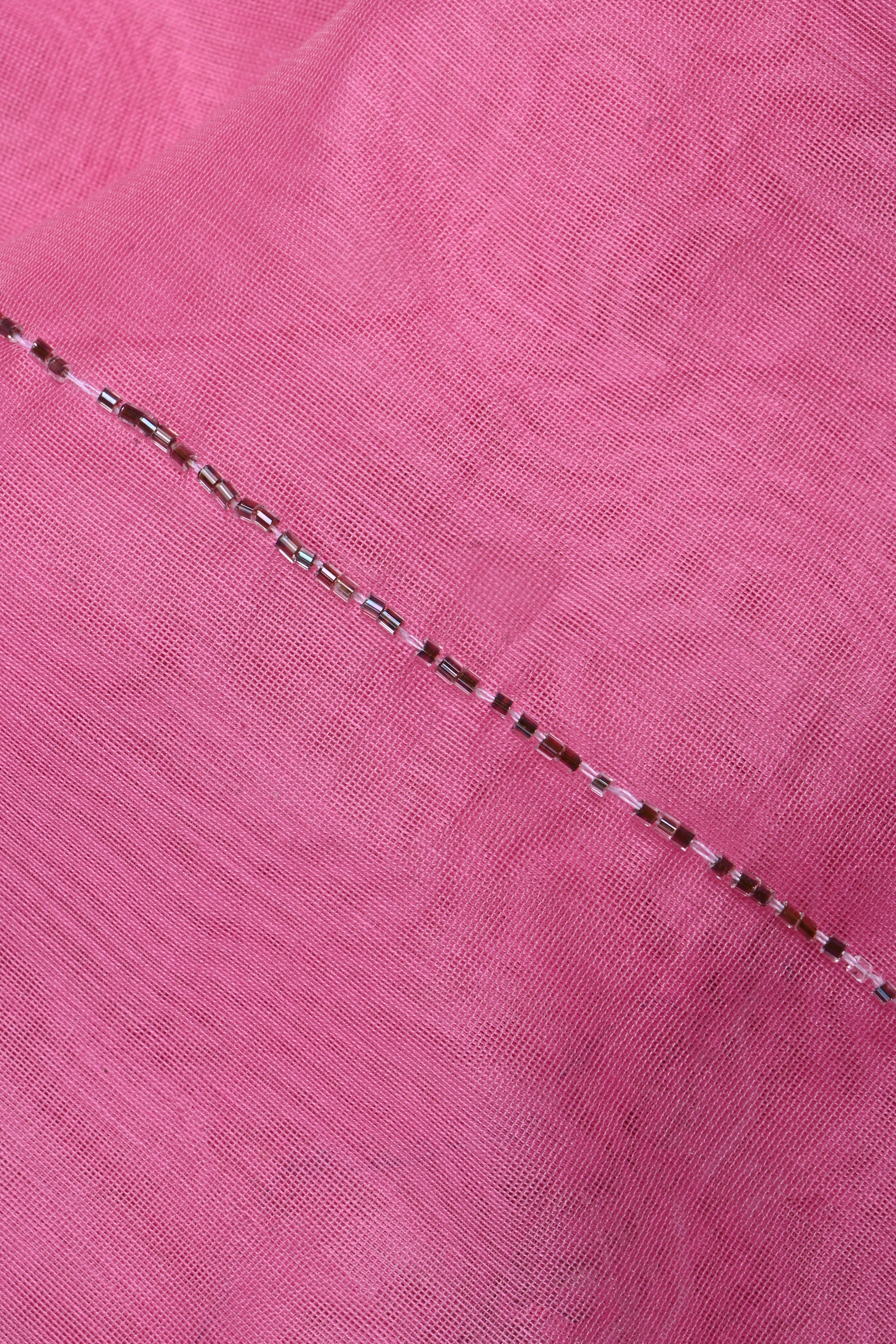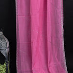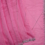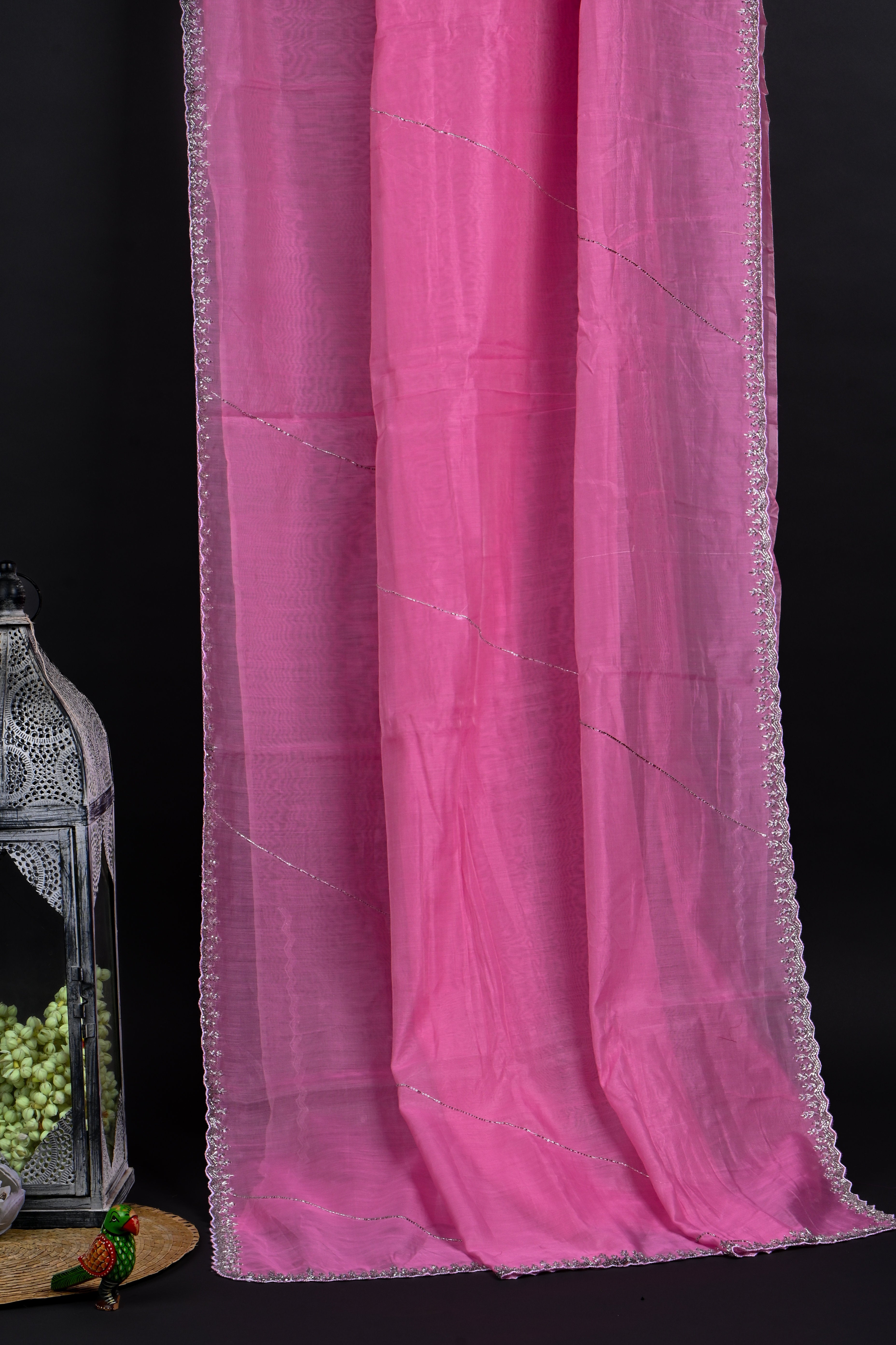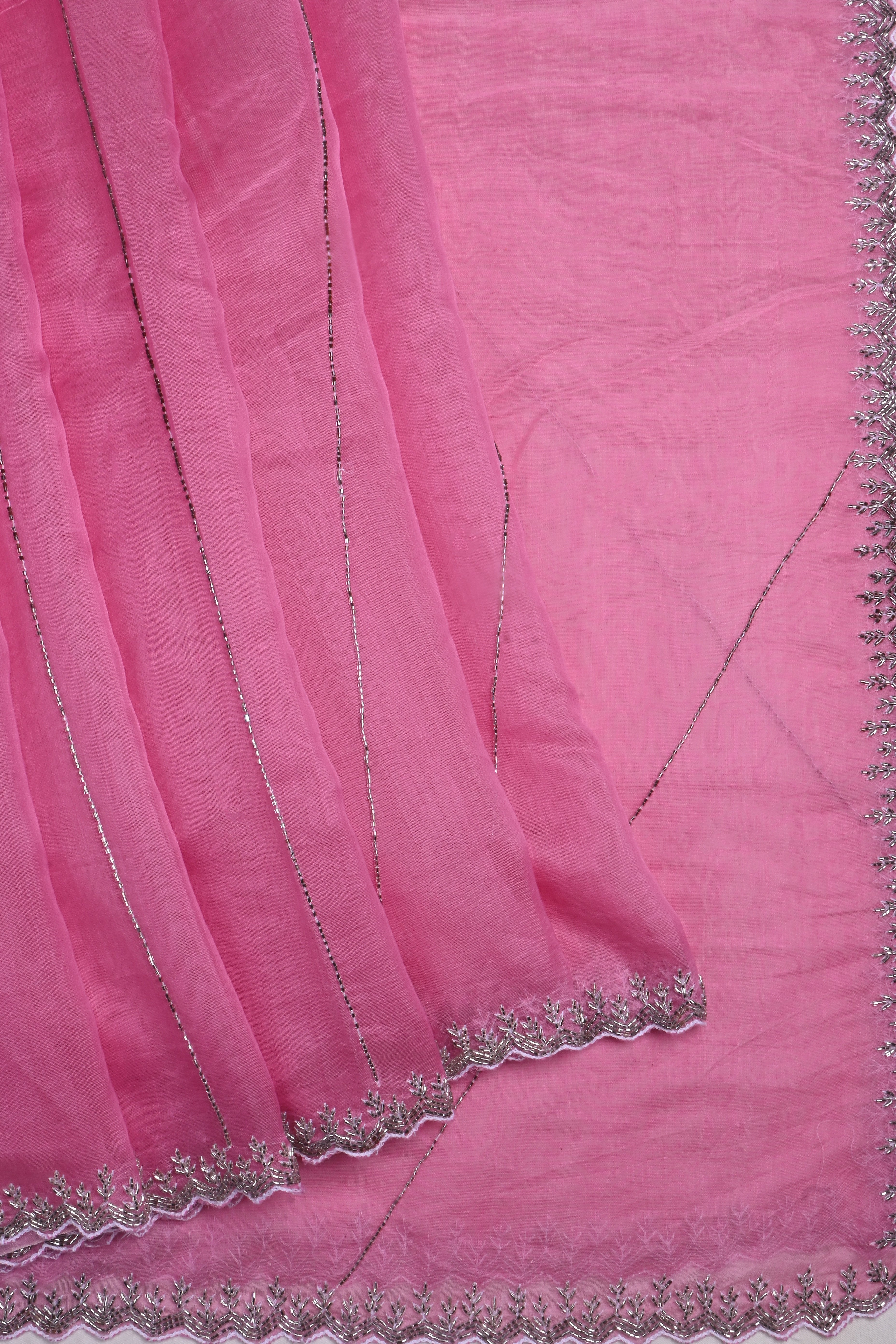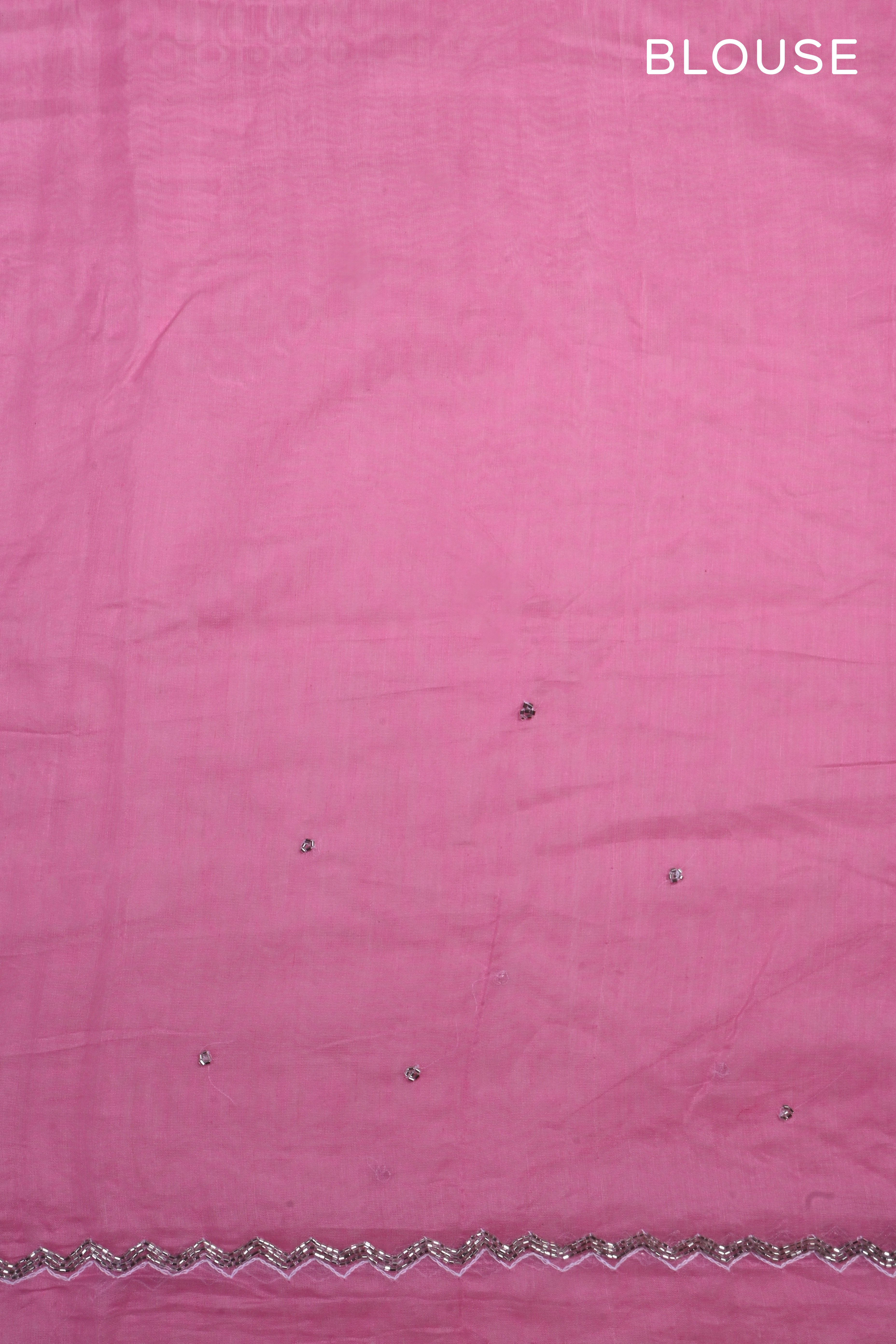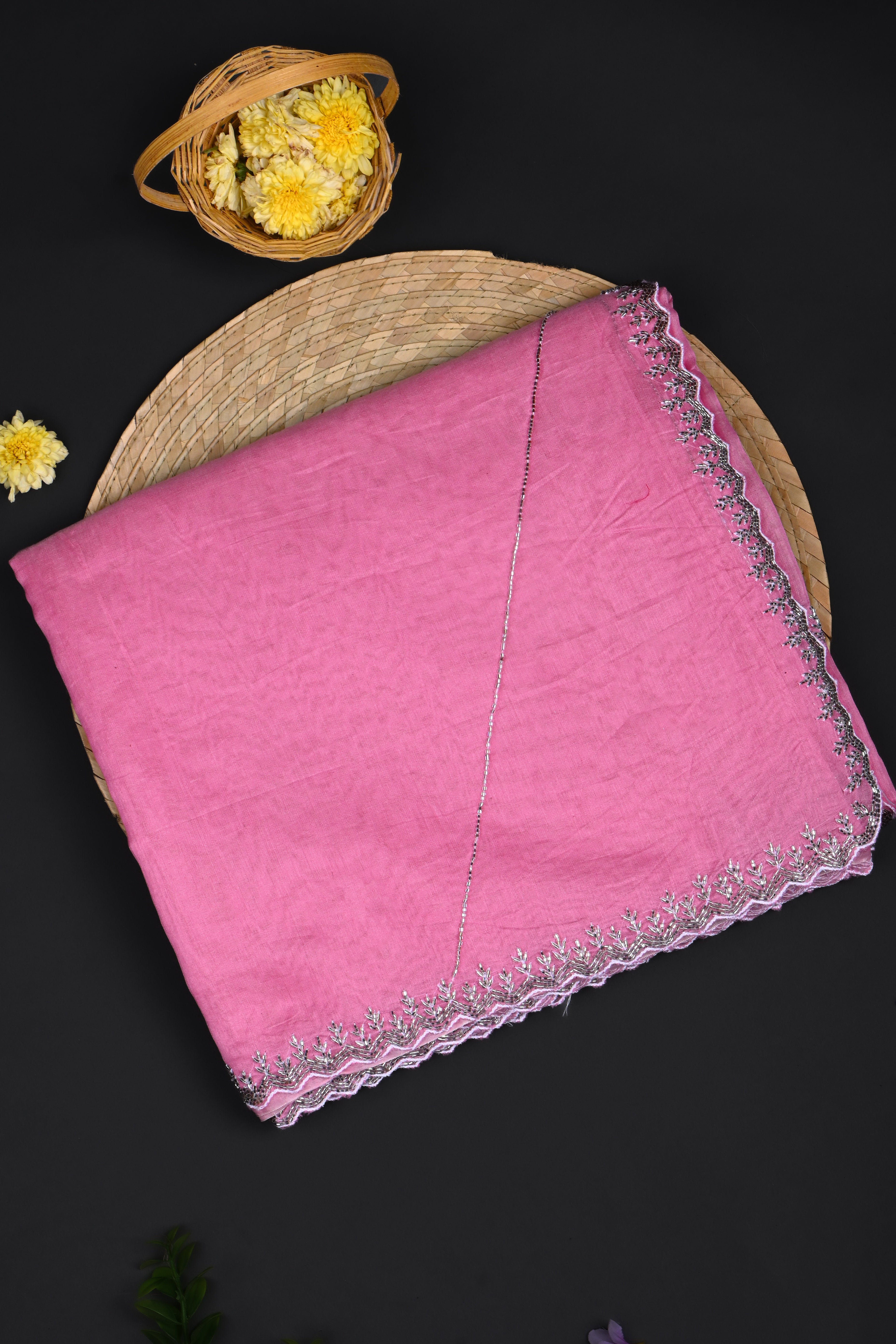 The baby pink embroidered silk saree with floral embroidered scallop border and matching blouse for a classy neat ethnic look with grace.