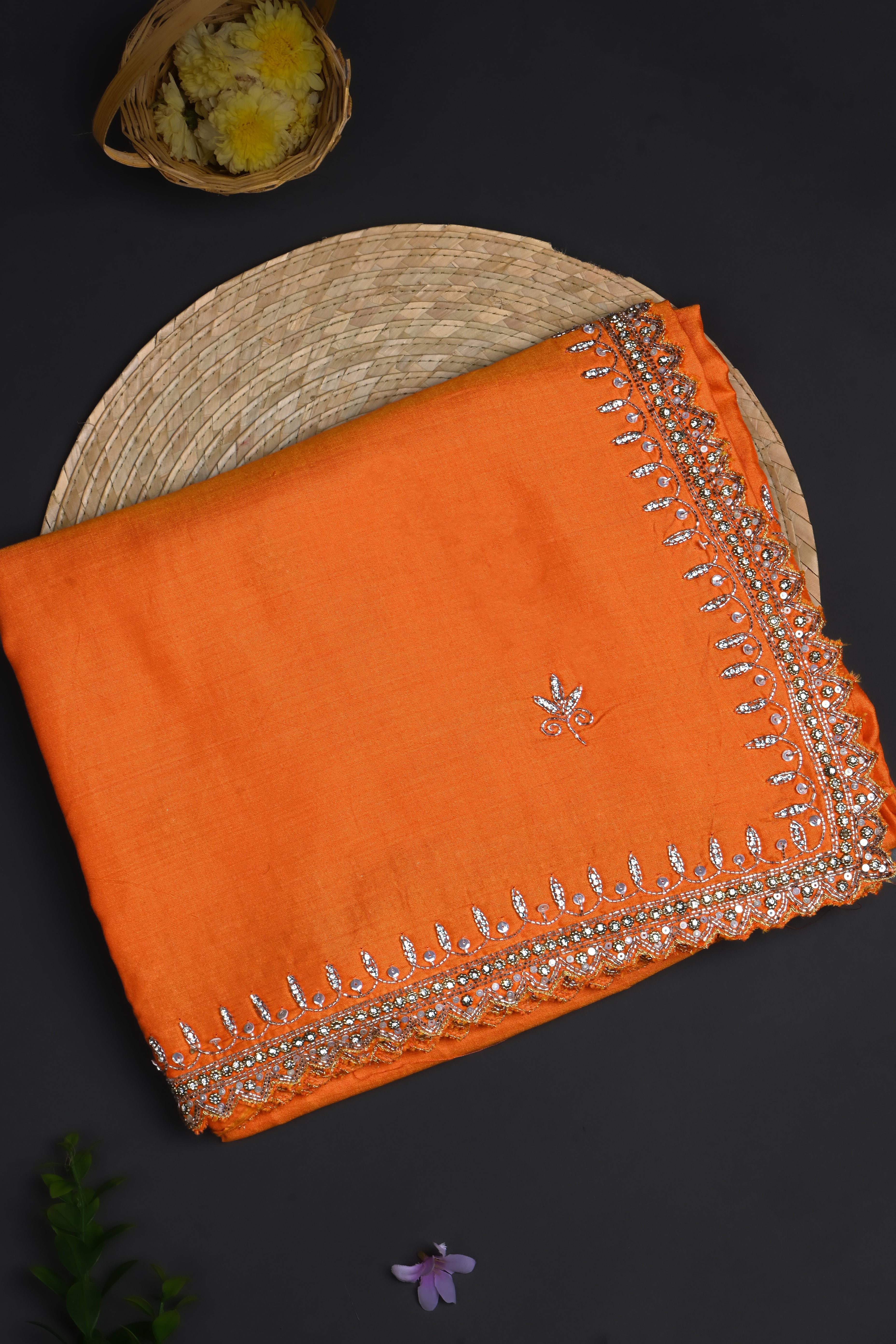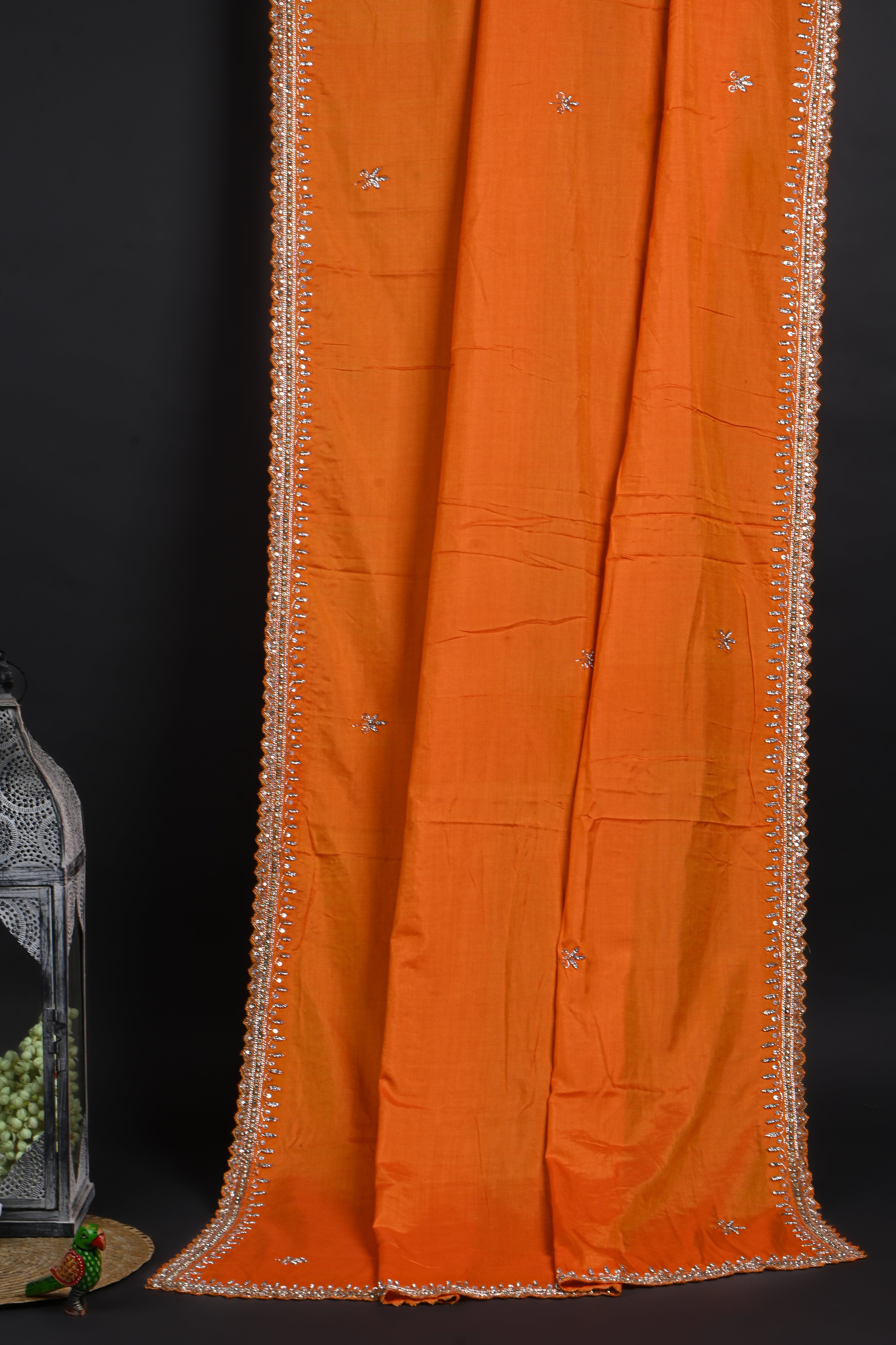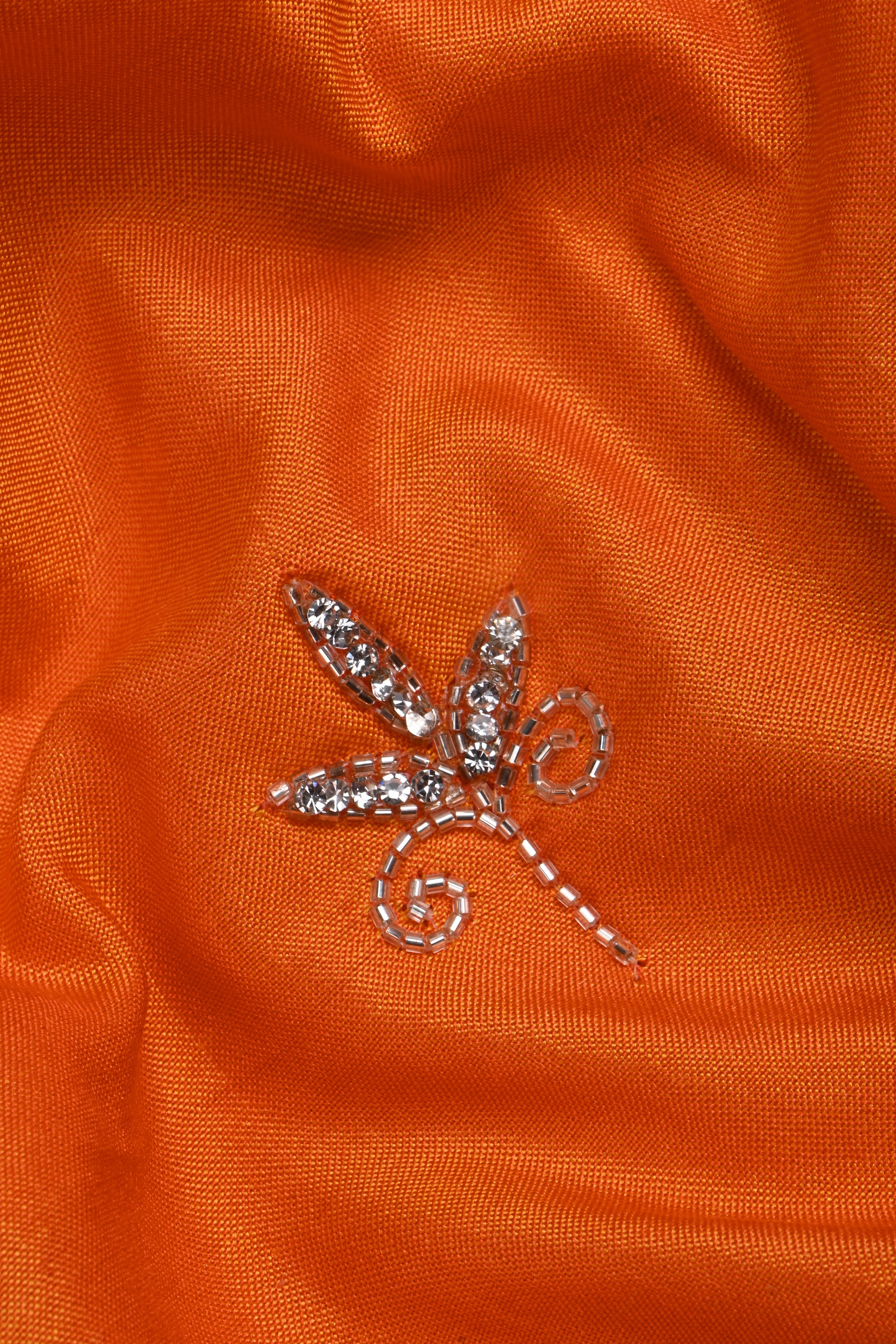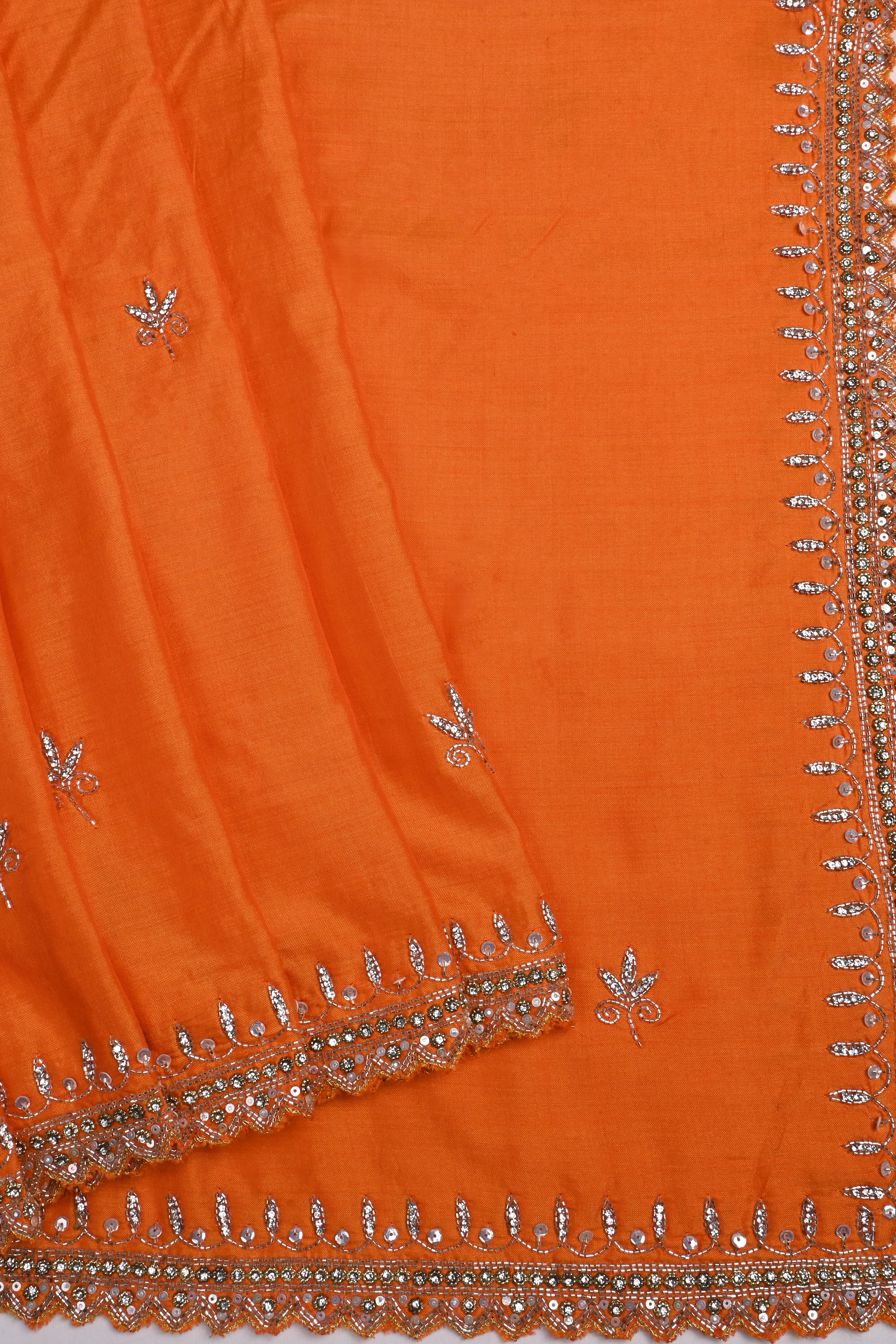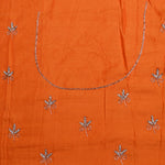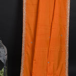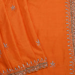Bright Orange Floral Embroidered Silk Saree