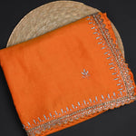 The bright orange floral embroidered silk saree with stone embroidered border and blouse for a classy neat ethnic look with grace.