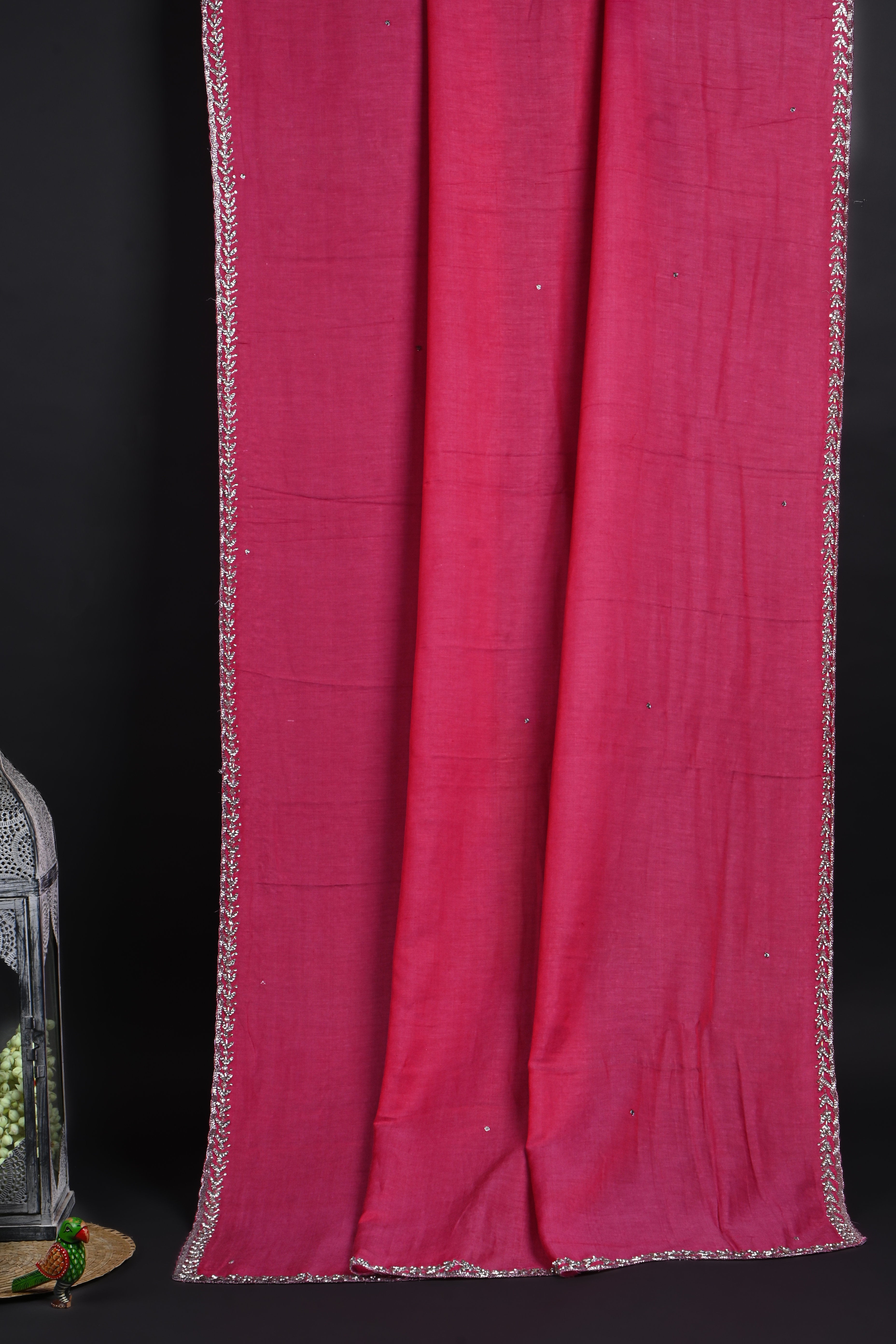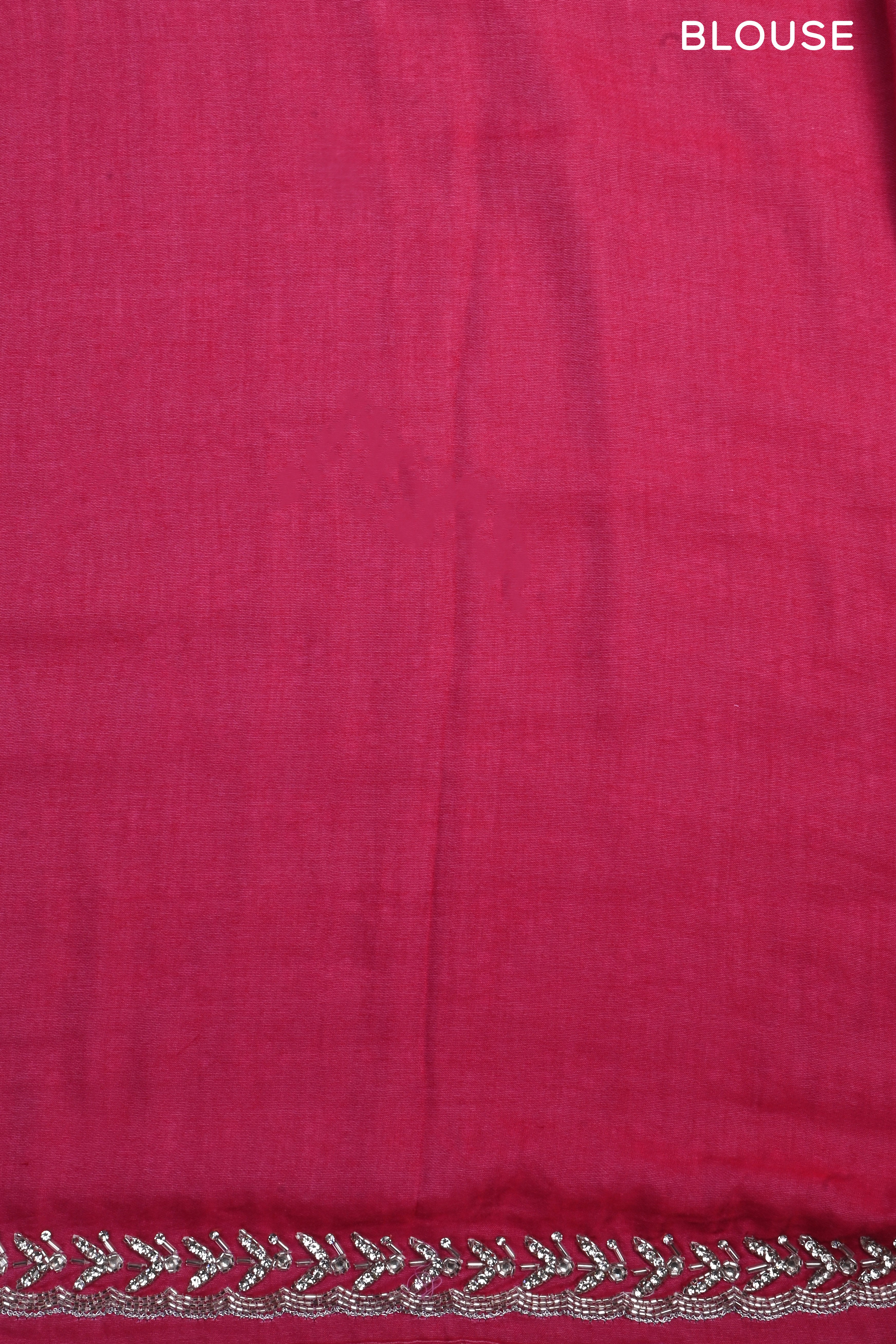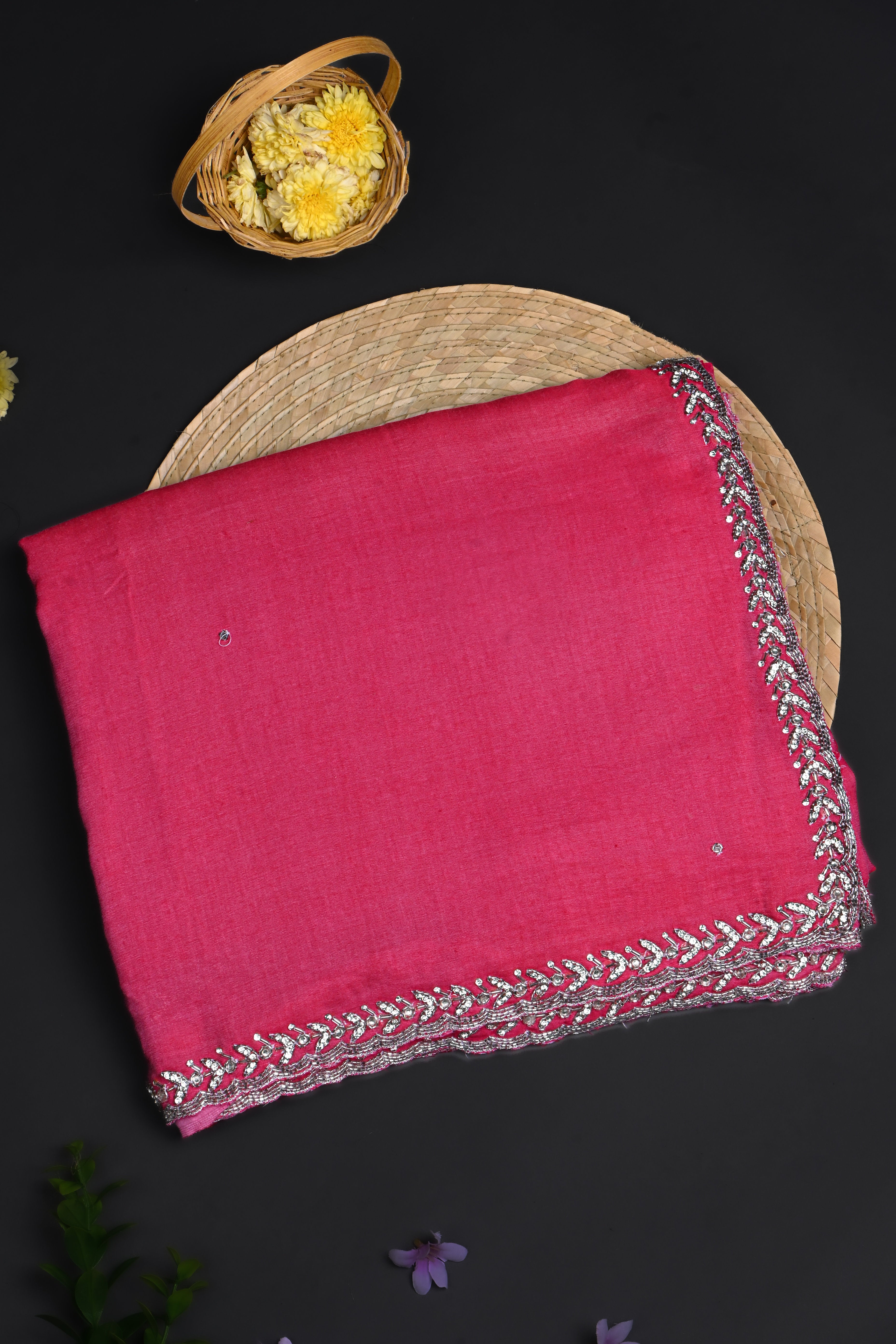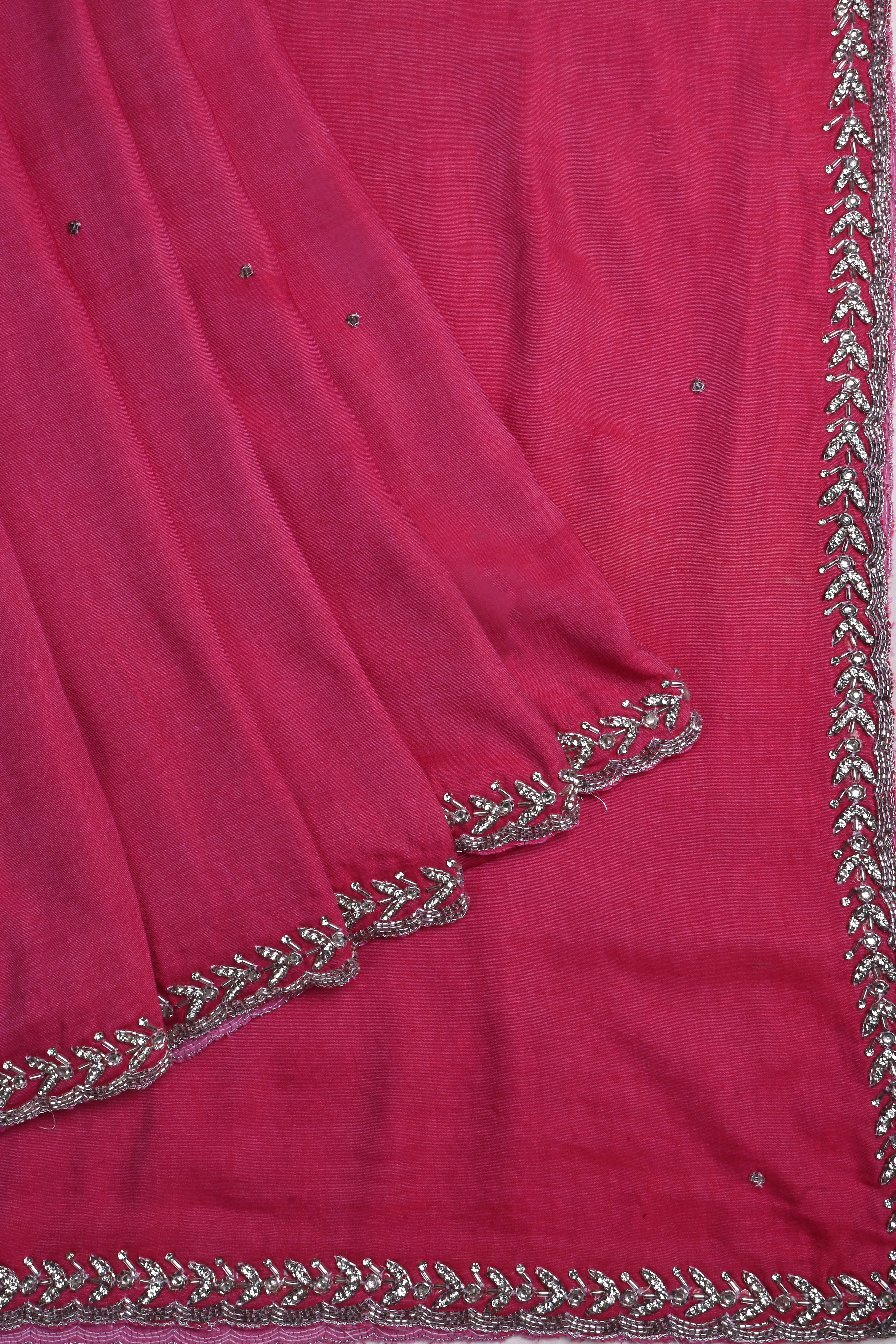 The bright pink minimal embroidered silk saree with floral embroidered border and blouse for a classy neat ethnic look with grace.