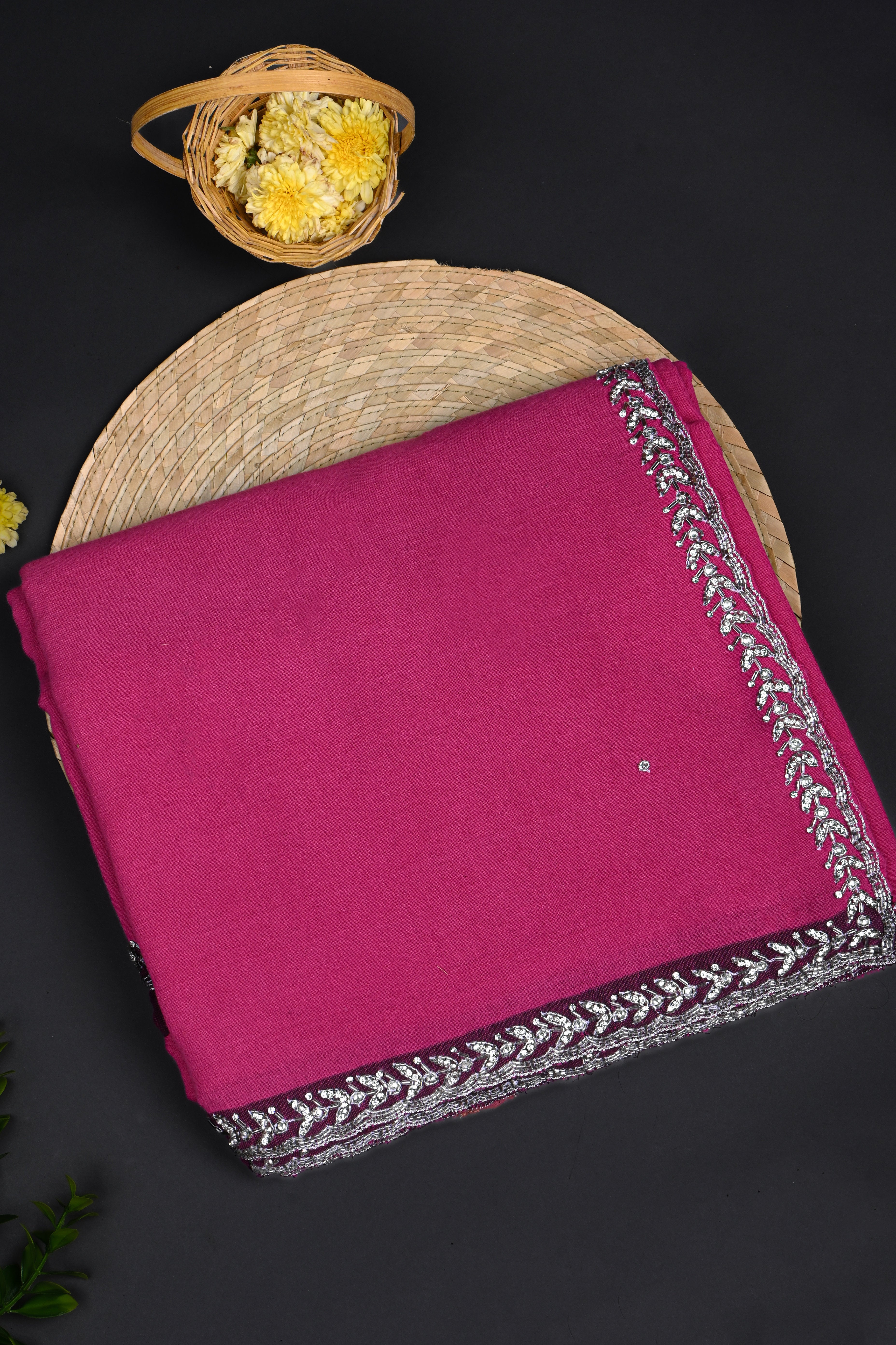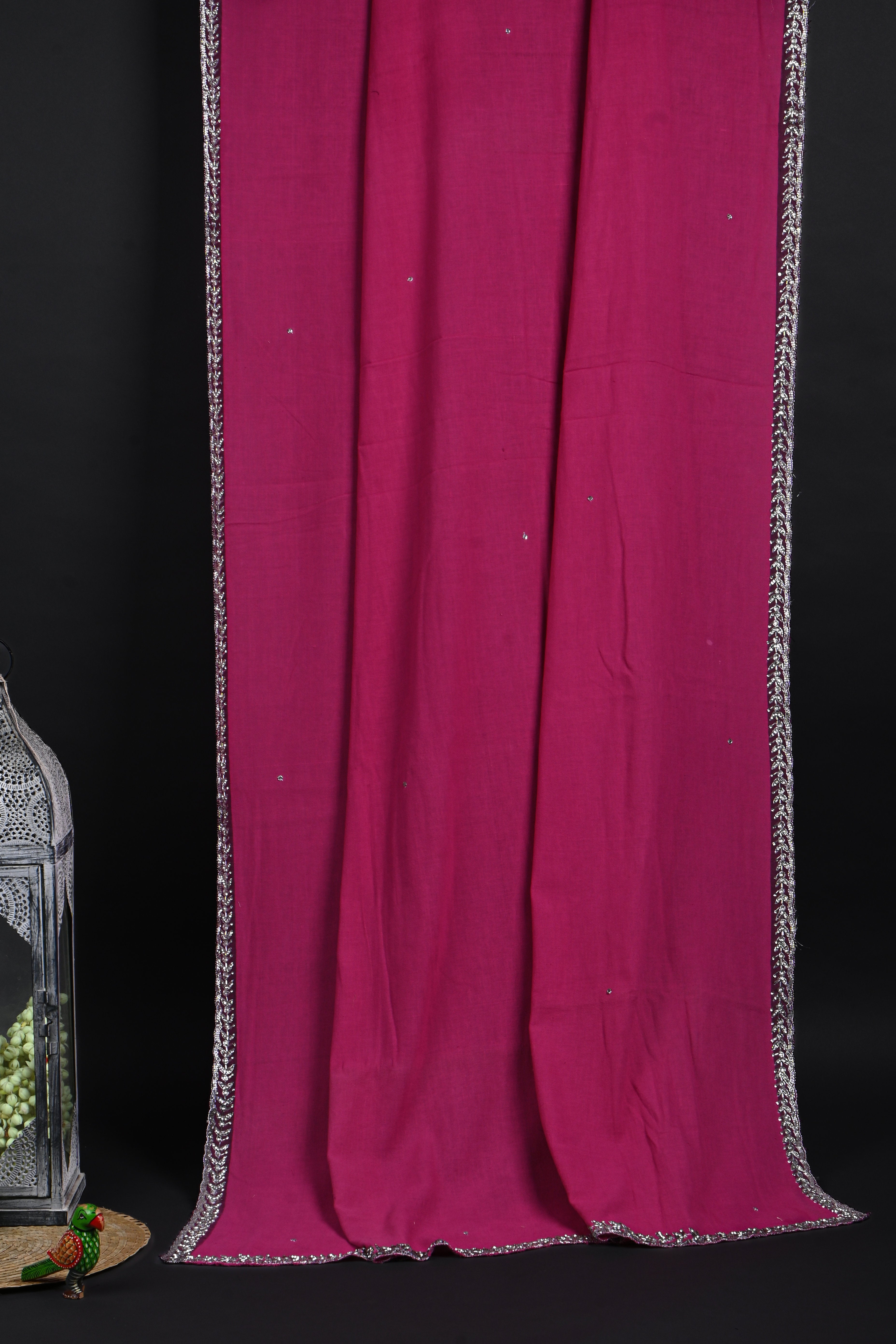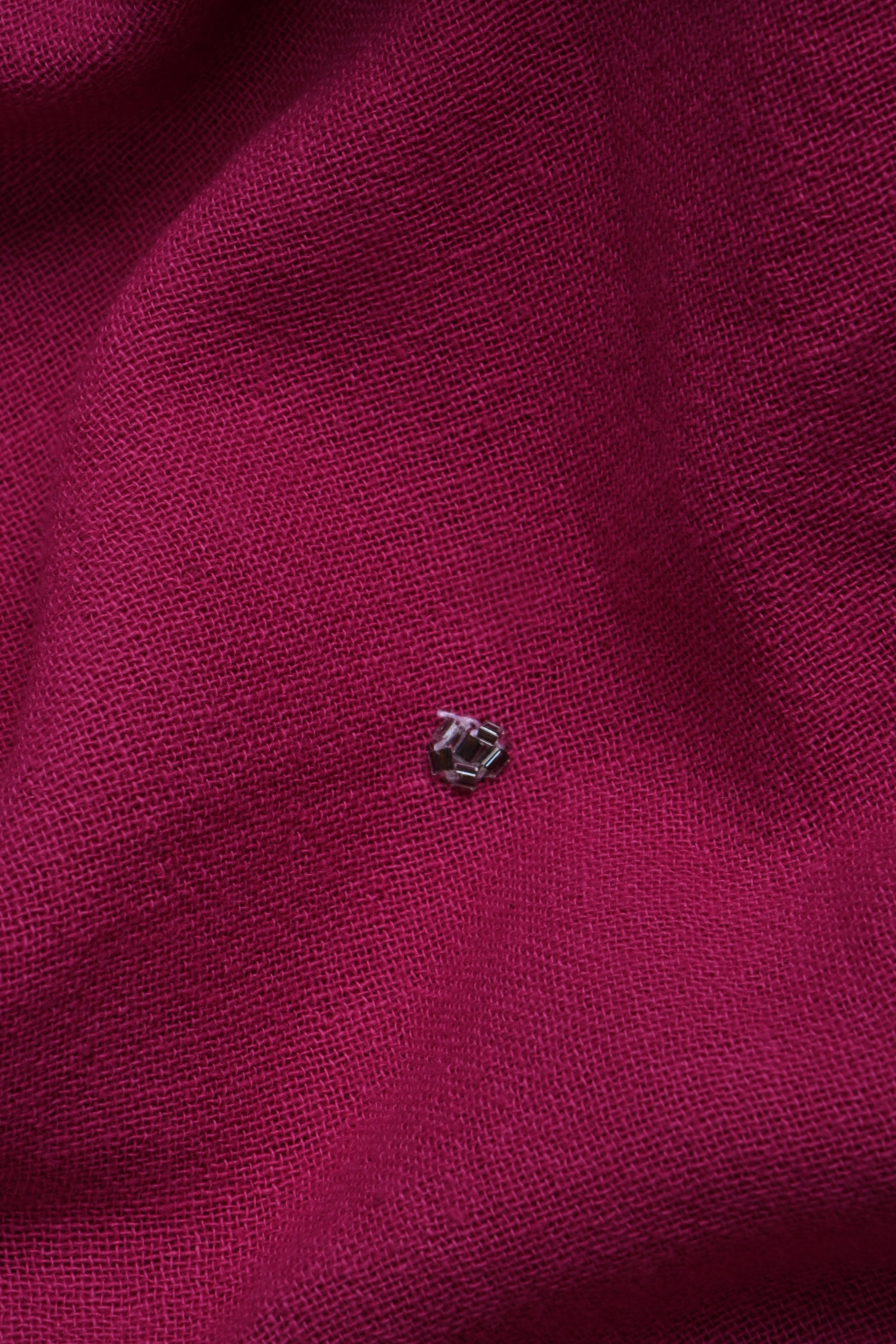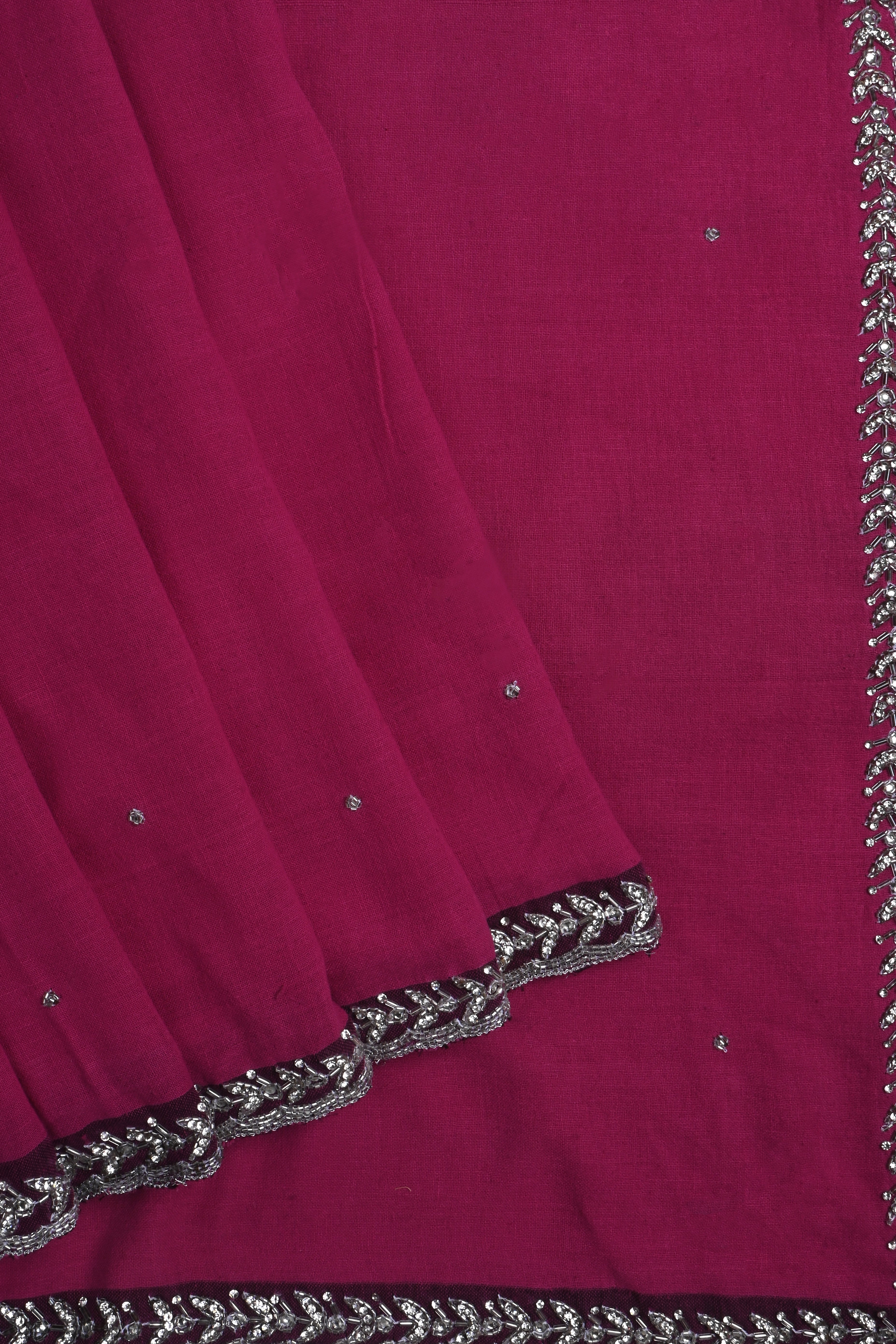 Dark Pink Embroidered Khadi Saree