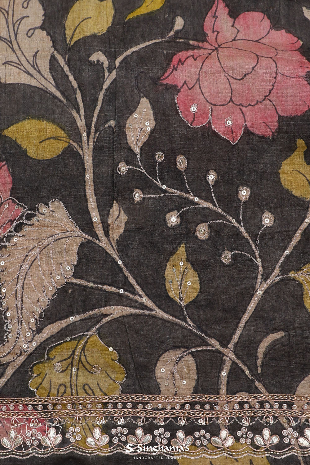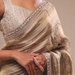 Khaki Green Handcrafted Designer Tissue Saree