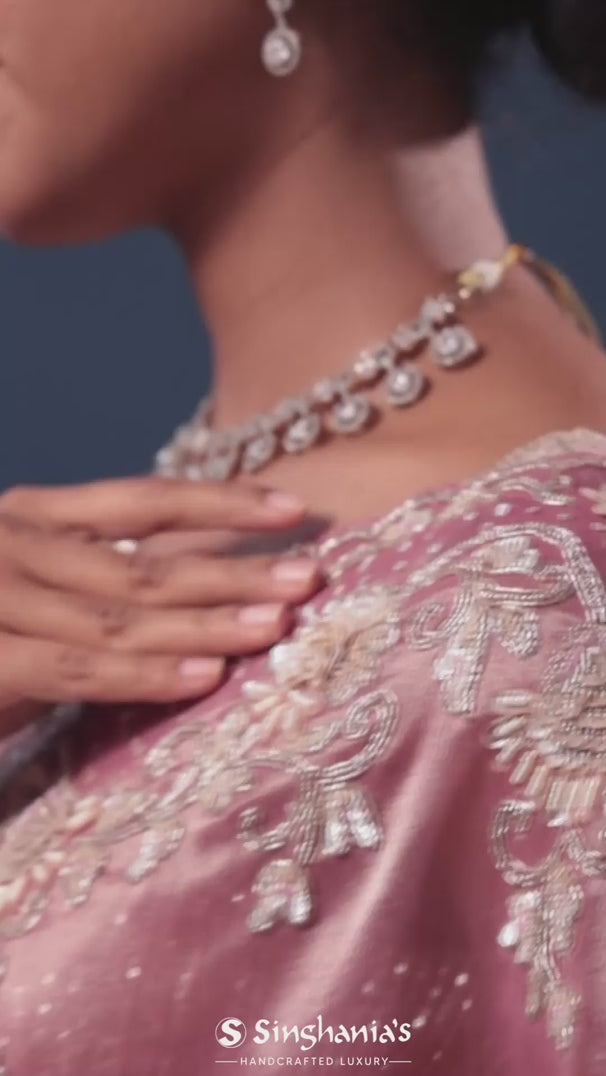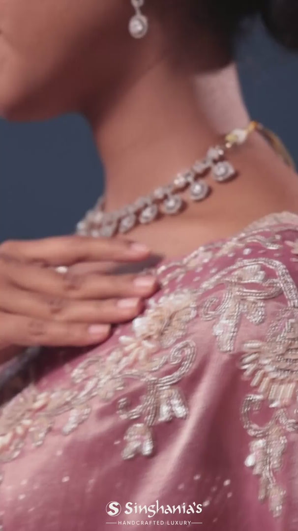 Muted Rose Pink Tissue Saree With Cutdana Work