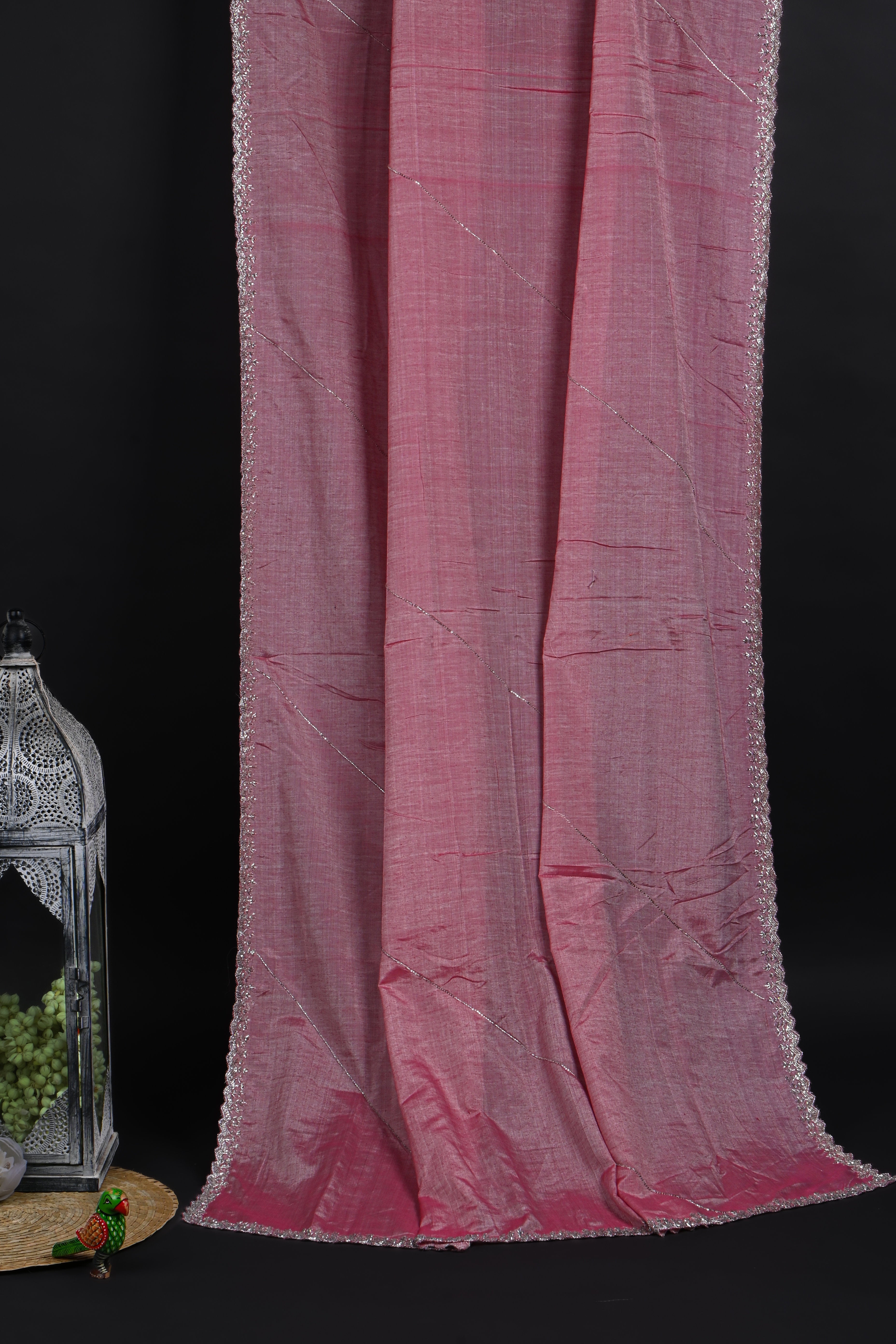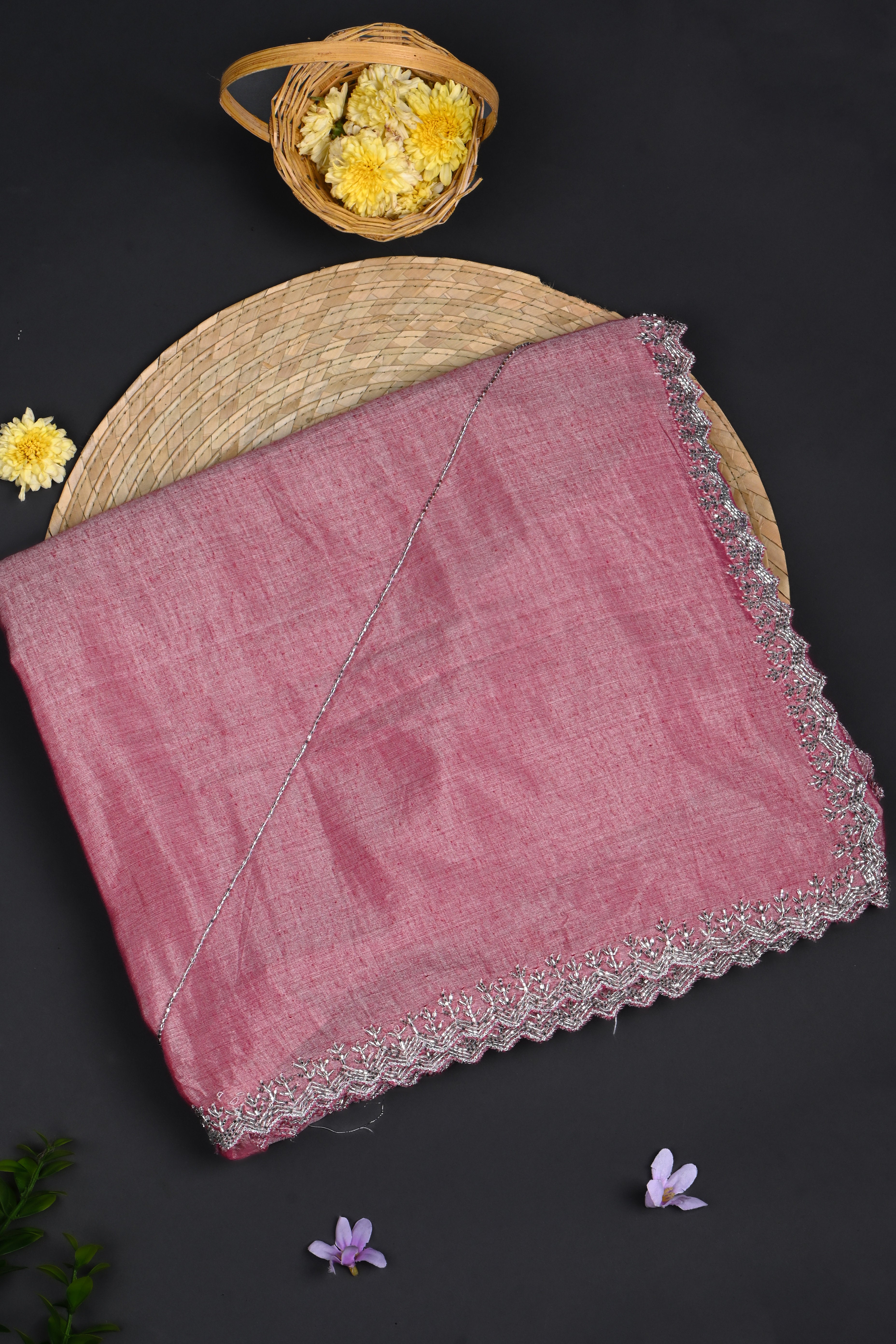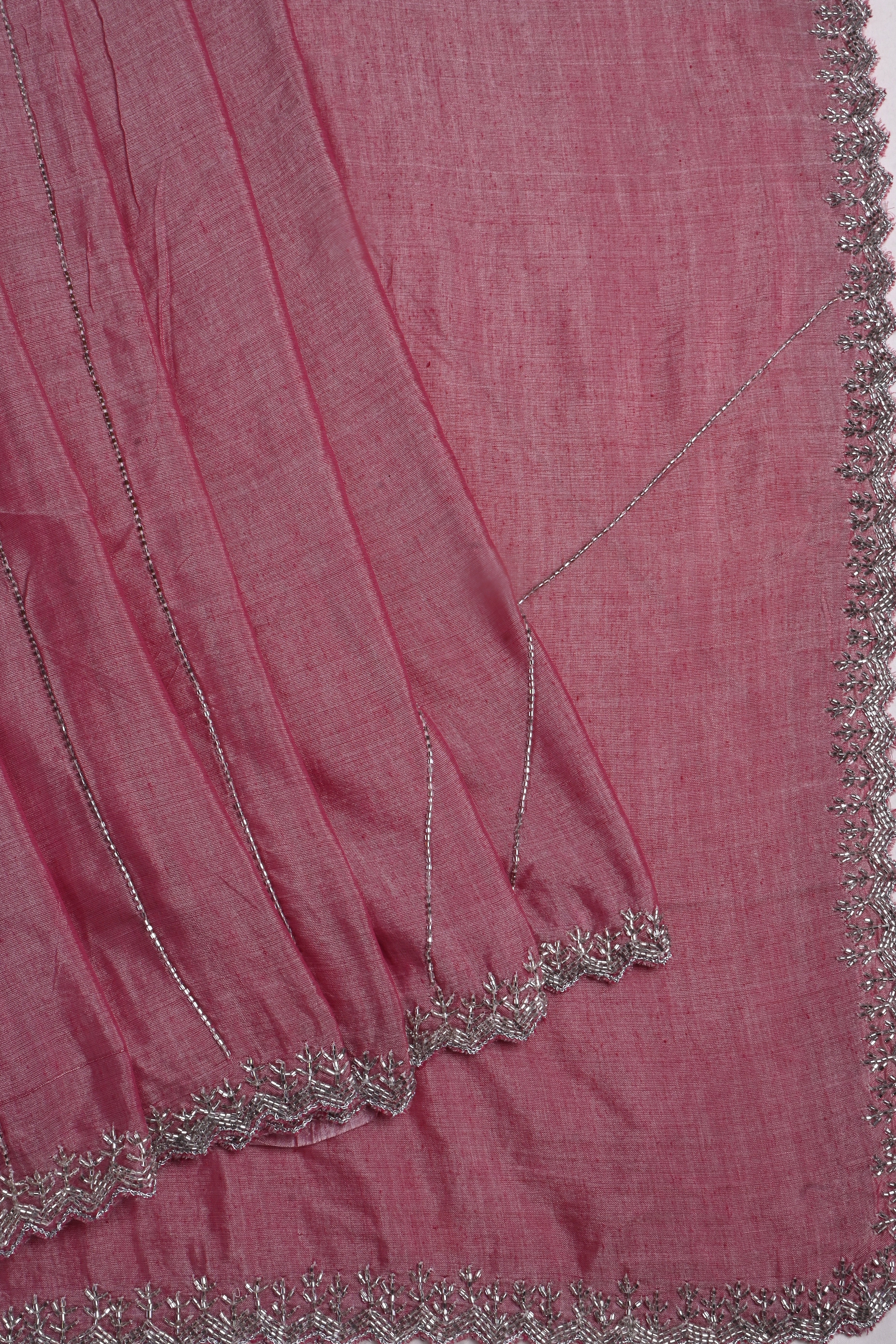 The muted rouge pink embroidered silk saree with floral embroidered scallop border and blouse for a classy neat ethnic look with grace.