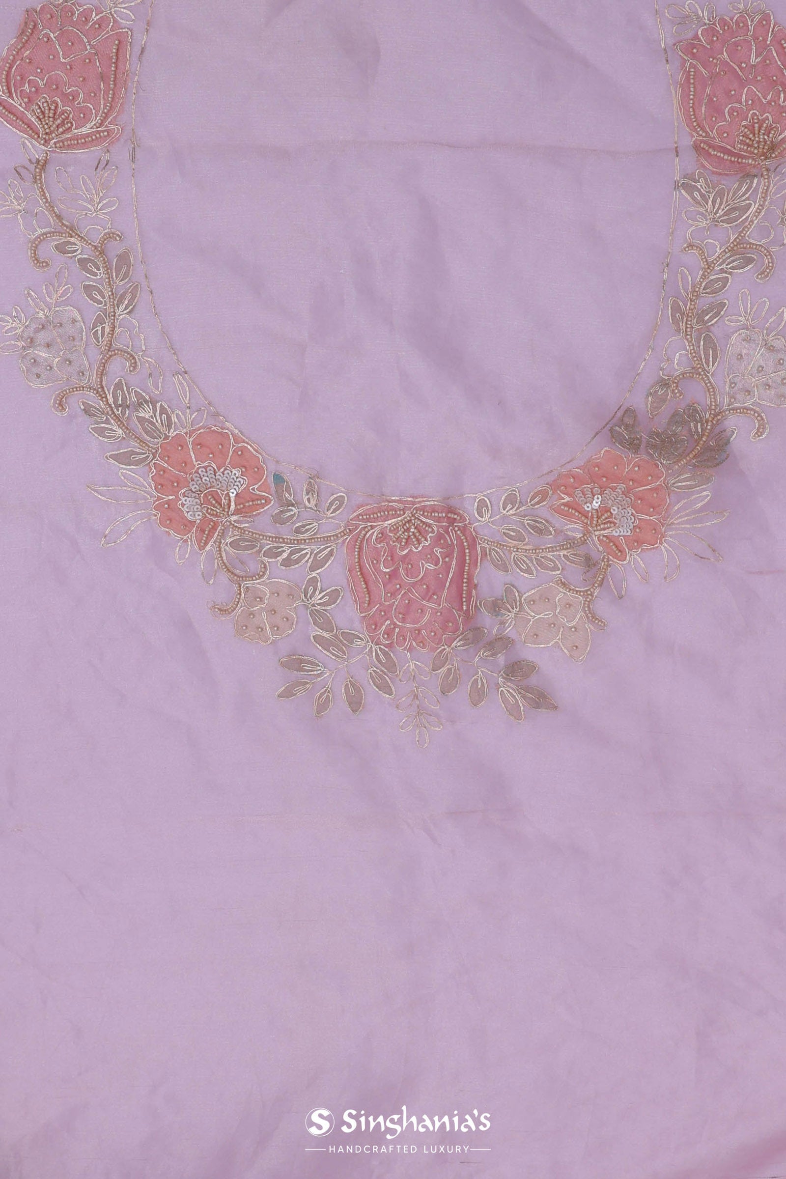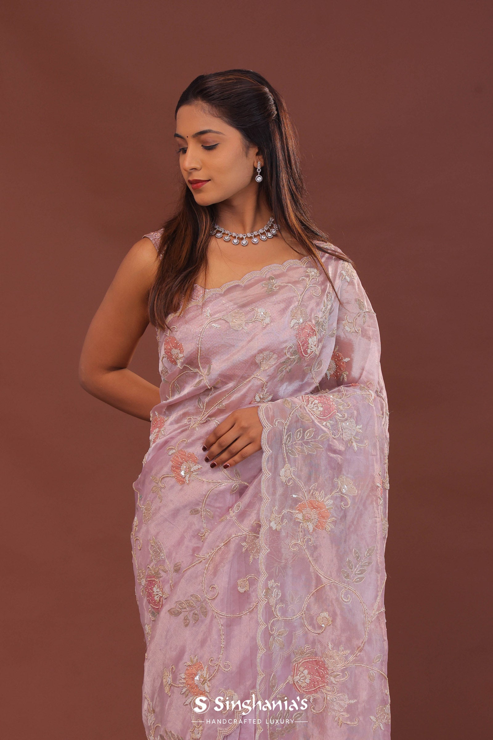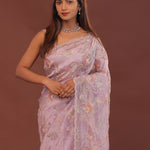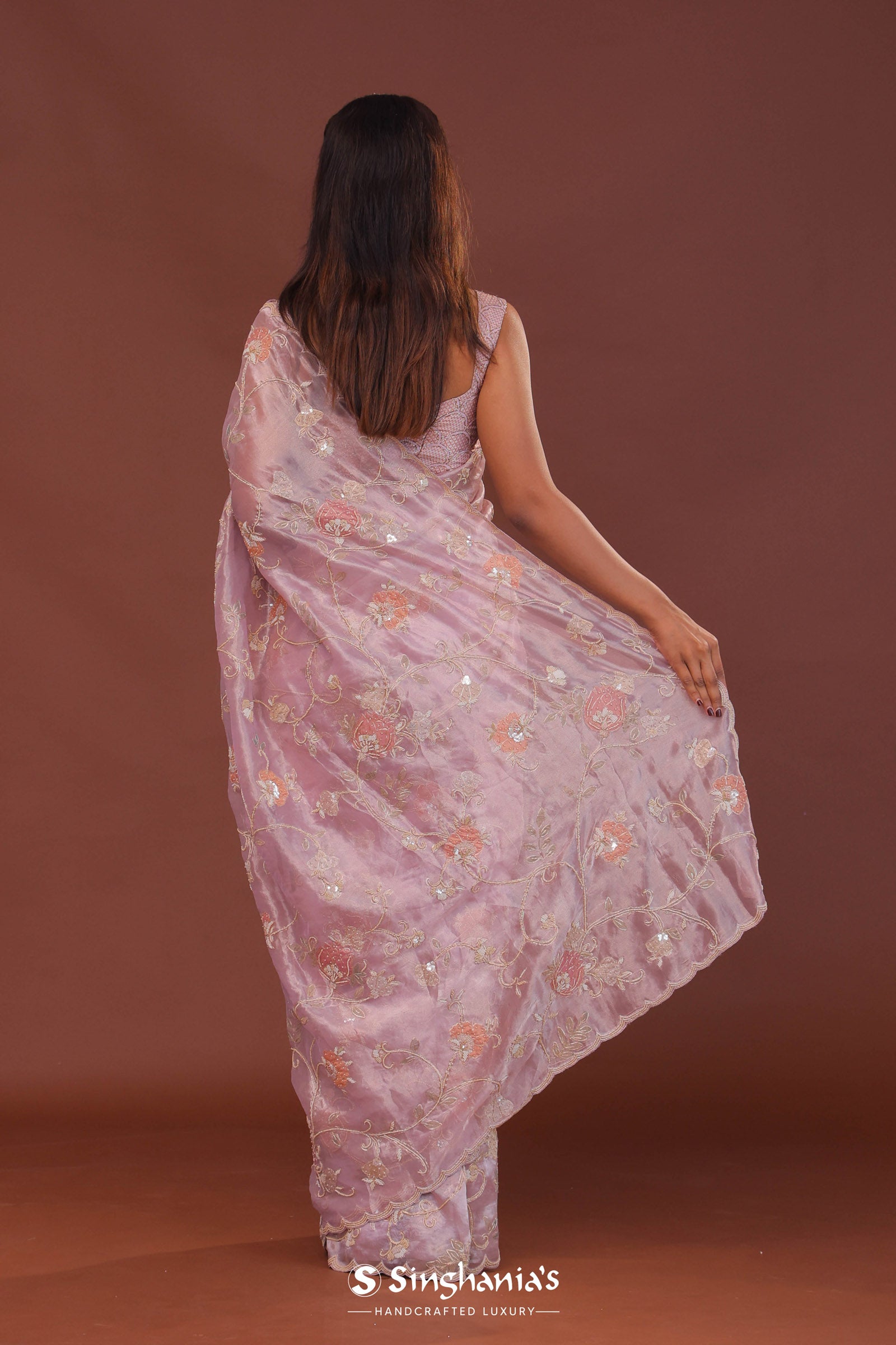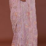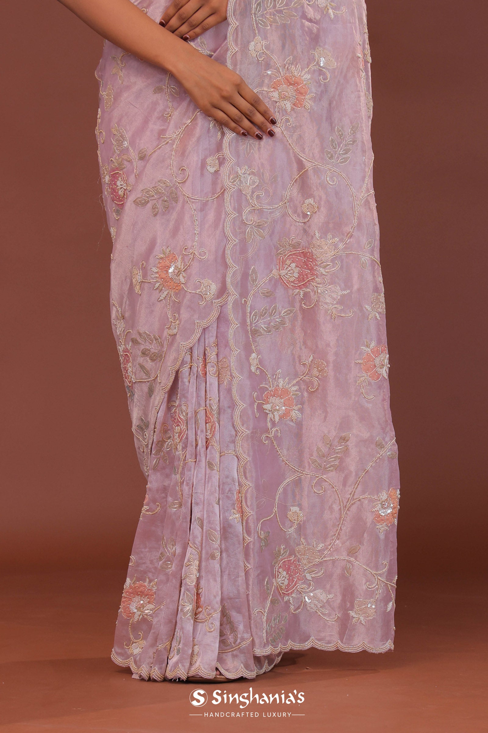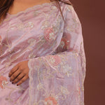 Pink Purple Organza Embroidery Saree With Scallop Border