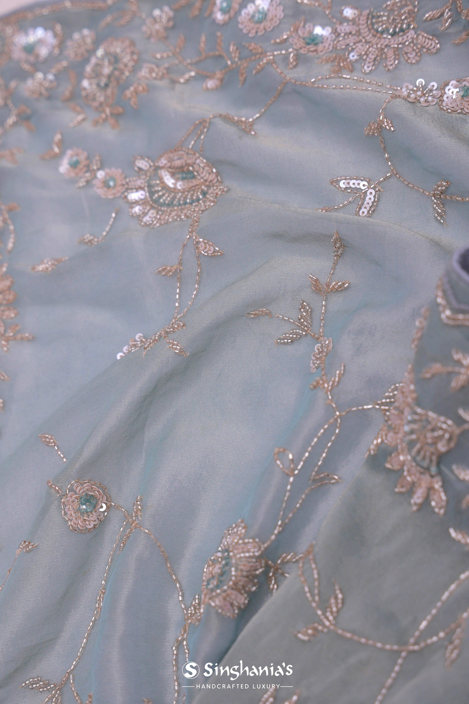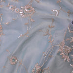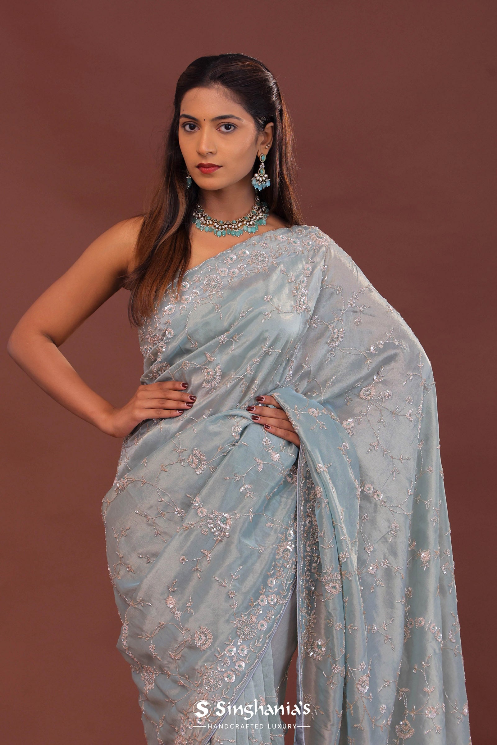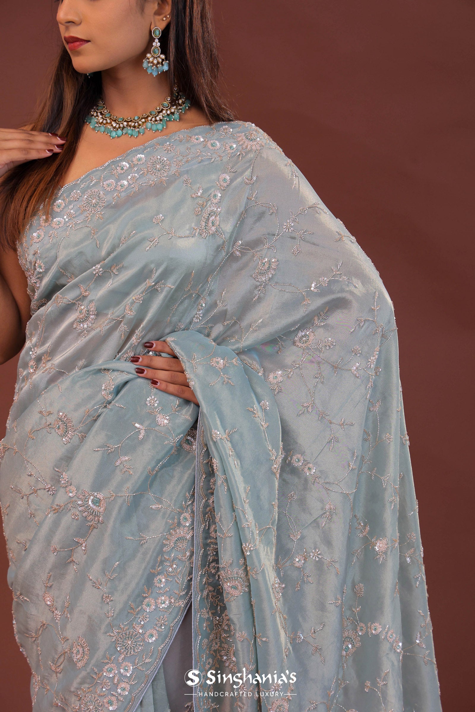 Powder Blue Tissue Embroidery Saree With Scallop Border