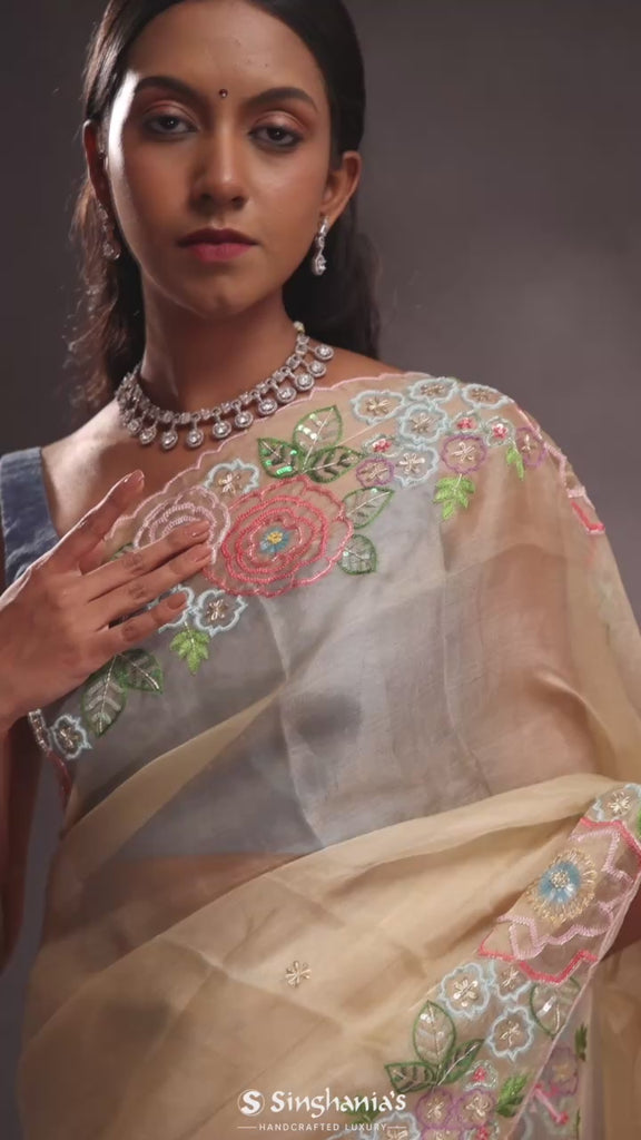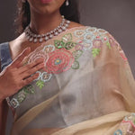 Soft Beige Organza Embroidery Saree With Floral Border