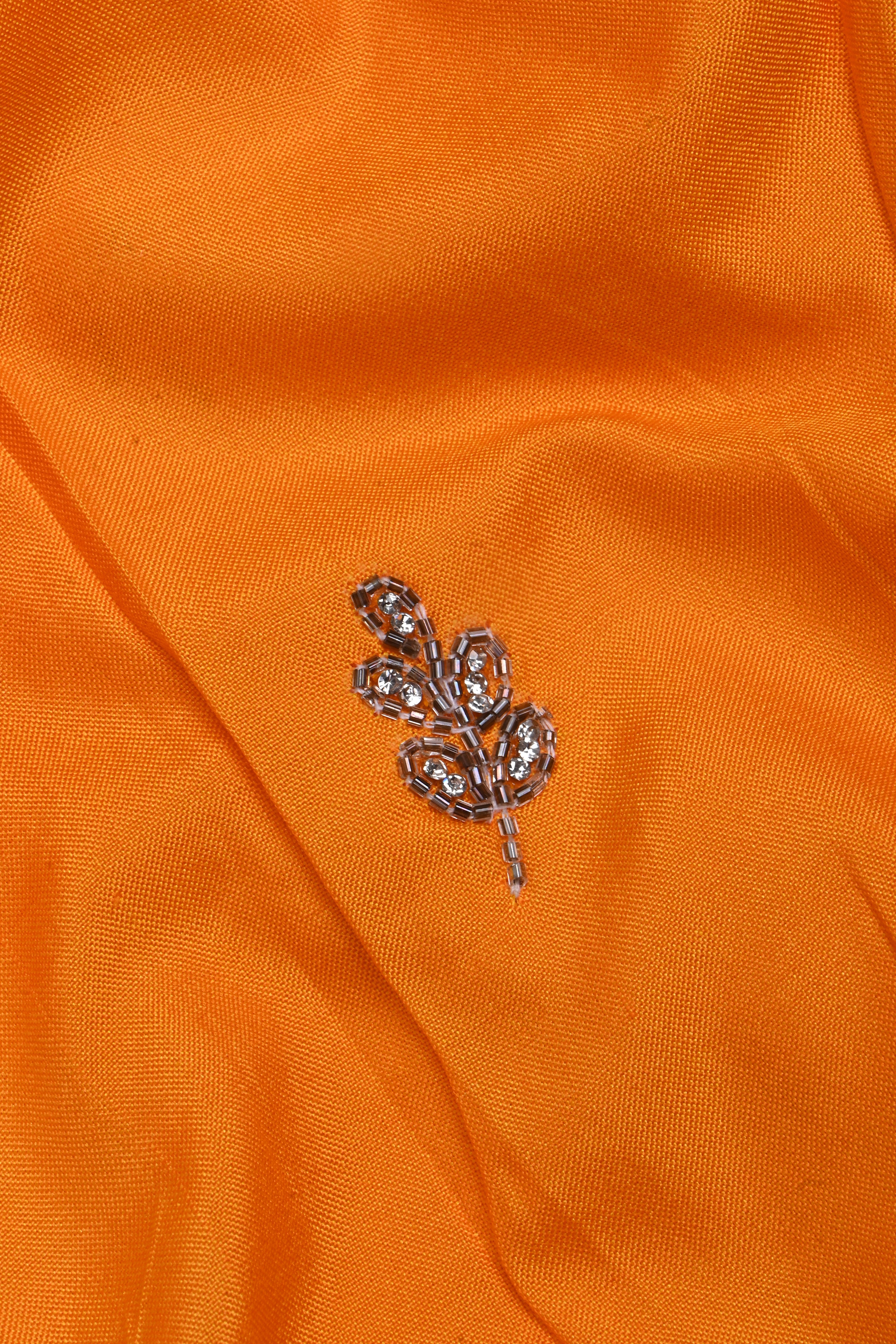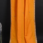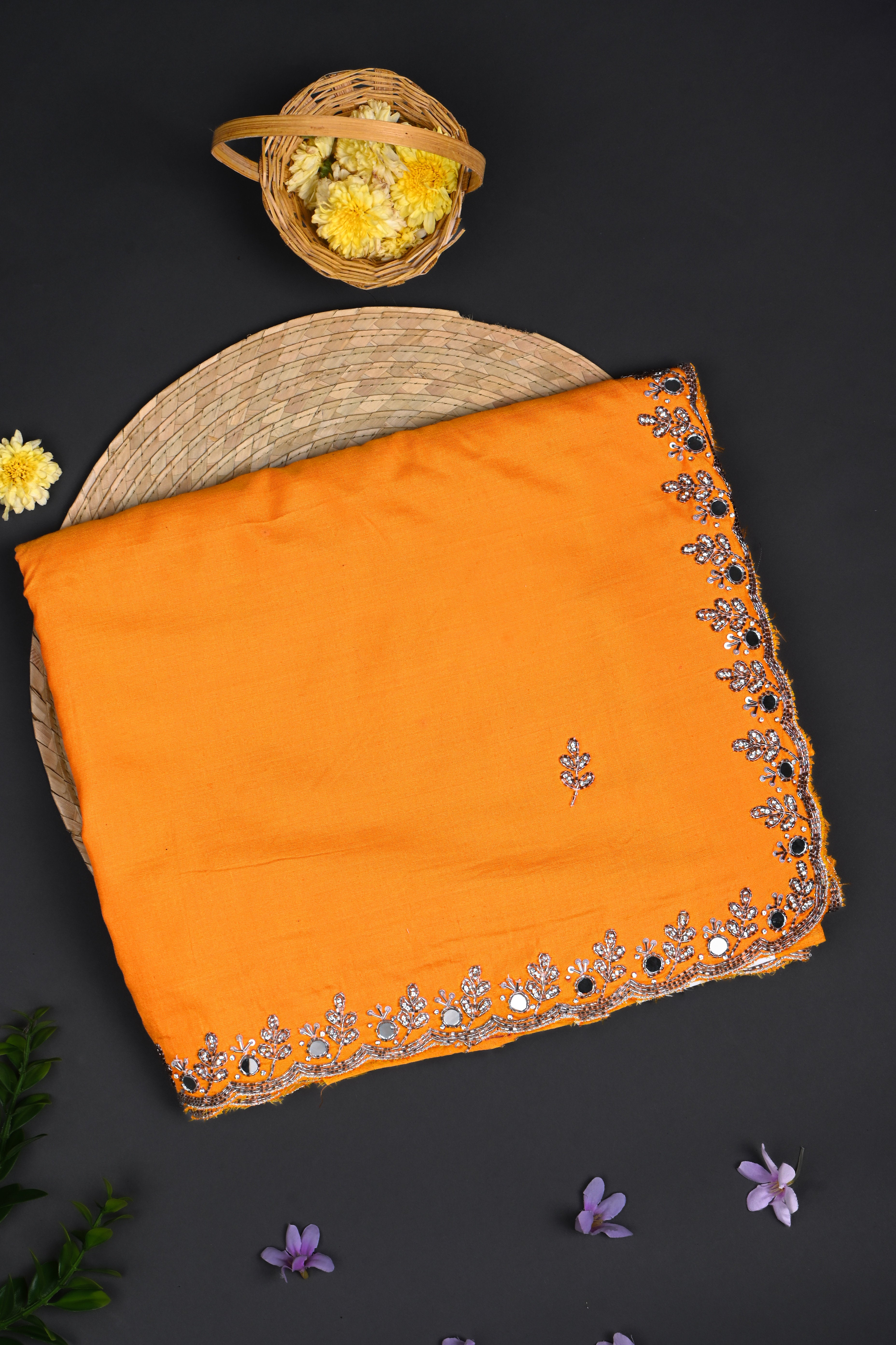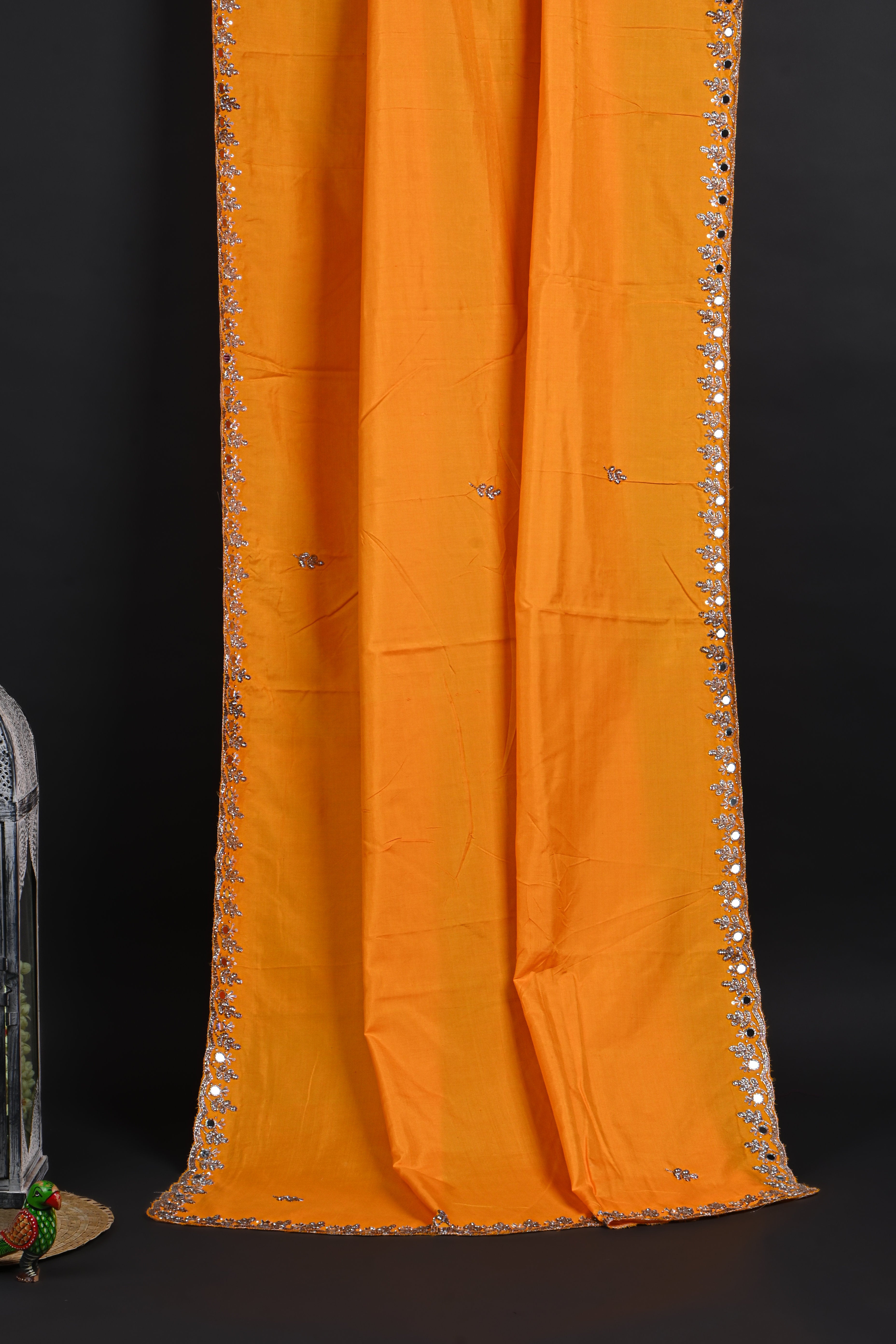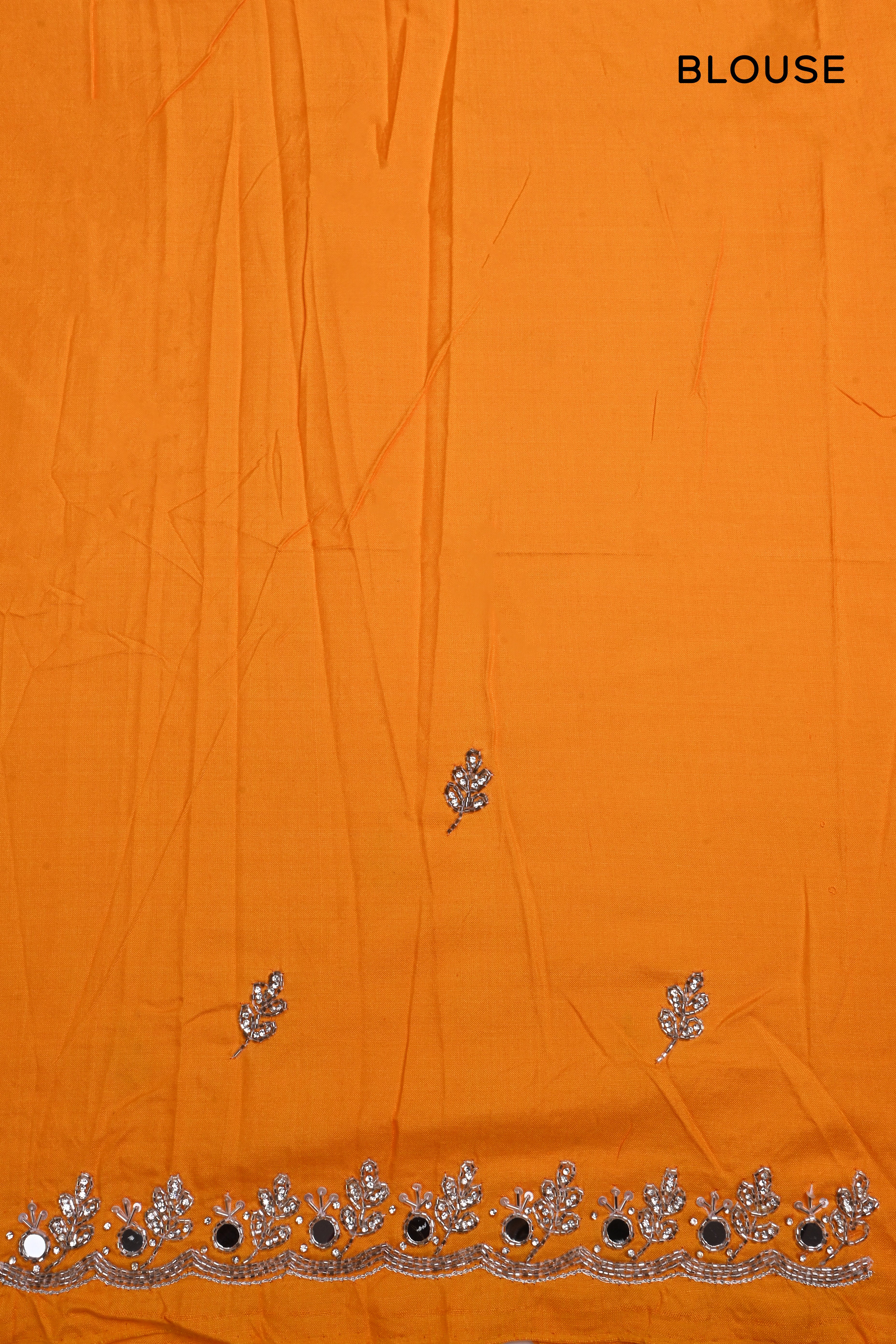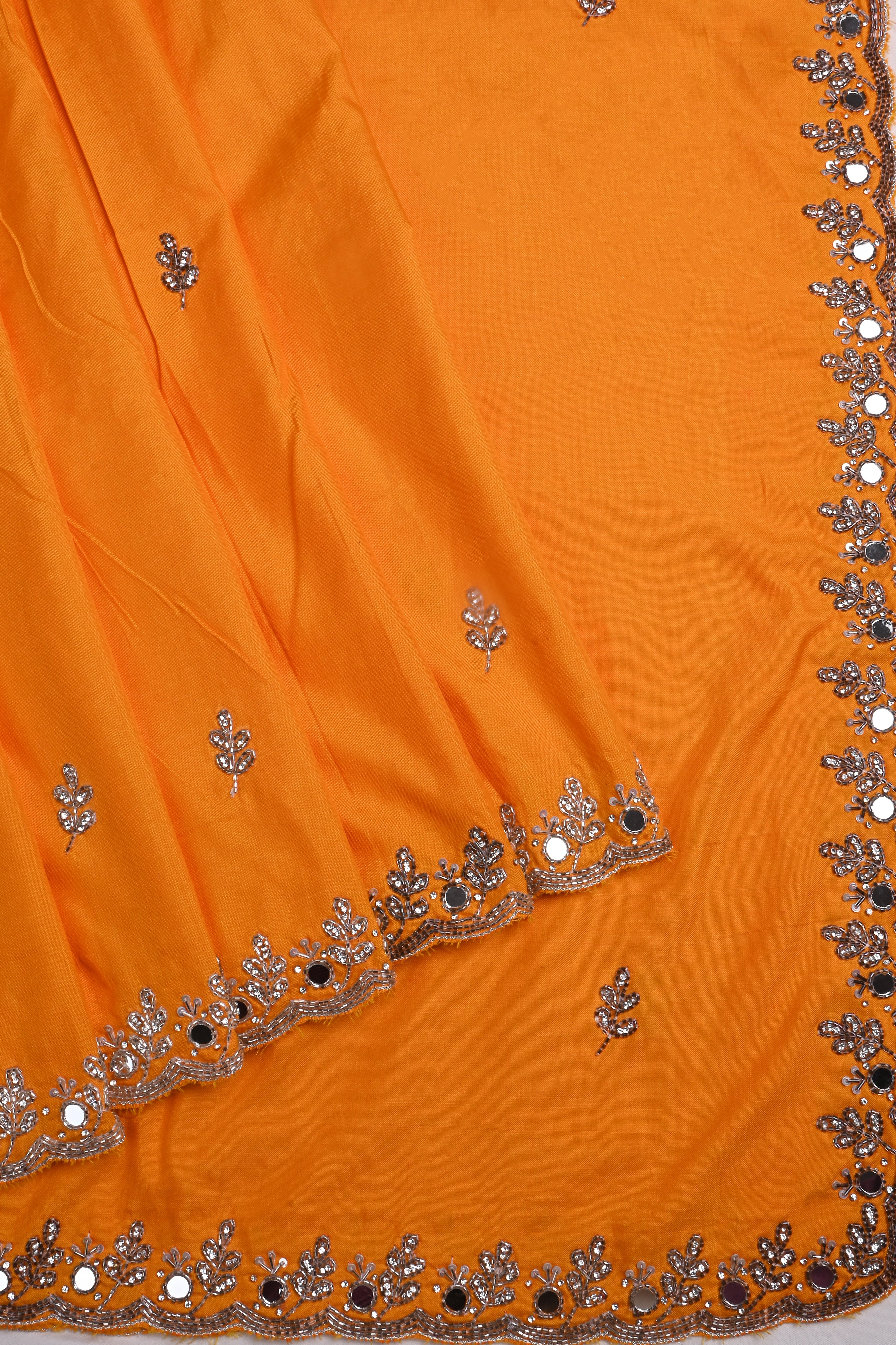 The sunset yellow embroidered silk saree with floral embroidered border and blouse for a classy neat ethnic look with grace.