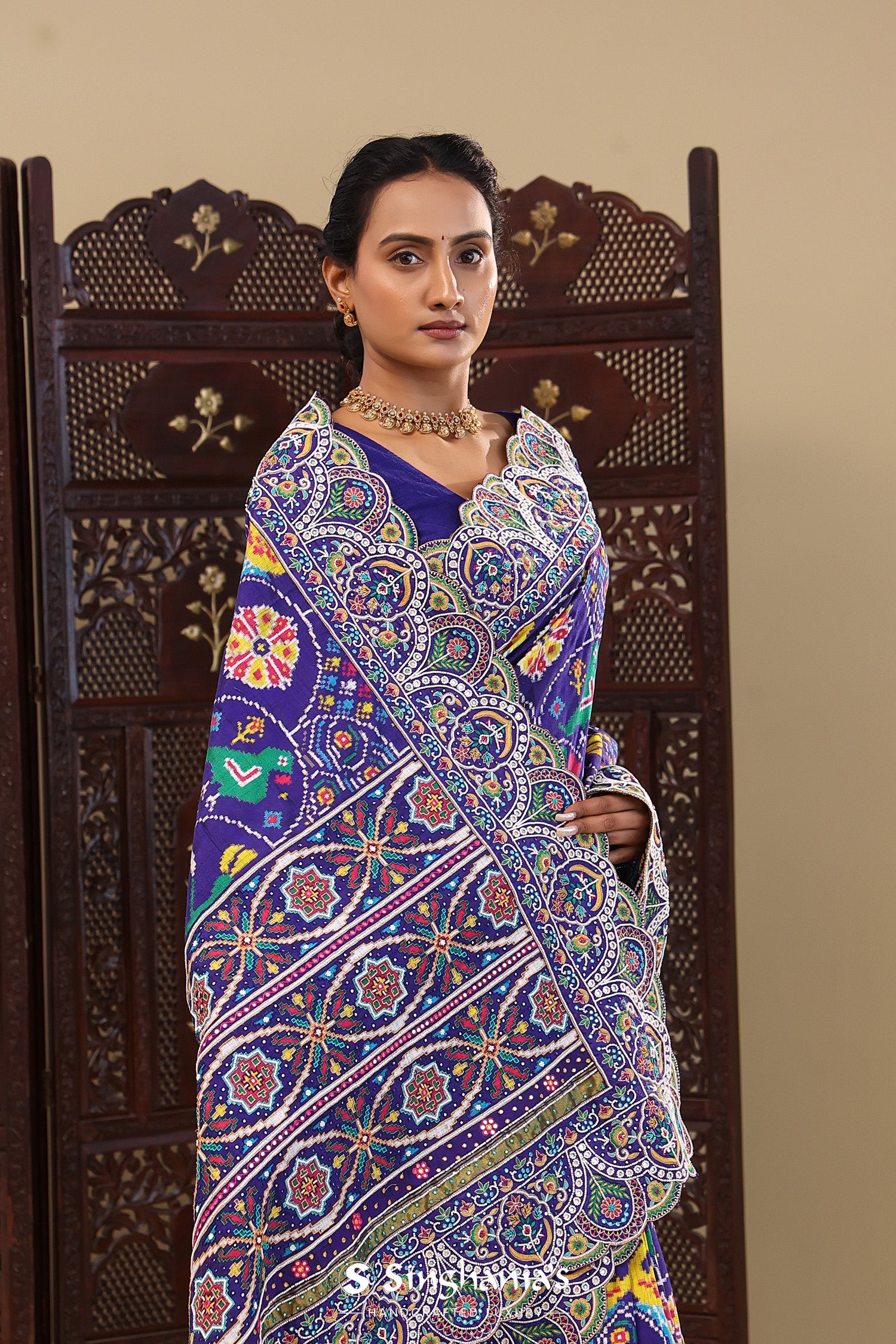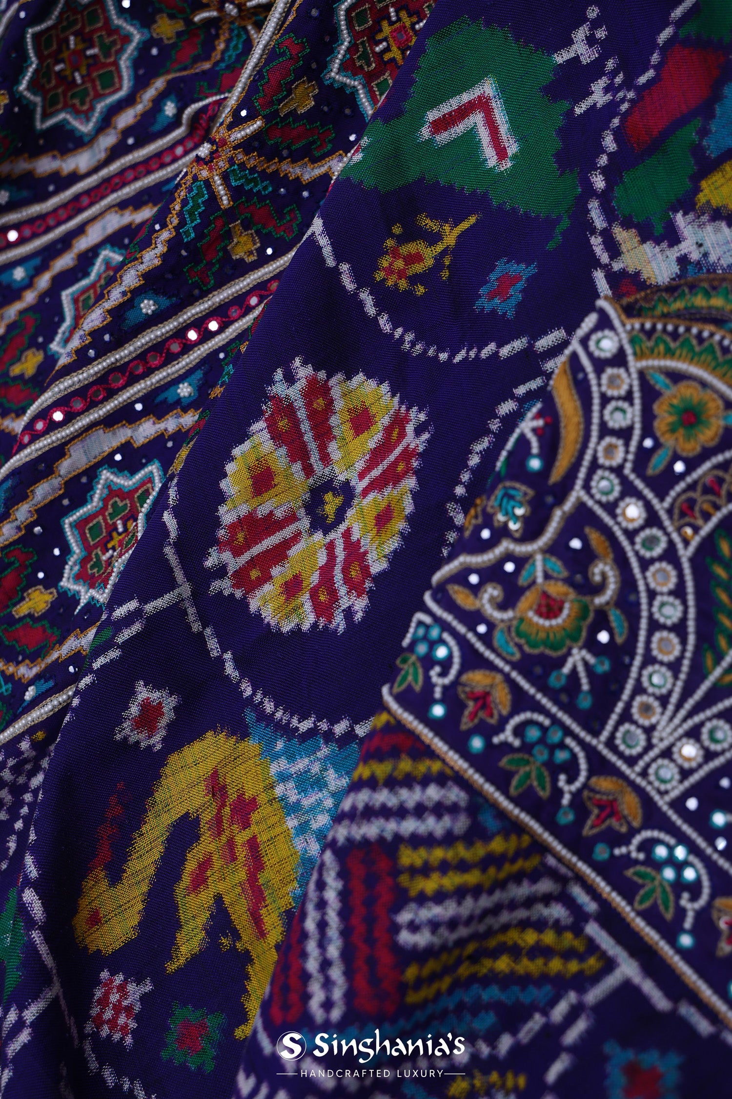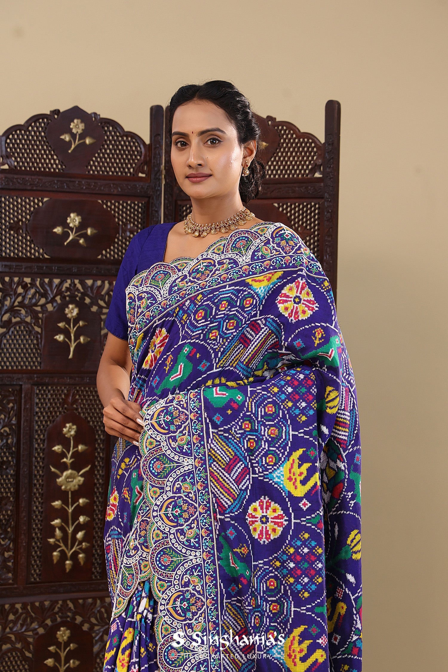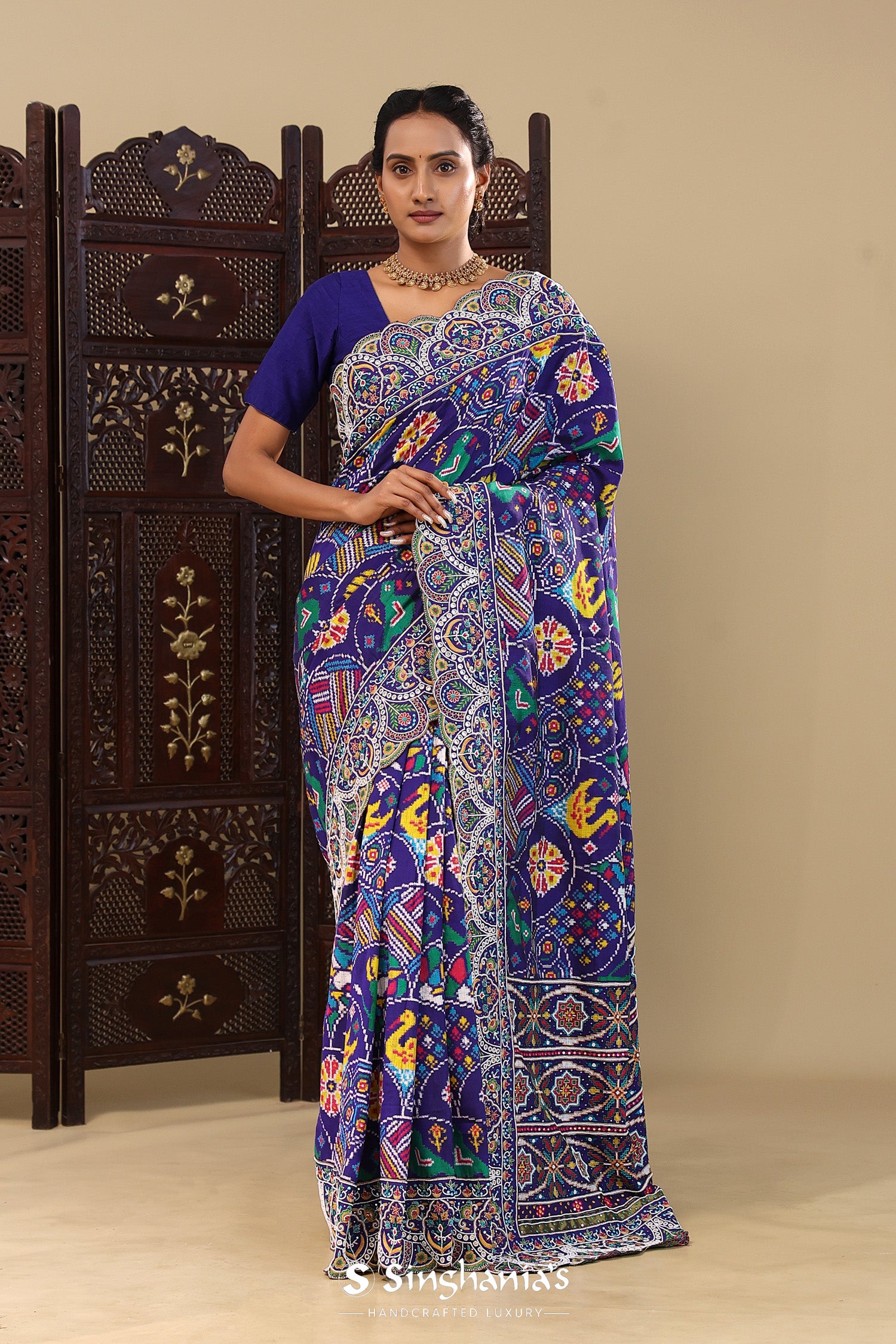 Haiti Blue Patola Silk Saree With Scallop Border