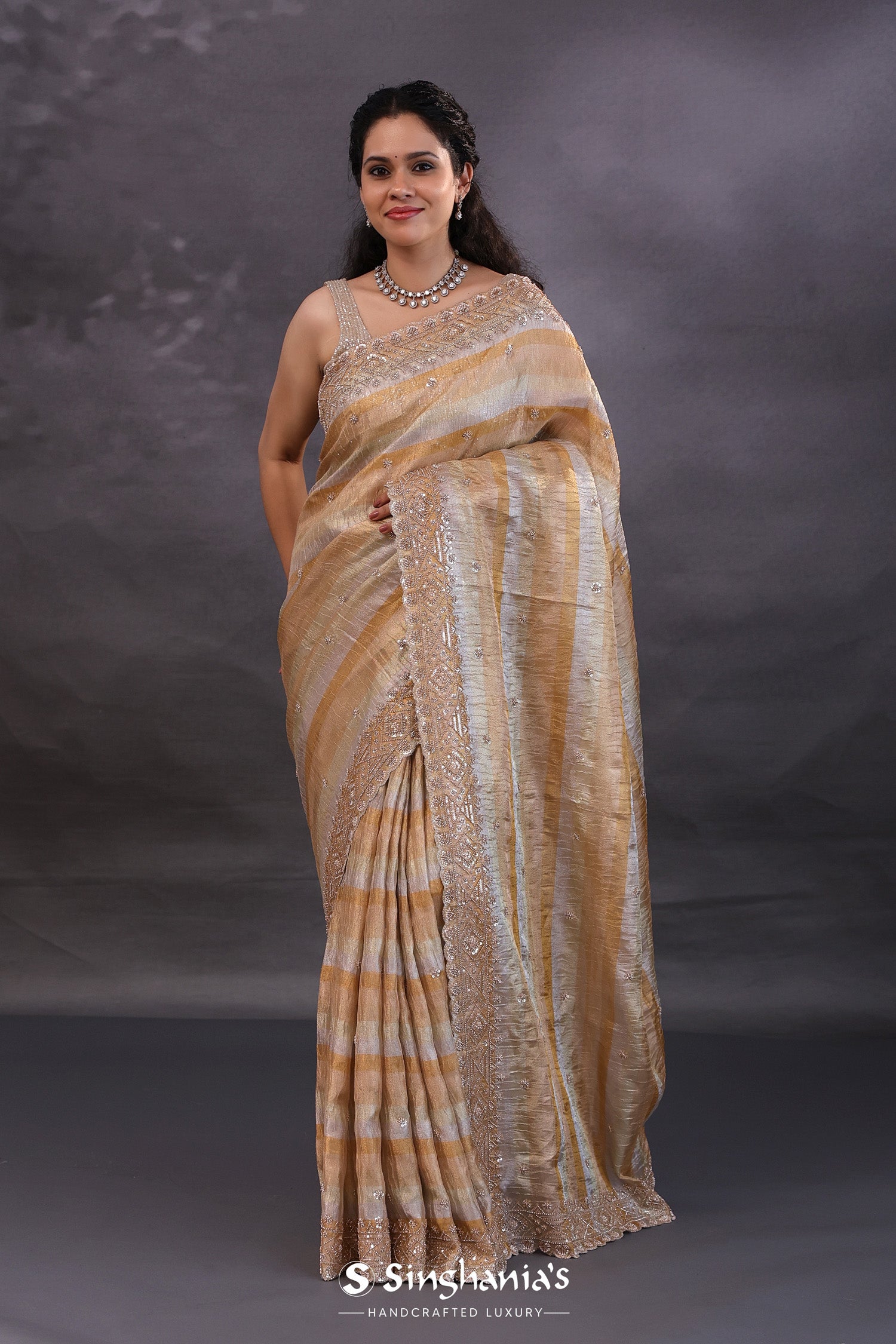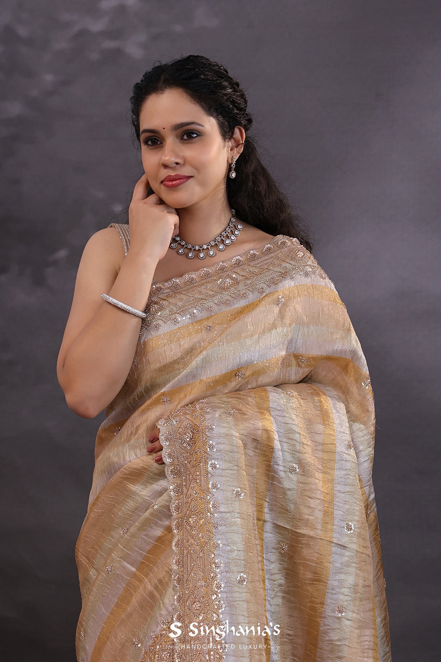 Dual Tone Tissue Fancy Saree With Cutdana Work