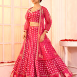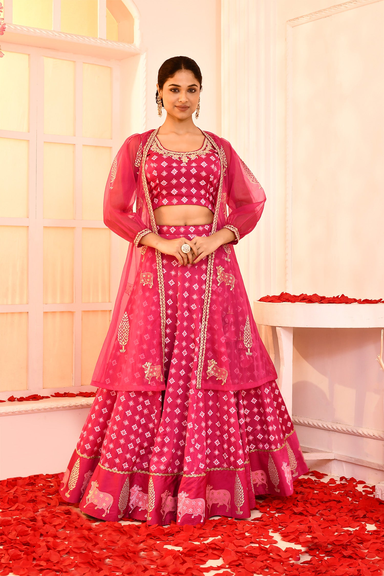 The Silk Certain Hand Embroidered Blouse And a Silk Certain Foil Printed Lehenga With Organza Foil Printed , Dori Embroidered Jacket for a casual yet dignified look along with the stylish comfort.