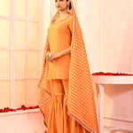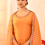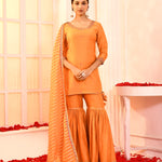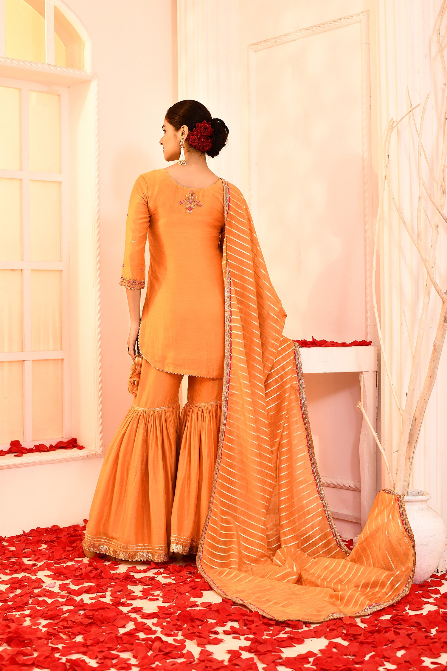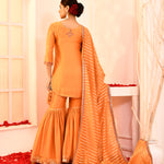 Orange Hand Embroidered Cotton Silk Kurta And Gharara Set