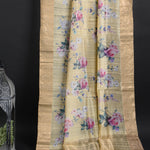 Pastel Yellow Floral Printed Dupion Silk Saree