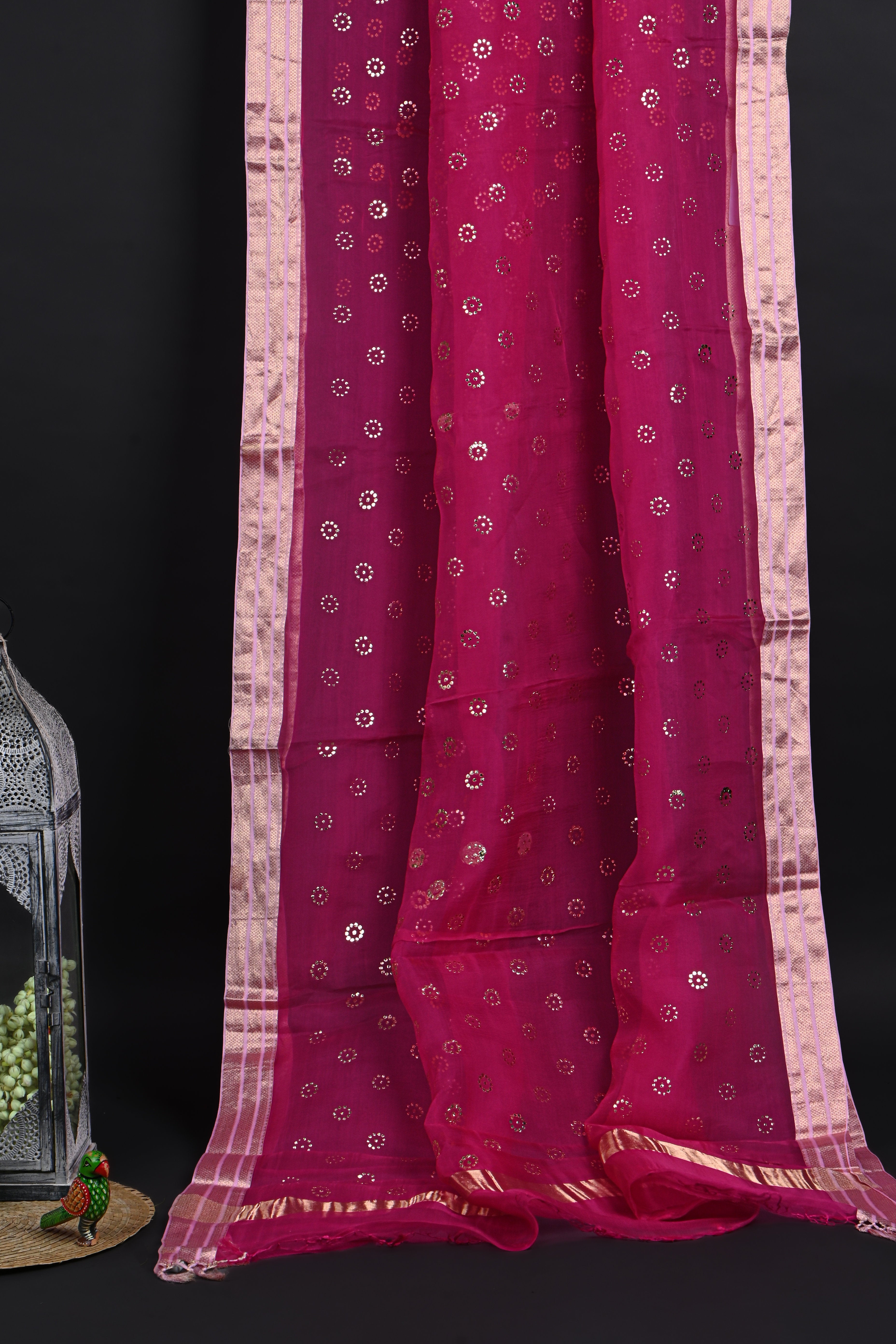 Pink Foil Printed Organza Saree