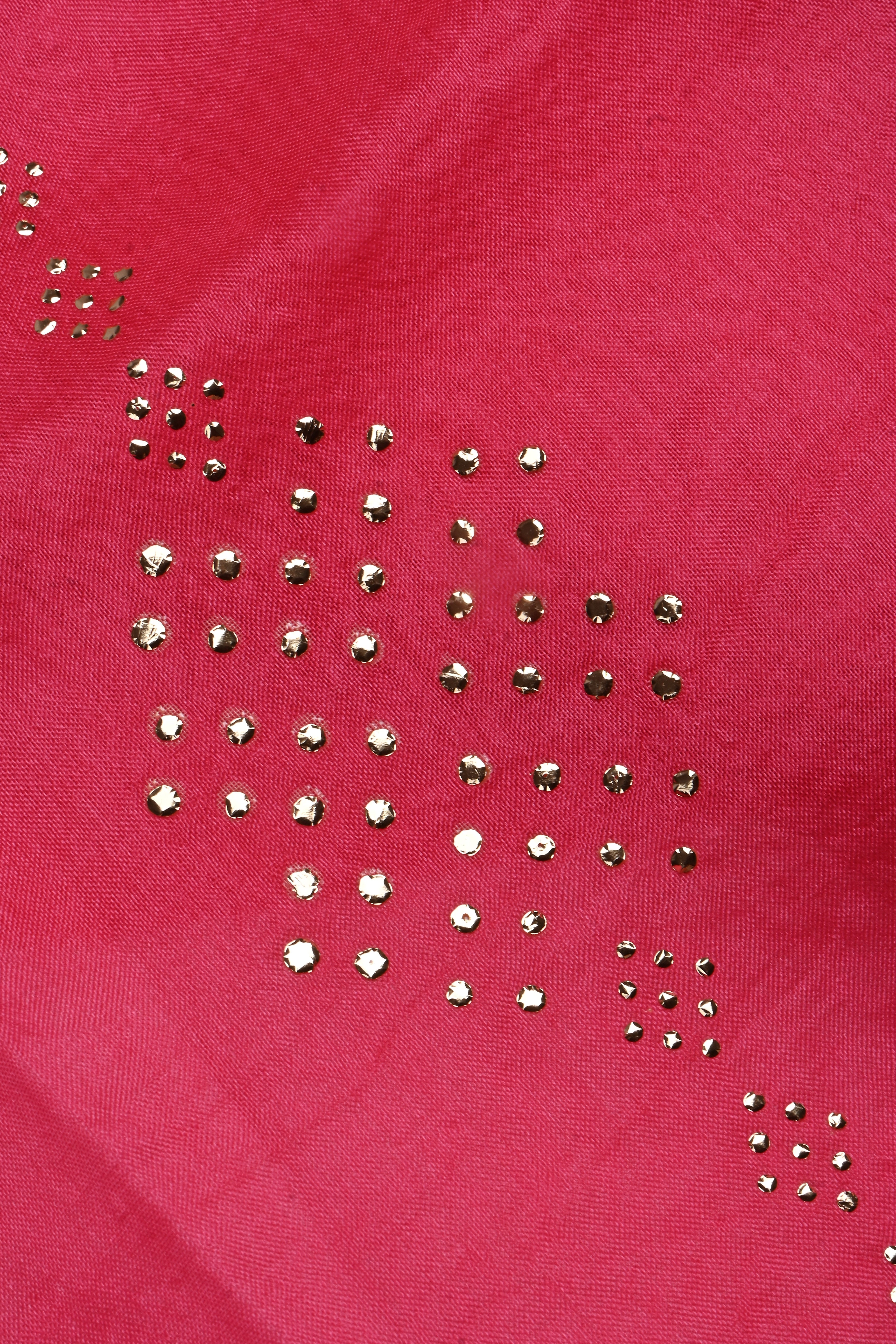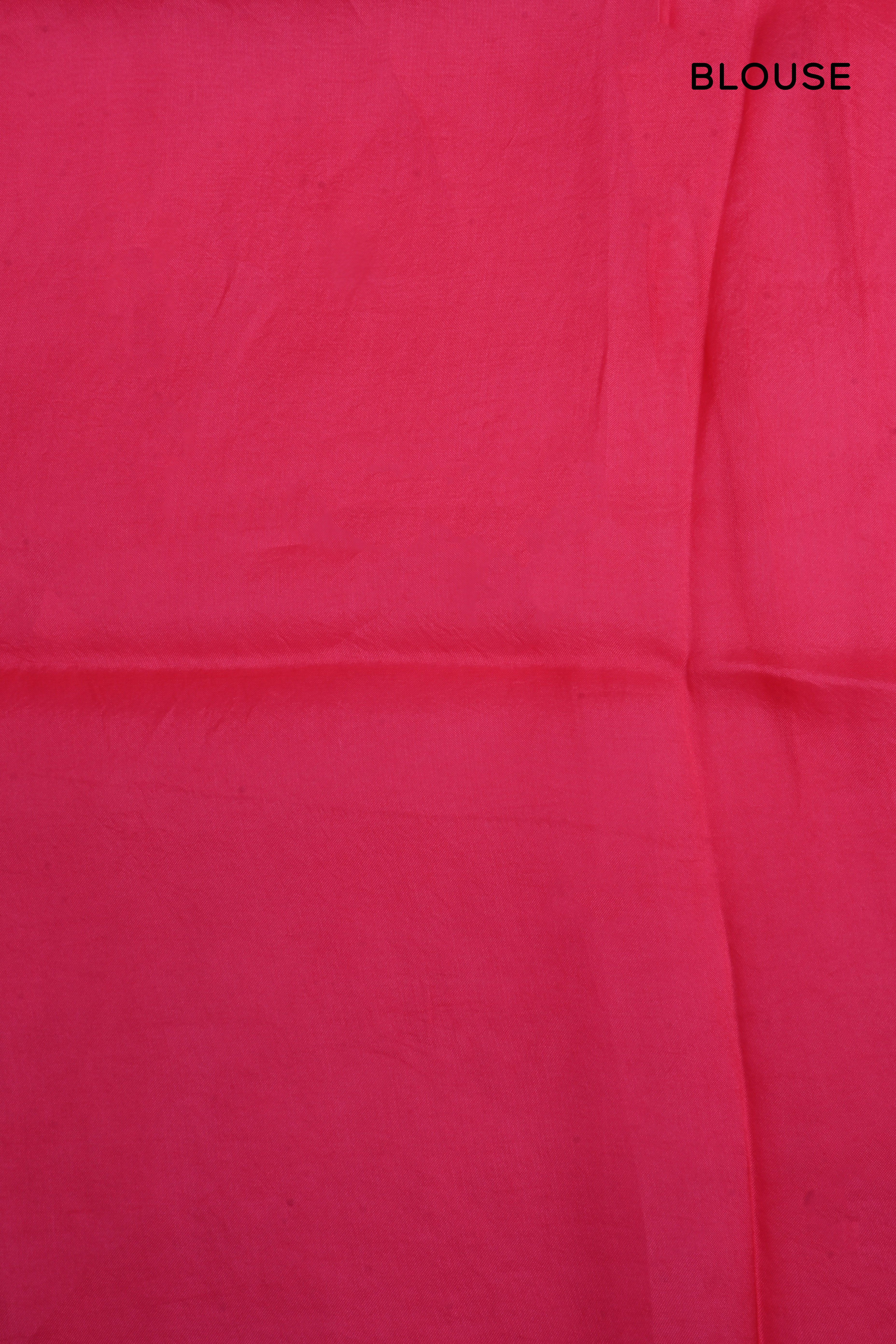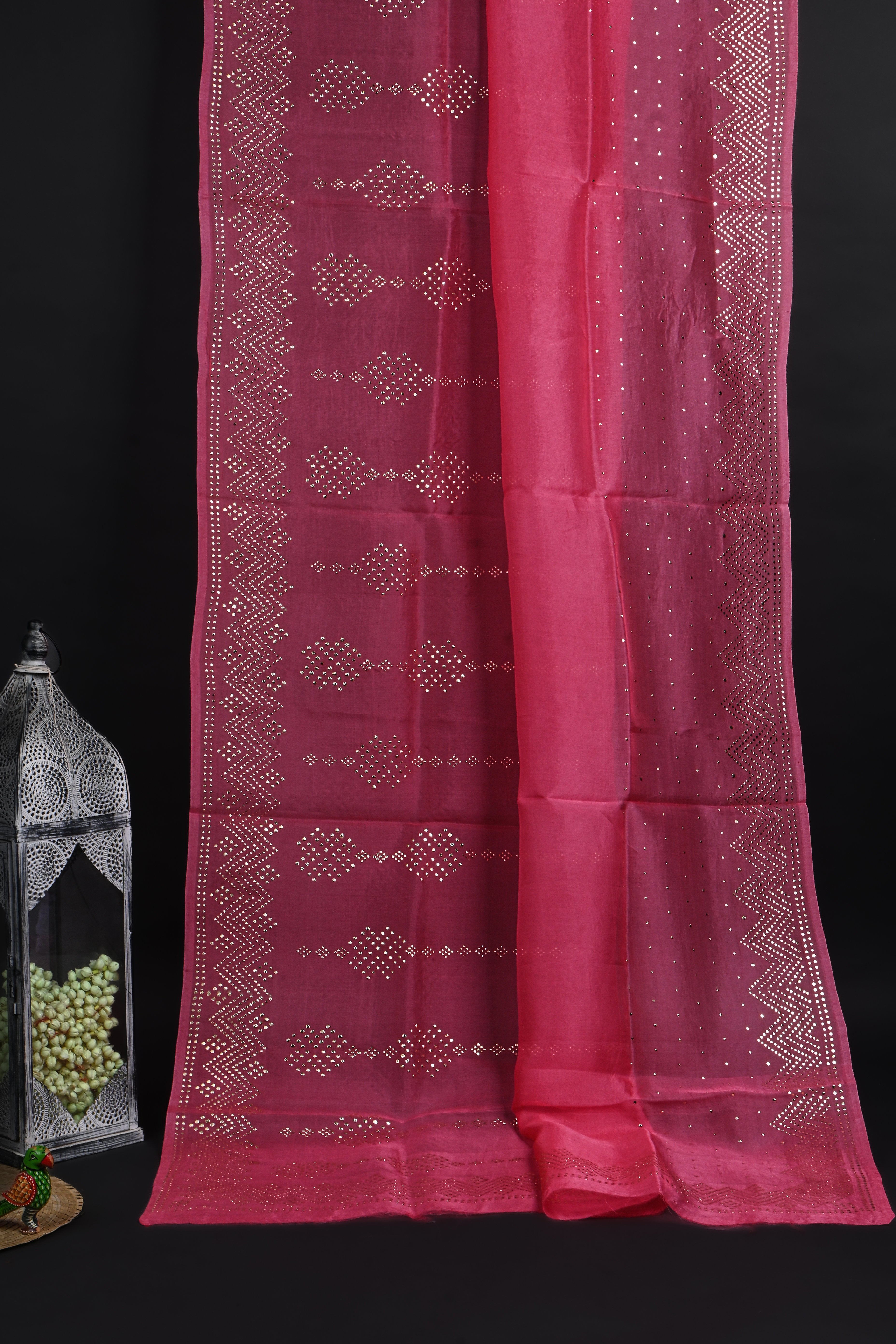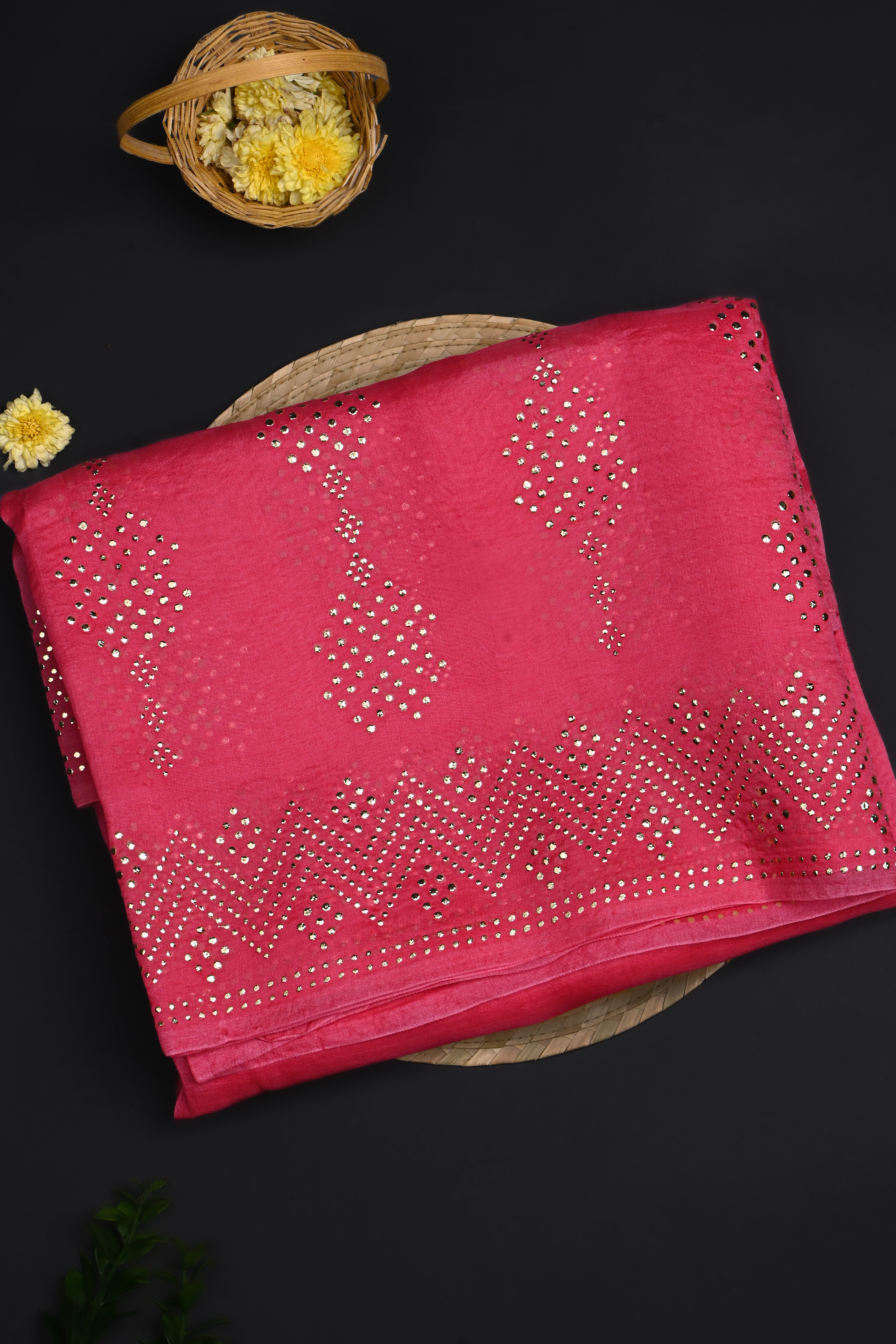 The raspberry pink foil printed organza saree with matching plain blouse in it for a modern look with ethnic touch giving it a blend of perfect look.