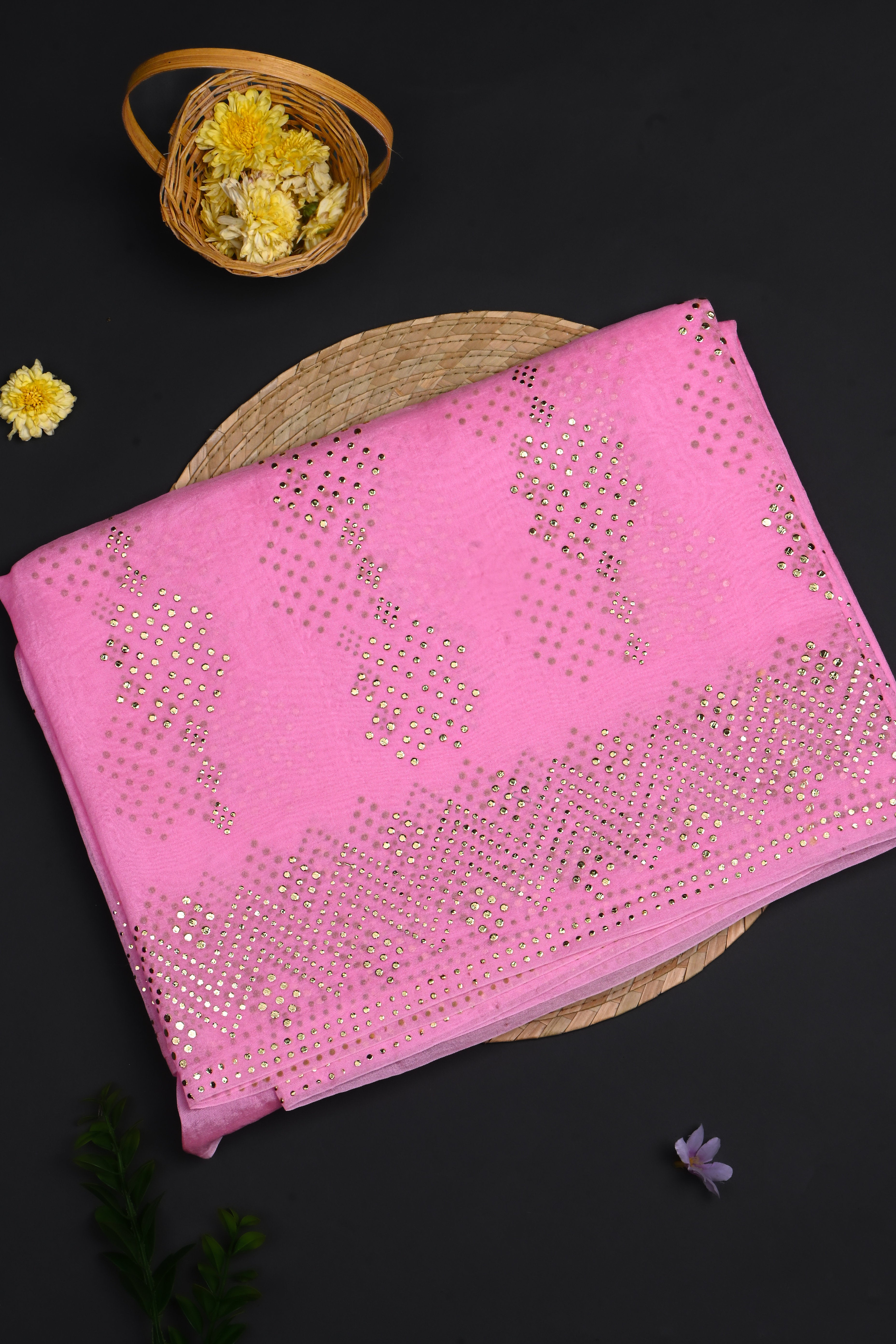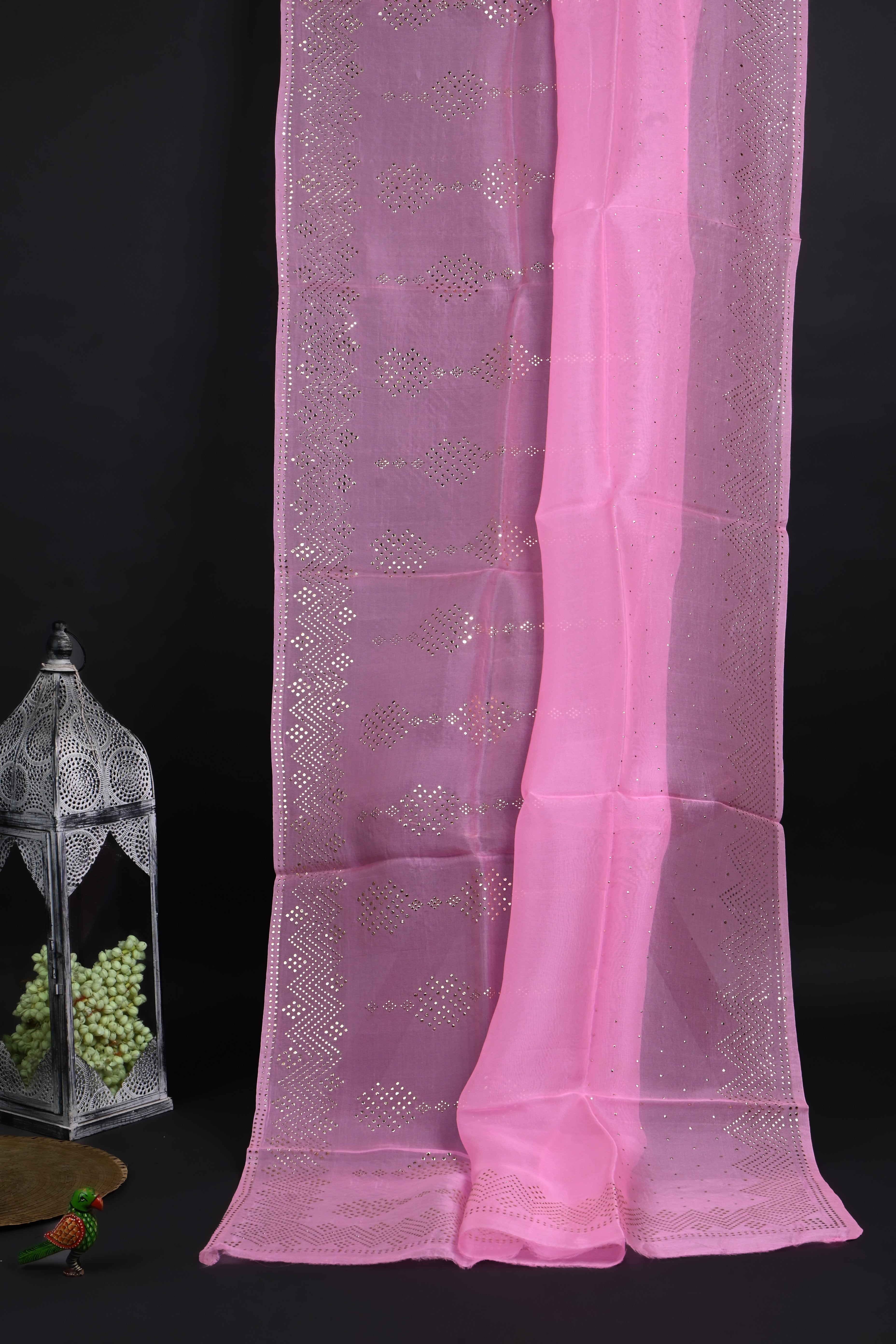 Soft Rose Pink Foil Printed Organza Saree