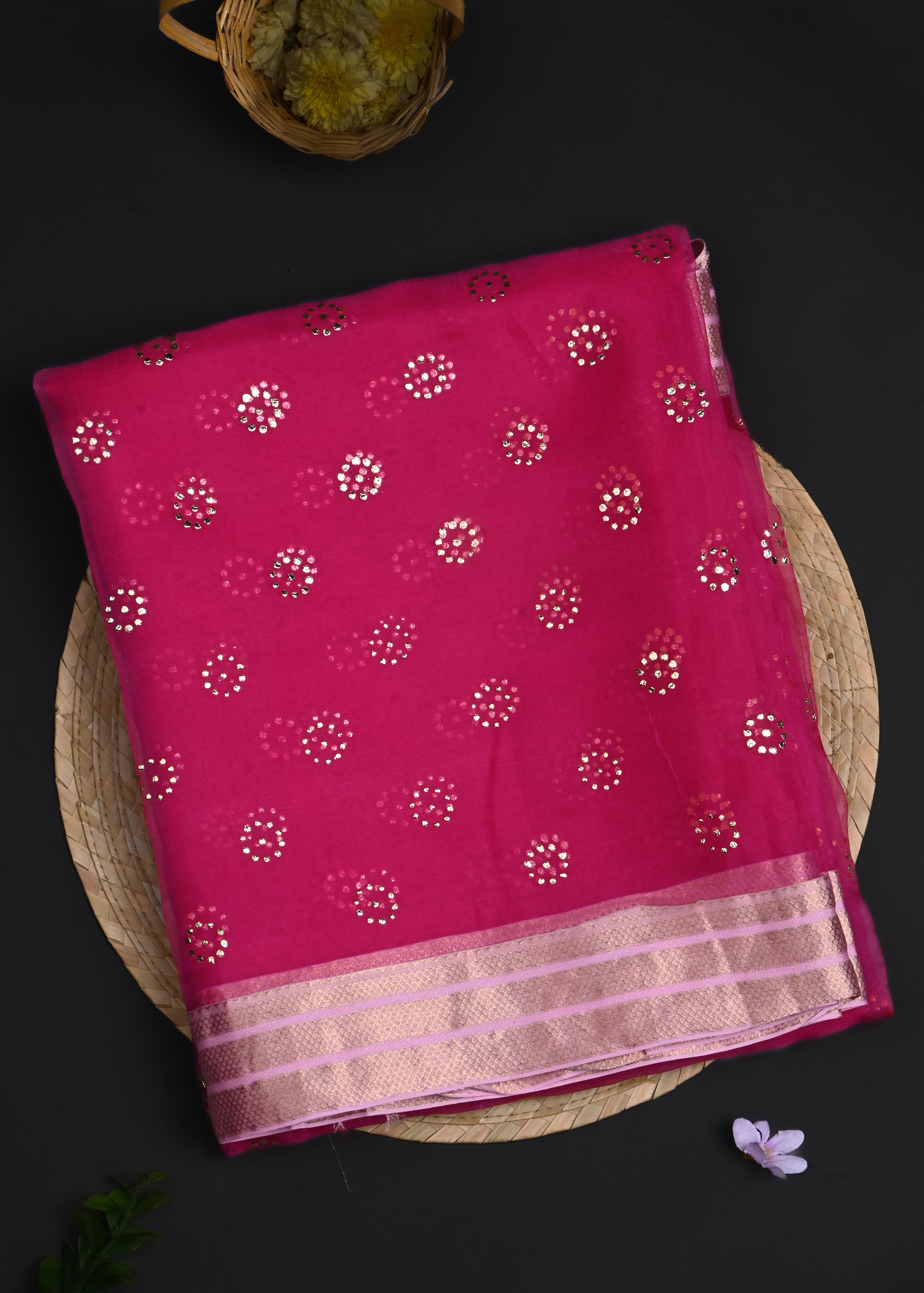 Pink Foil Printed Organza Saree