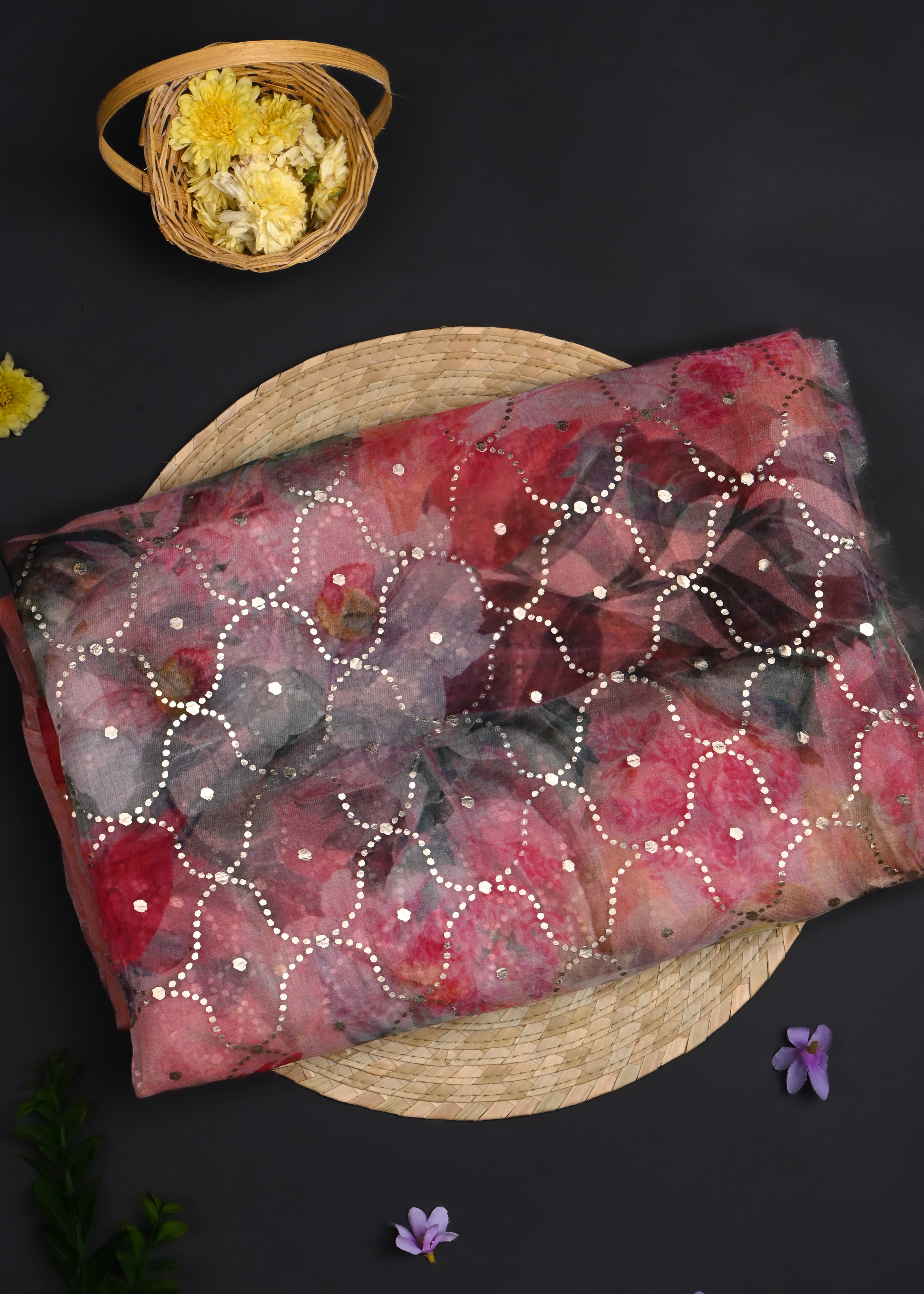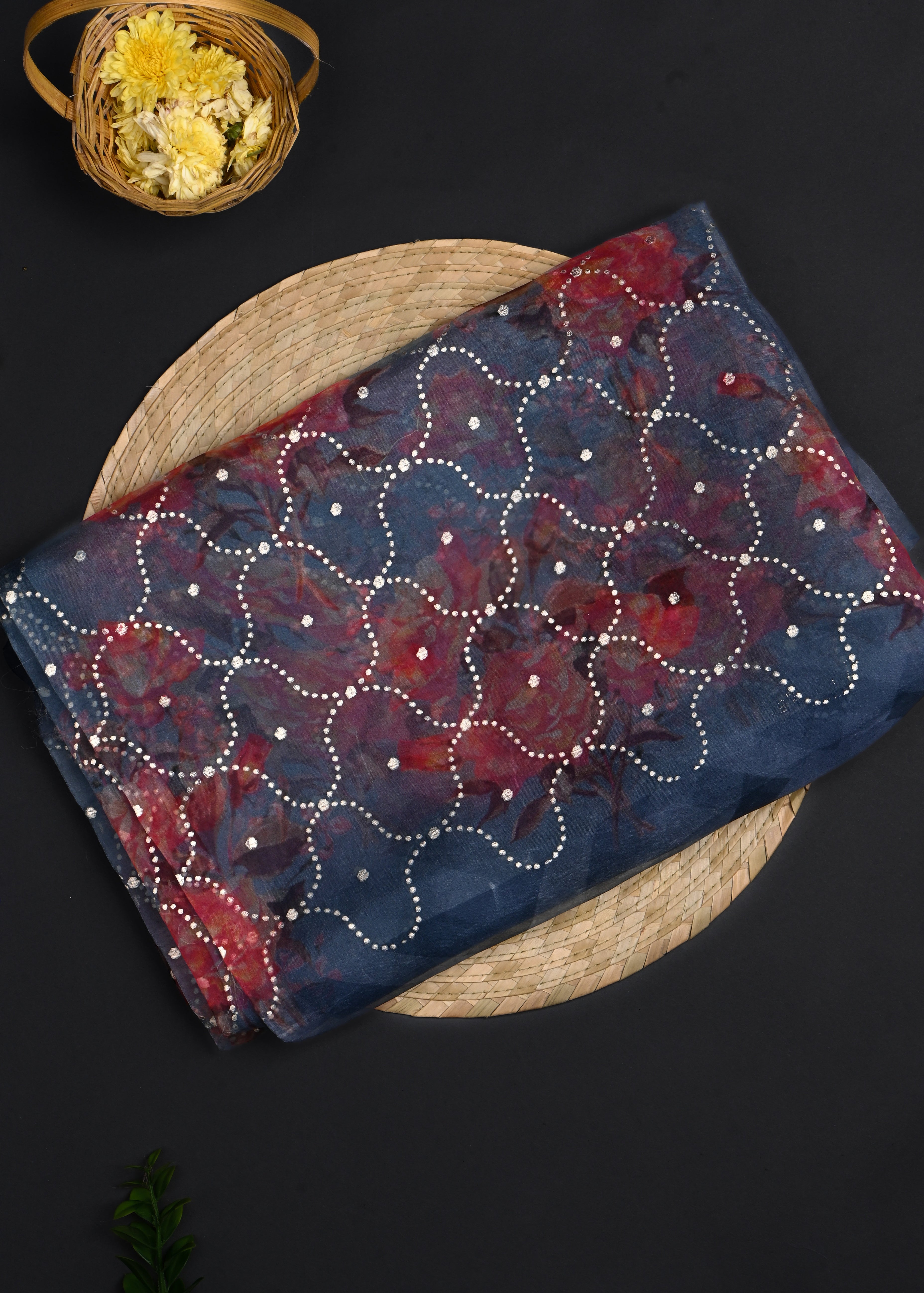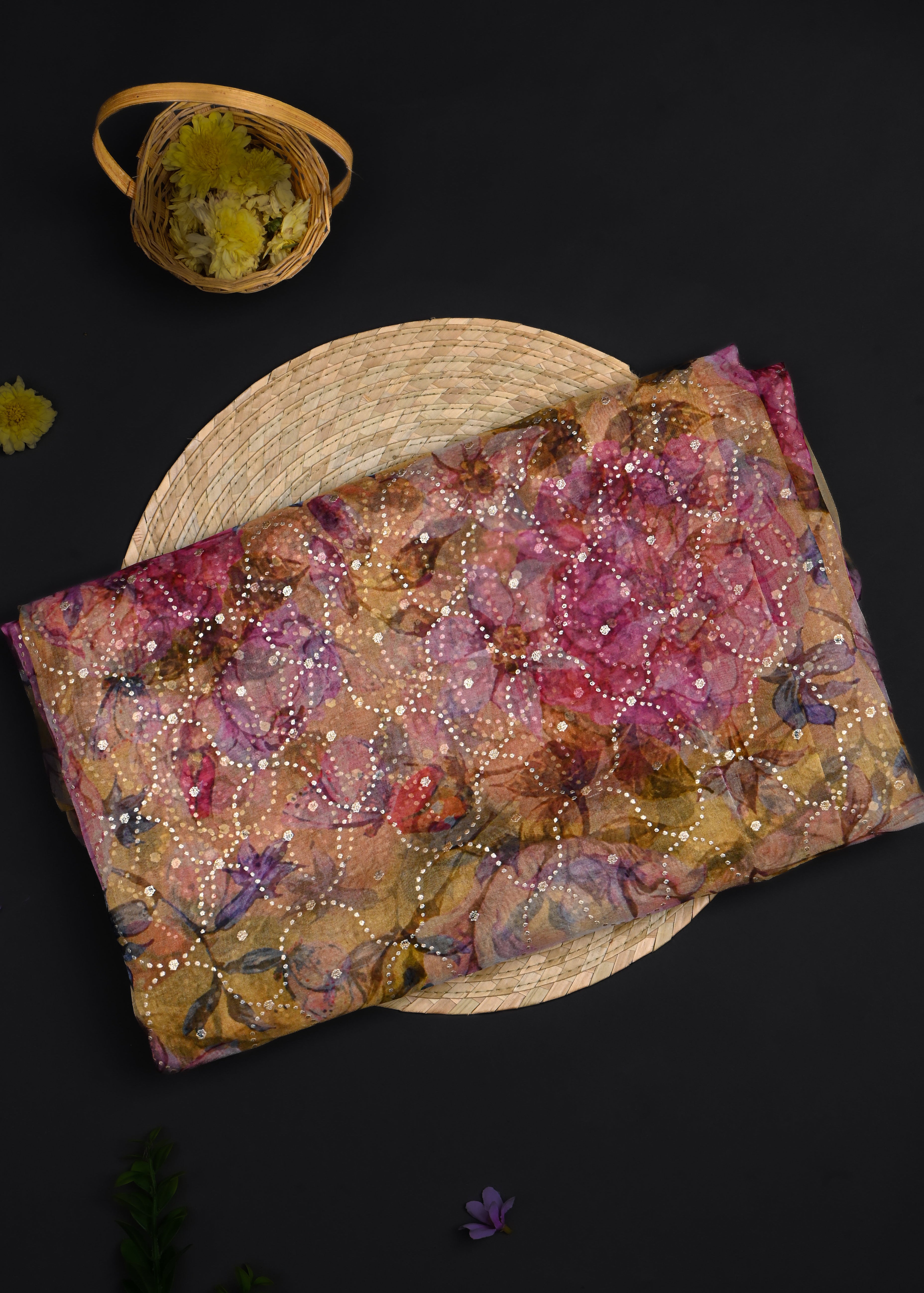 Multicolour Floral Printed Organza Saree