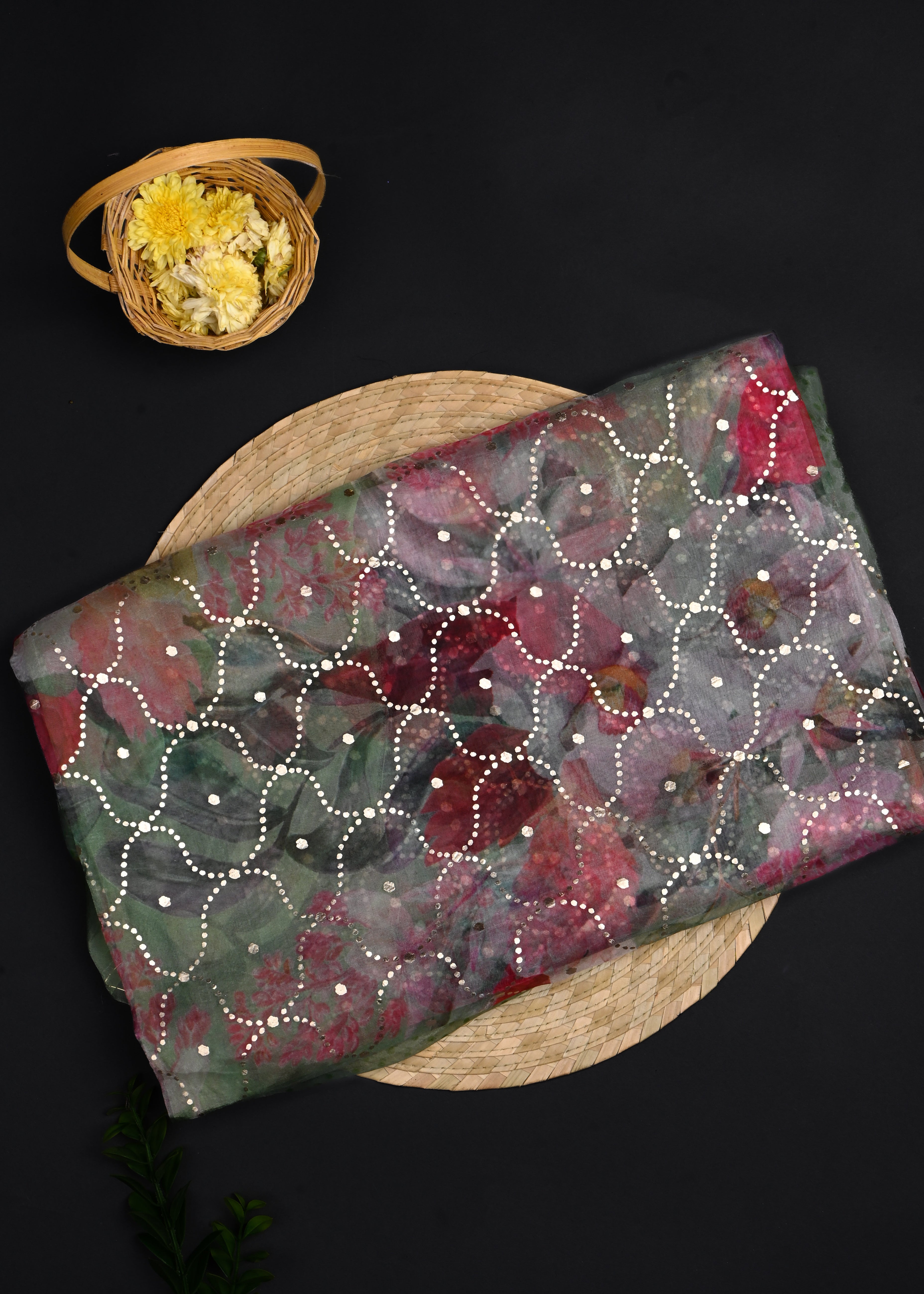 Green Sequin Embroidered Organza Saree