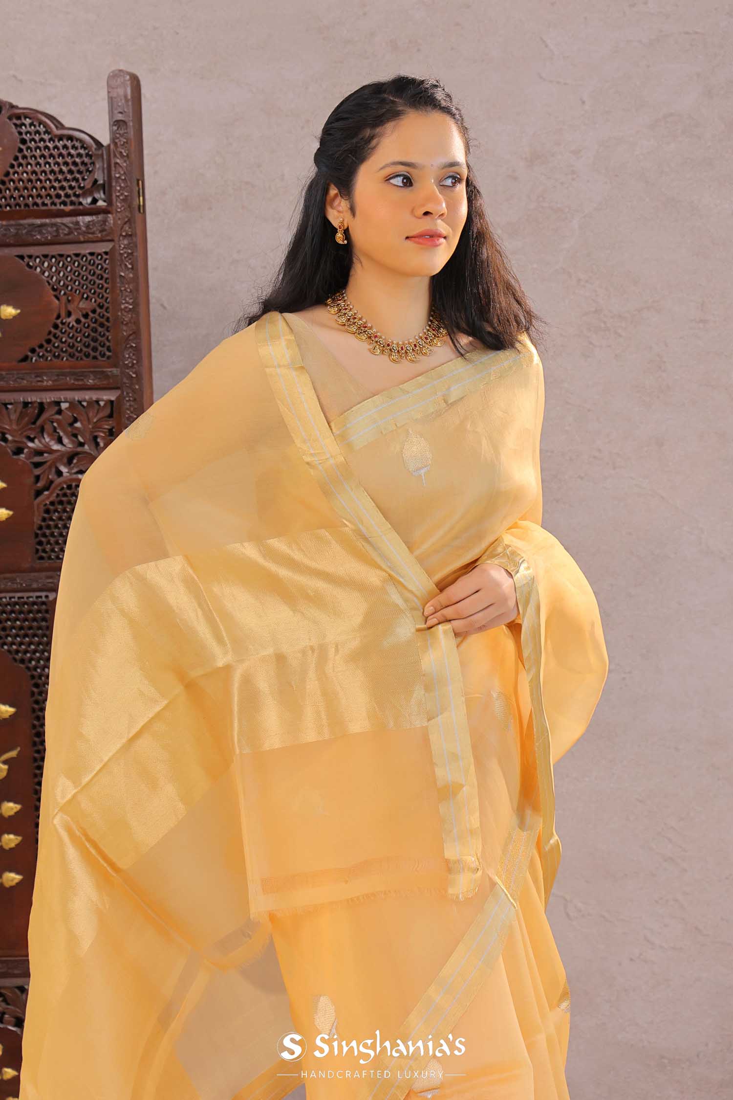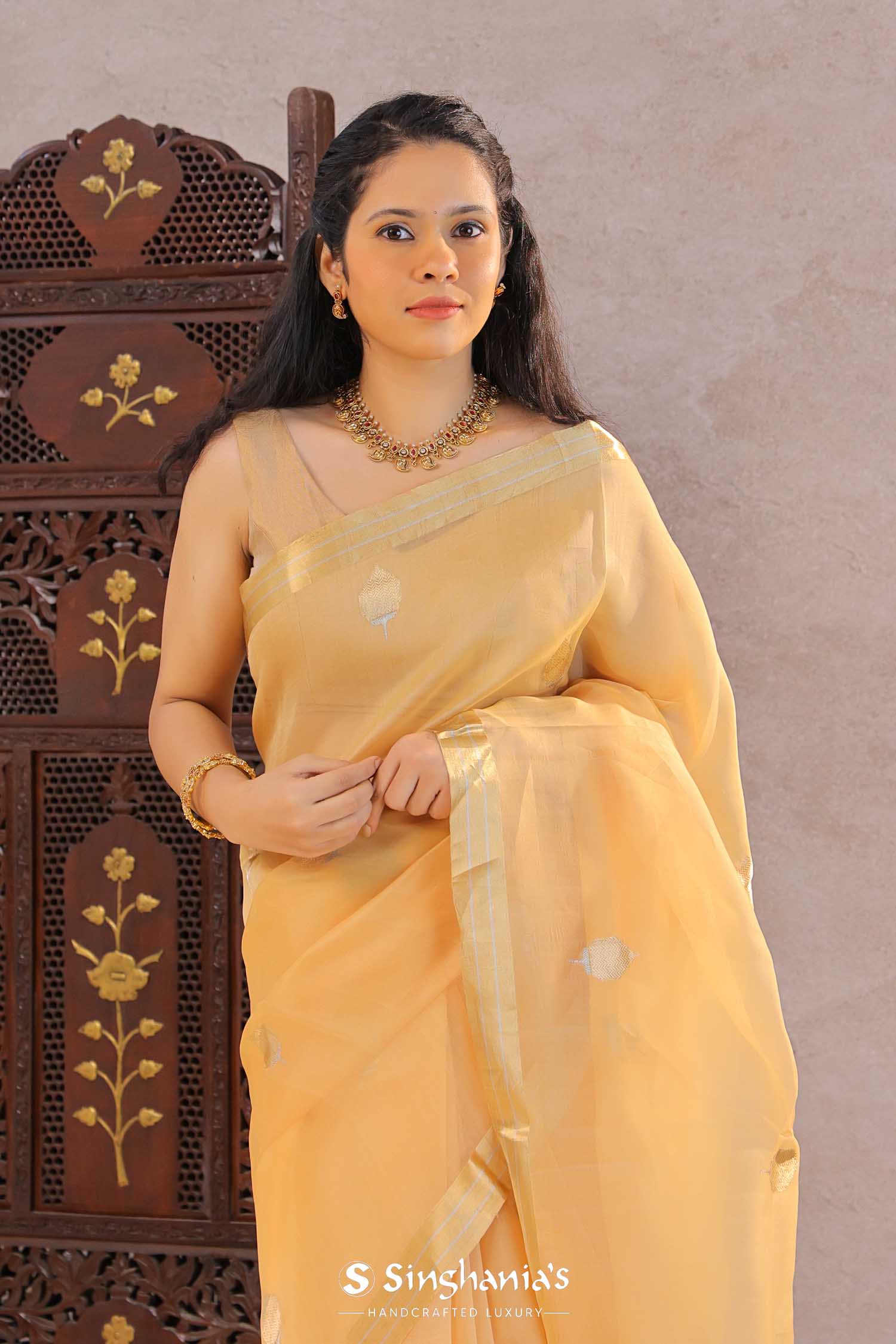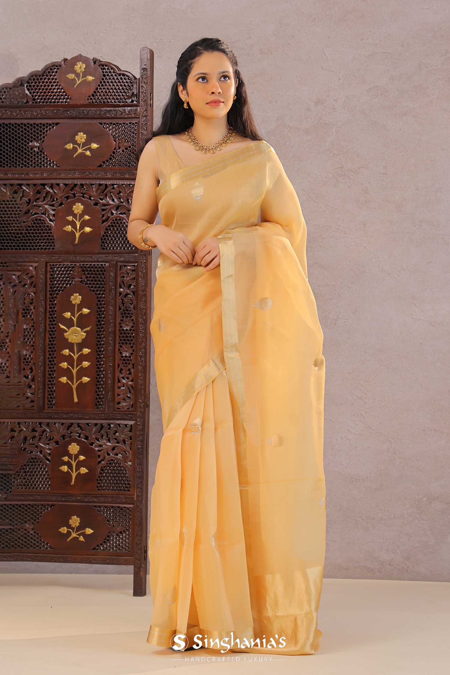 Peach Tissue Banarasi Silk Saree With Butti'S