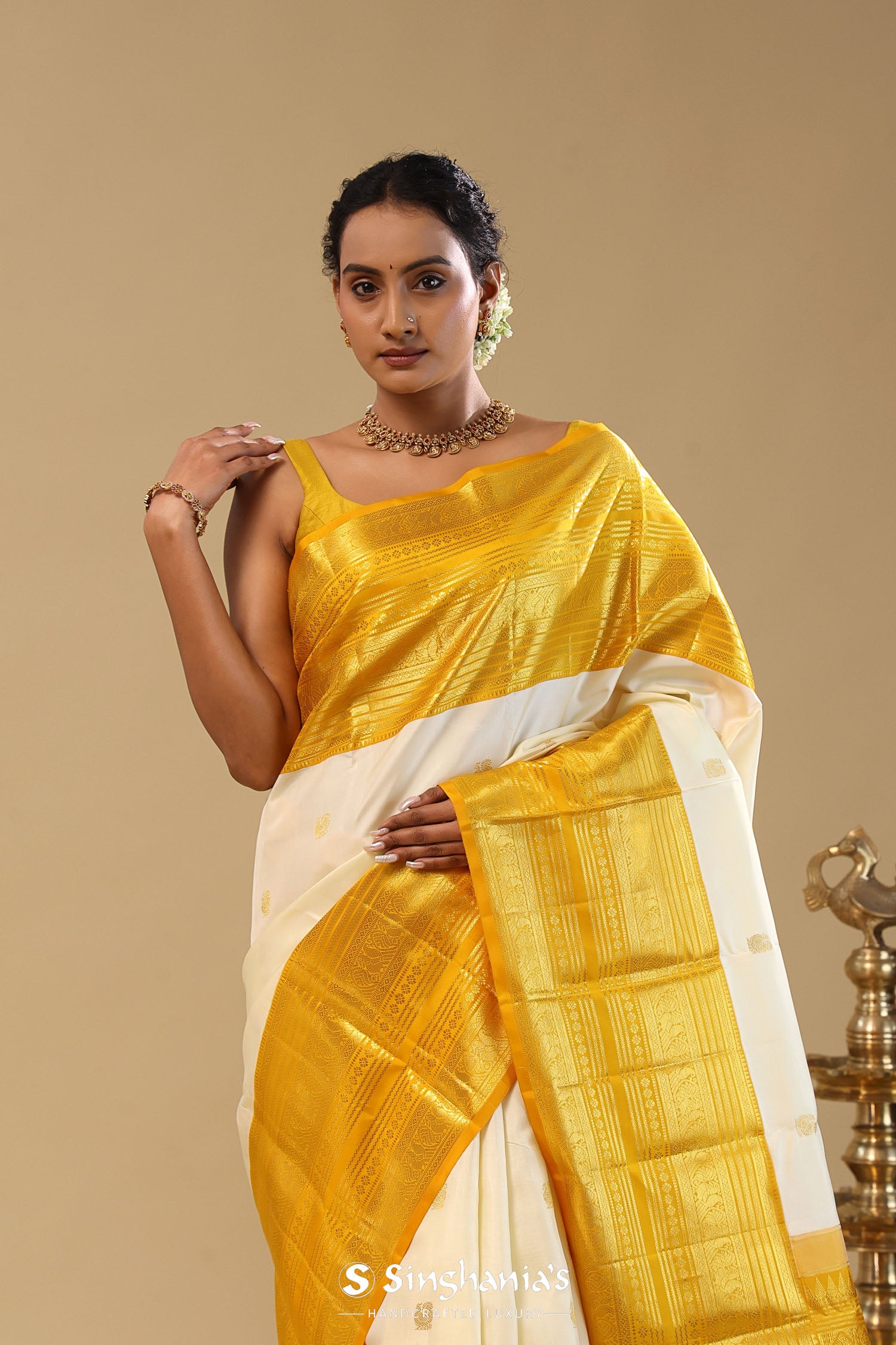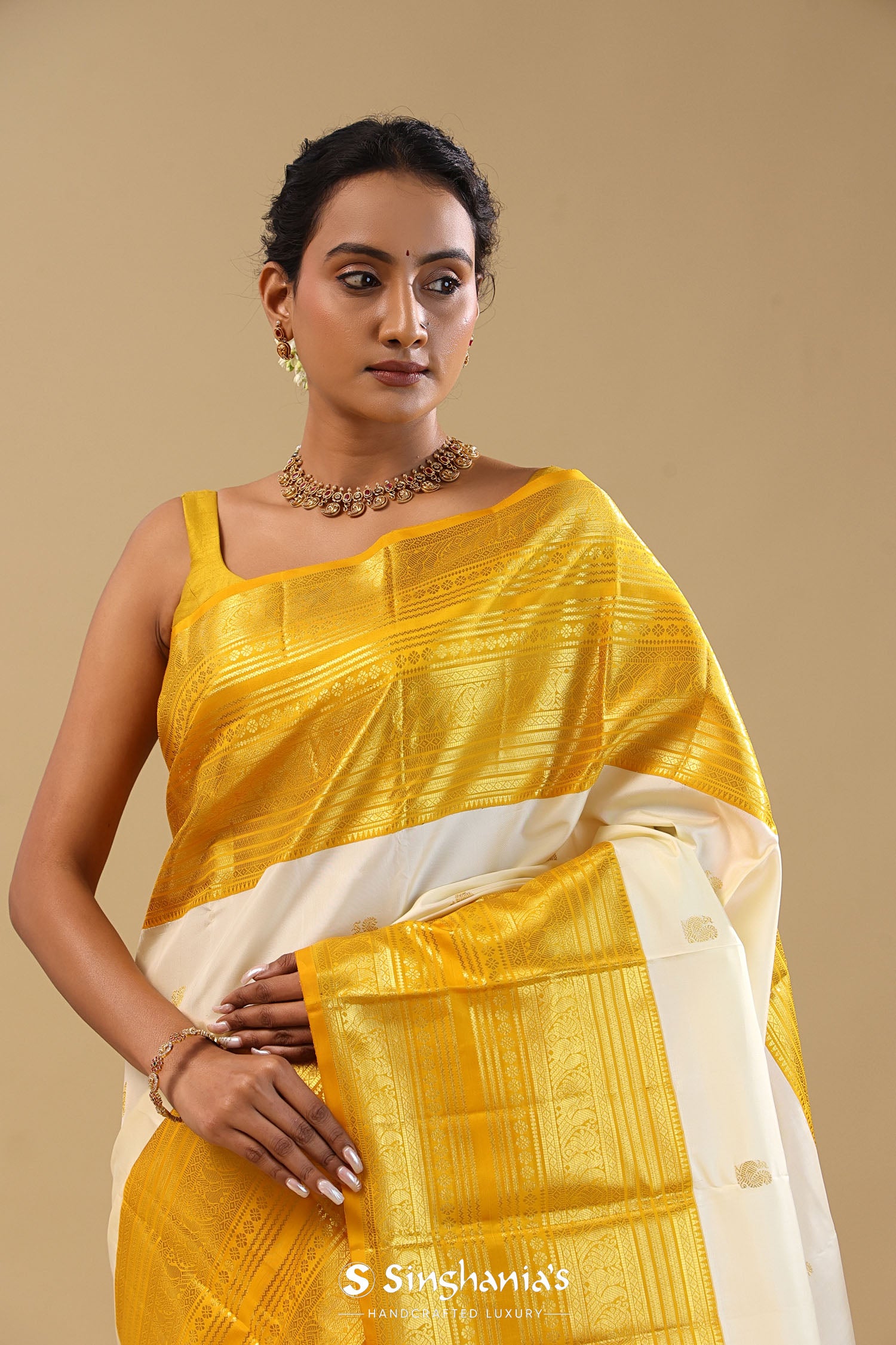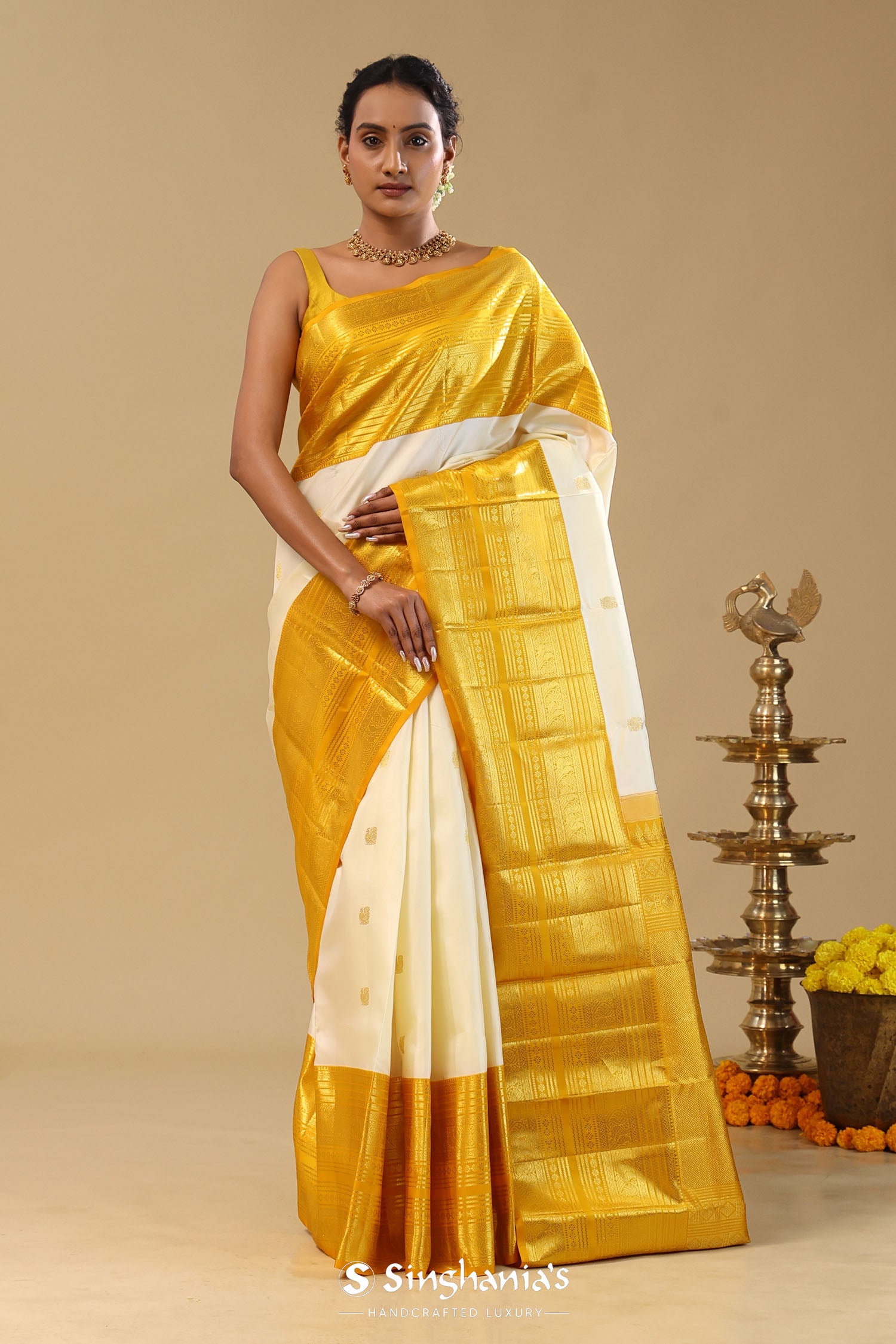 Off White Kanjivaram Silk Saree With Gold Zari Border