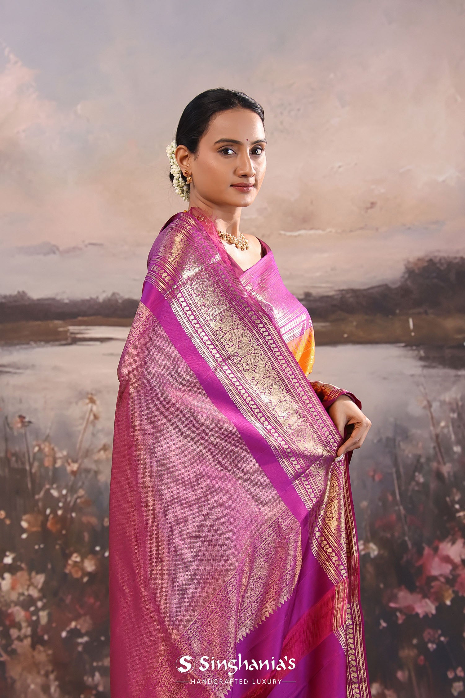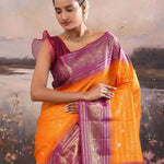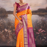 Pumpkin Orange Kanjivaram Silk Saree With Contrast Border