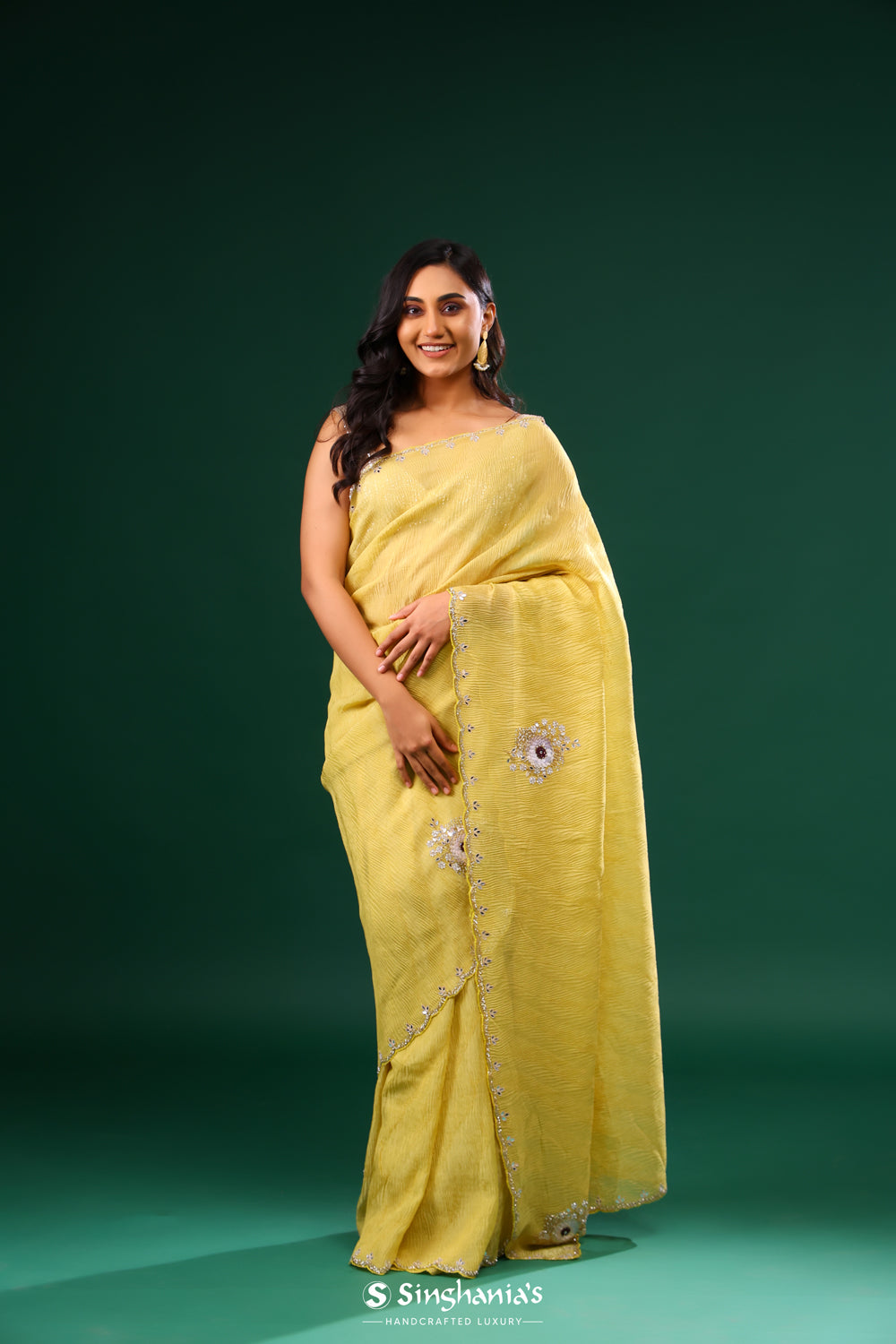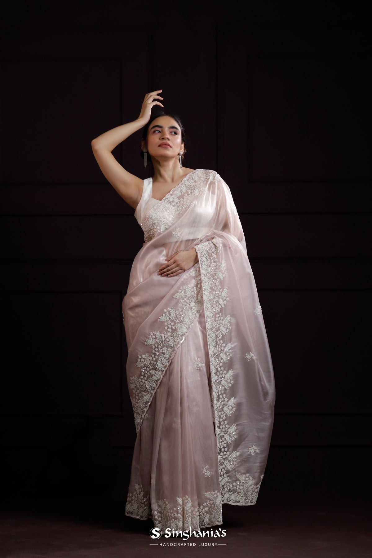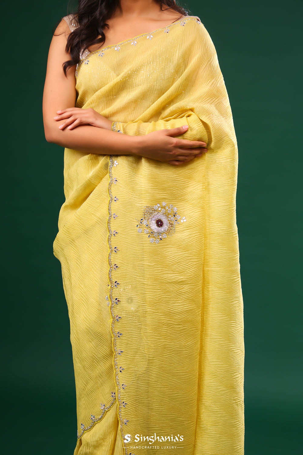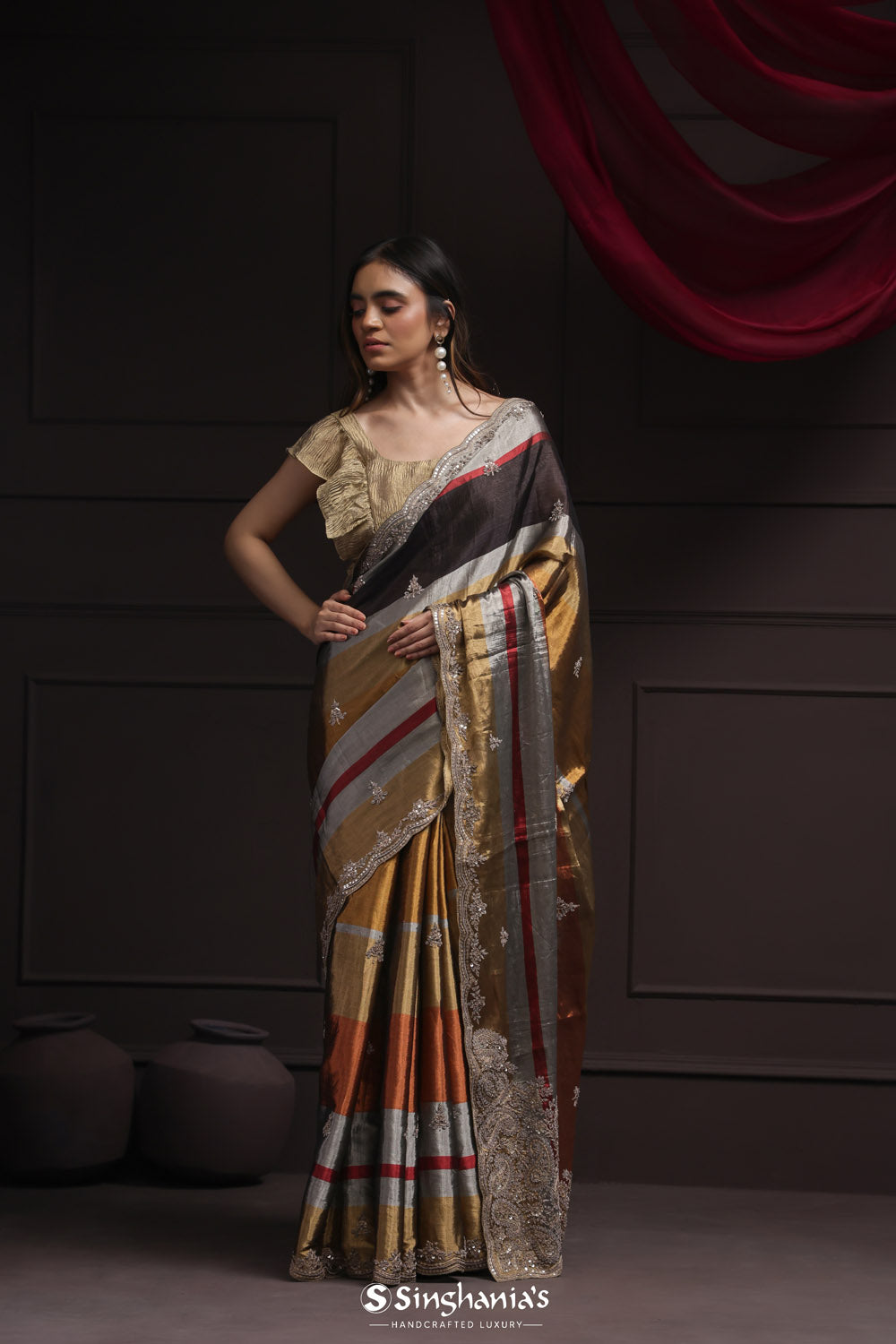 Texture meets artistry: Singhania's heralds the triumphant return of tissue embroidery sarees. Feel the gentle crinkle beneath, where every fold reveals a new facet of beauty. From border to pallu, these sarees aren't just worn; they're experienced.