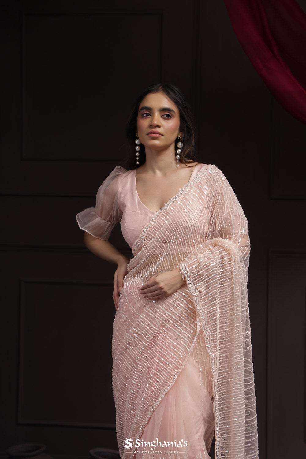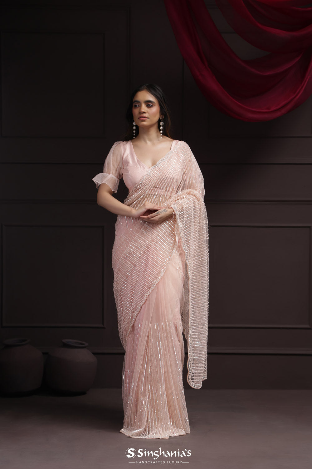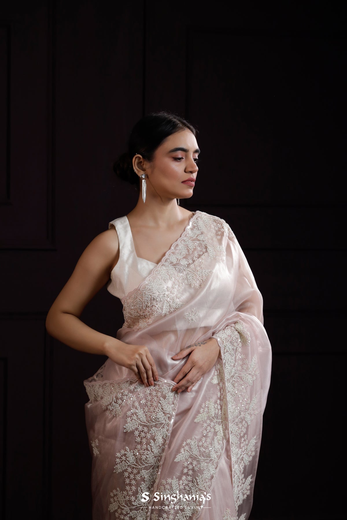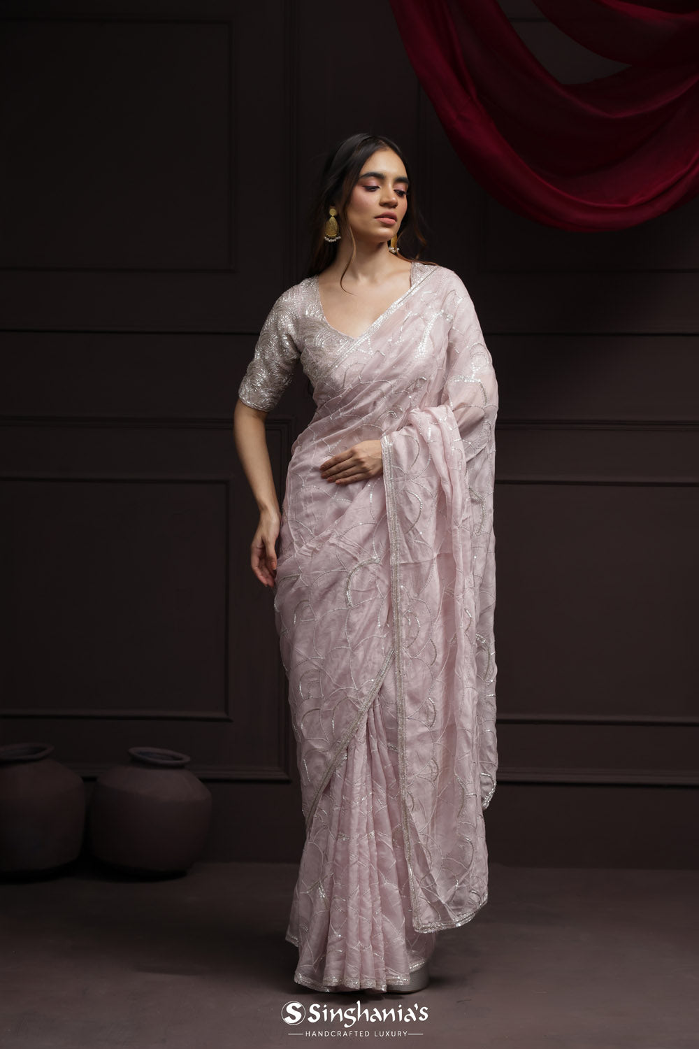 Texture meets artistry: Singhania's heralds the triumphant return of tissue embroidery sarees. Feel the gentle crinkle beneath, where every fold reveals a new facet of beauty. From border to pallu, these sarees aren't just worn; they're experienced.