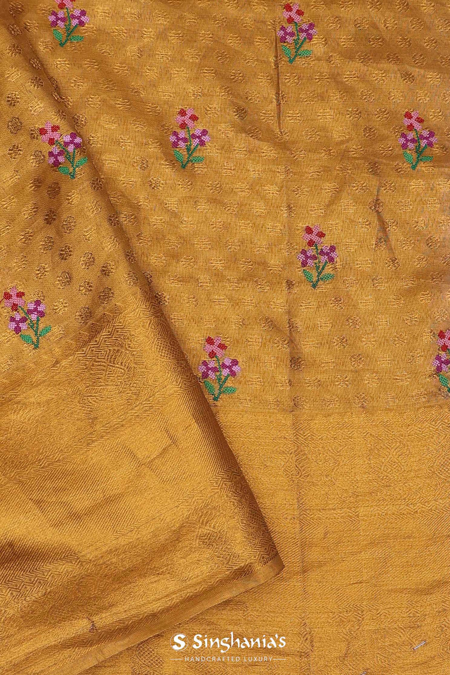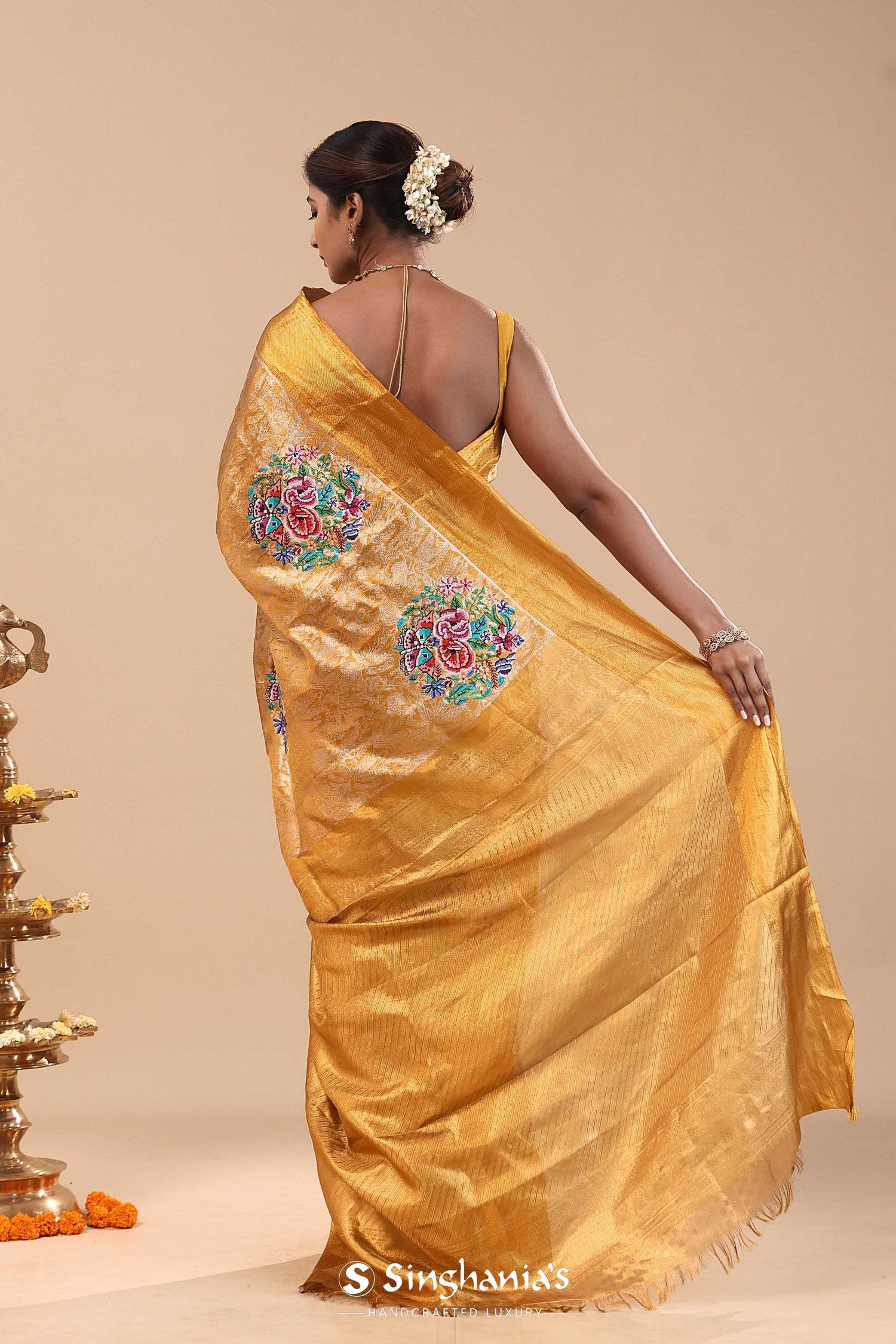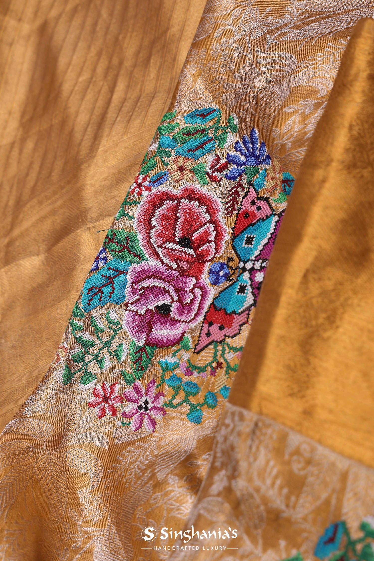 Golden Tissue Kanjivaram Saree With Petit Point Embroidery