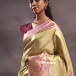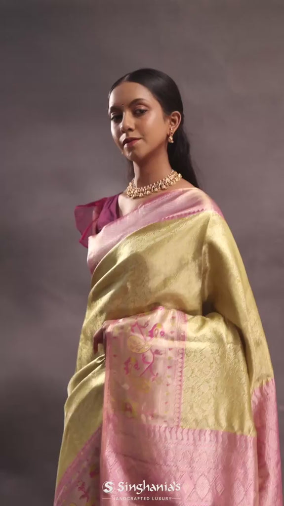 Golden Yellow Kanjivaram Tissue Silk Saree With Baby Pink Border