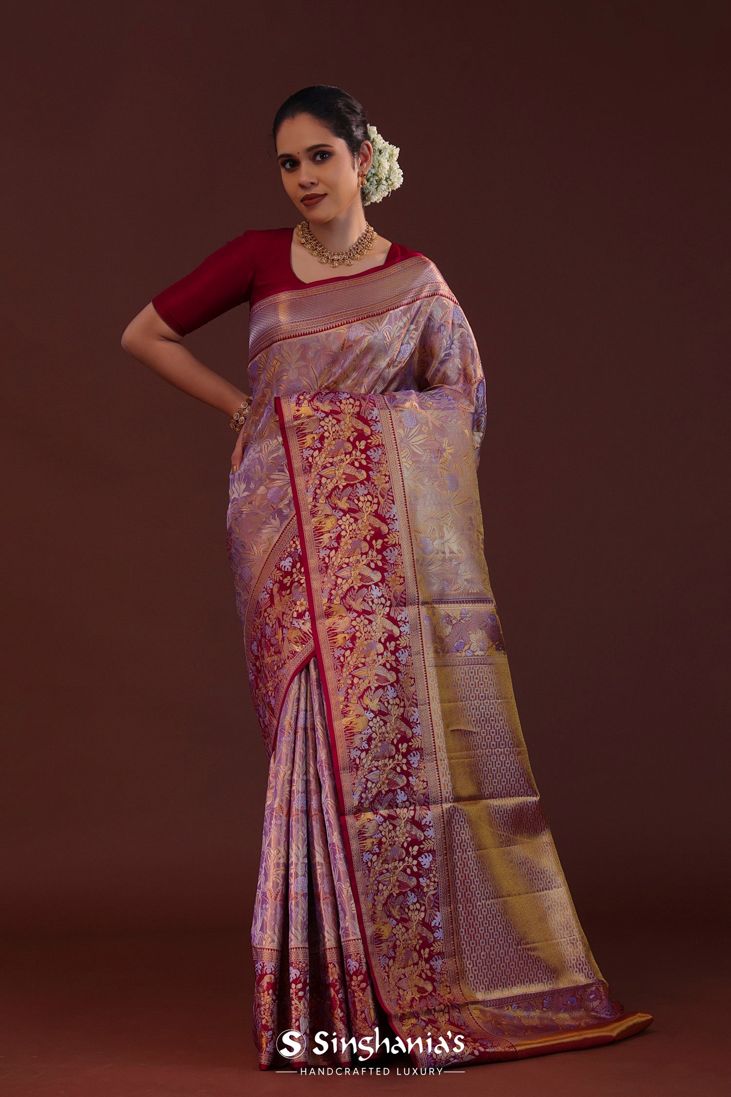 Lilac Kanjivaram Tissue Saree With Designer Meenakari Border