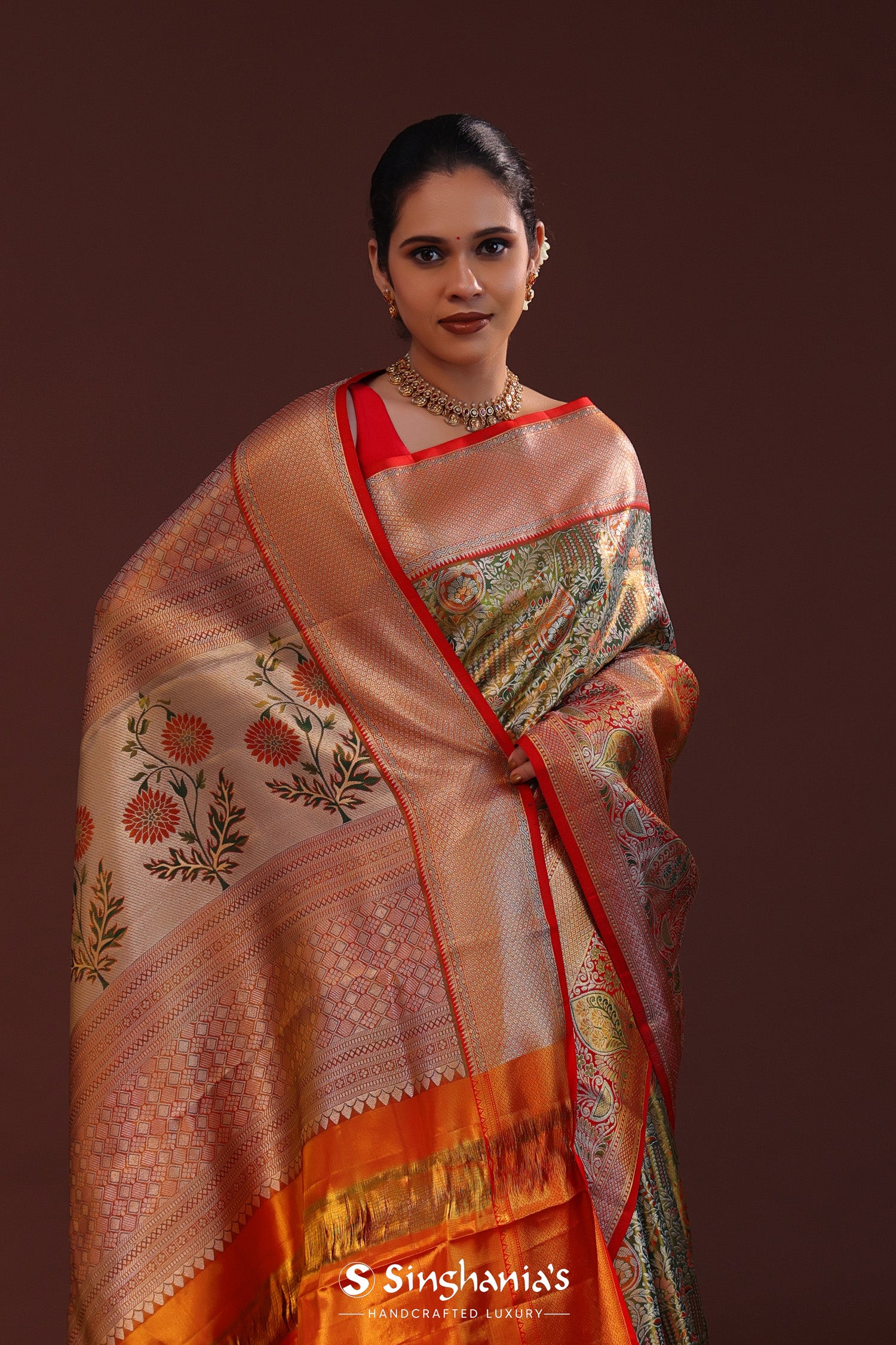 Mahendi Green Kanjivaram Tissue Saree With Contrast Border
