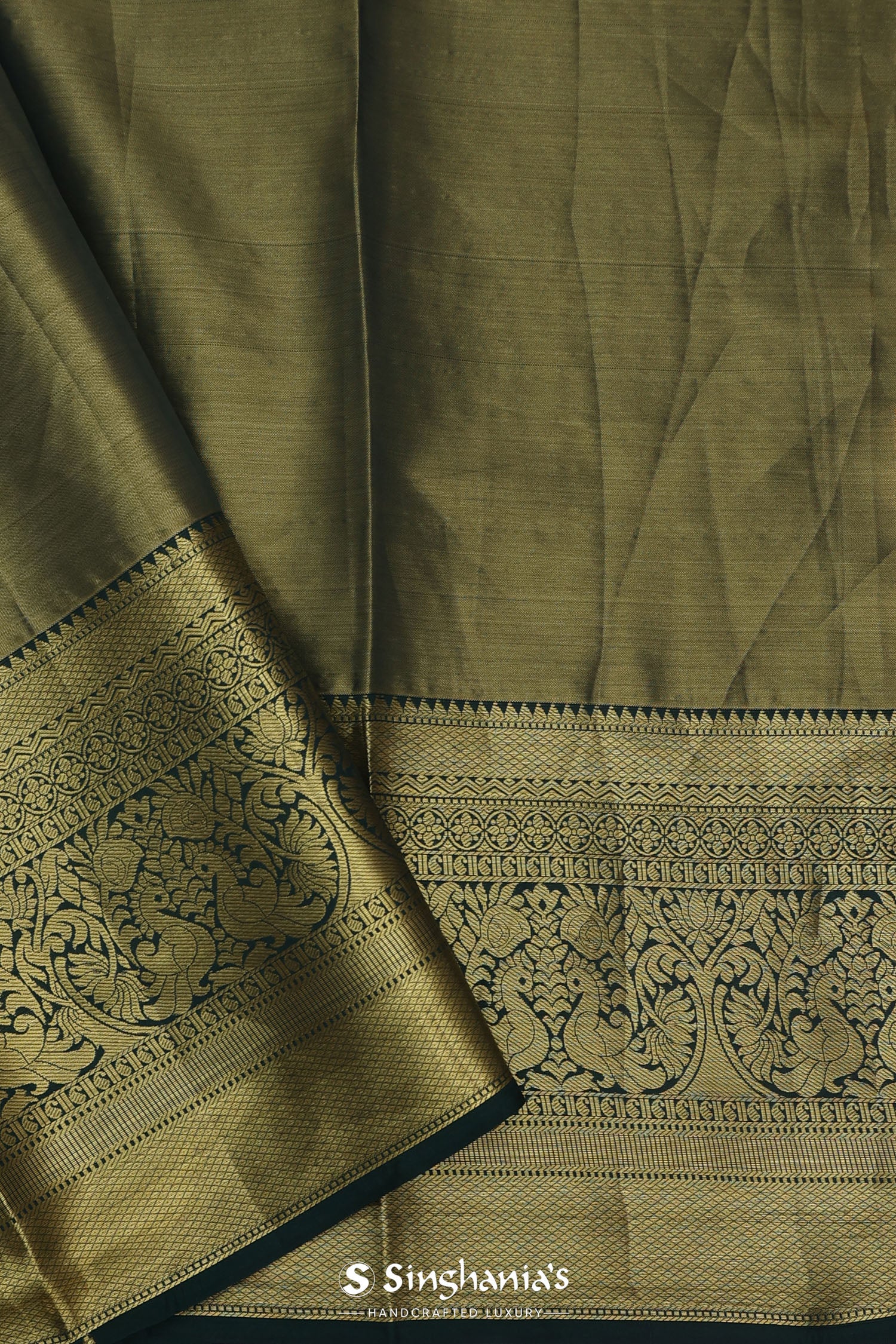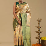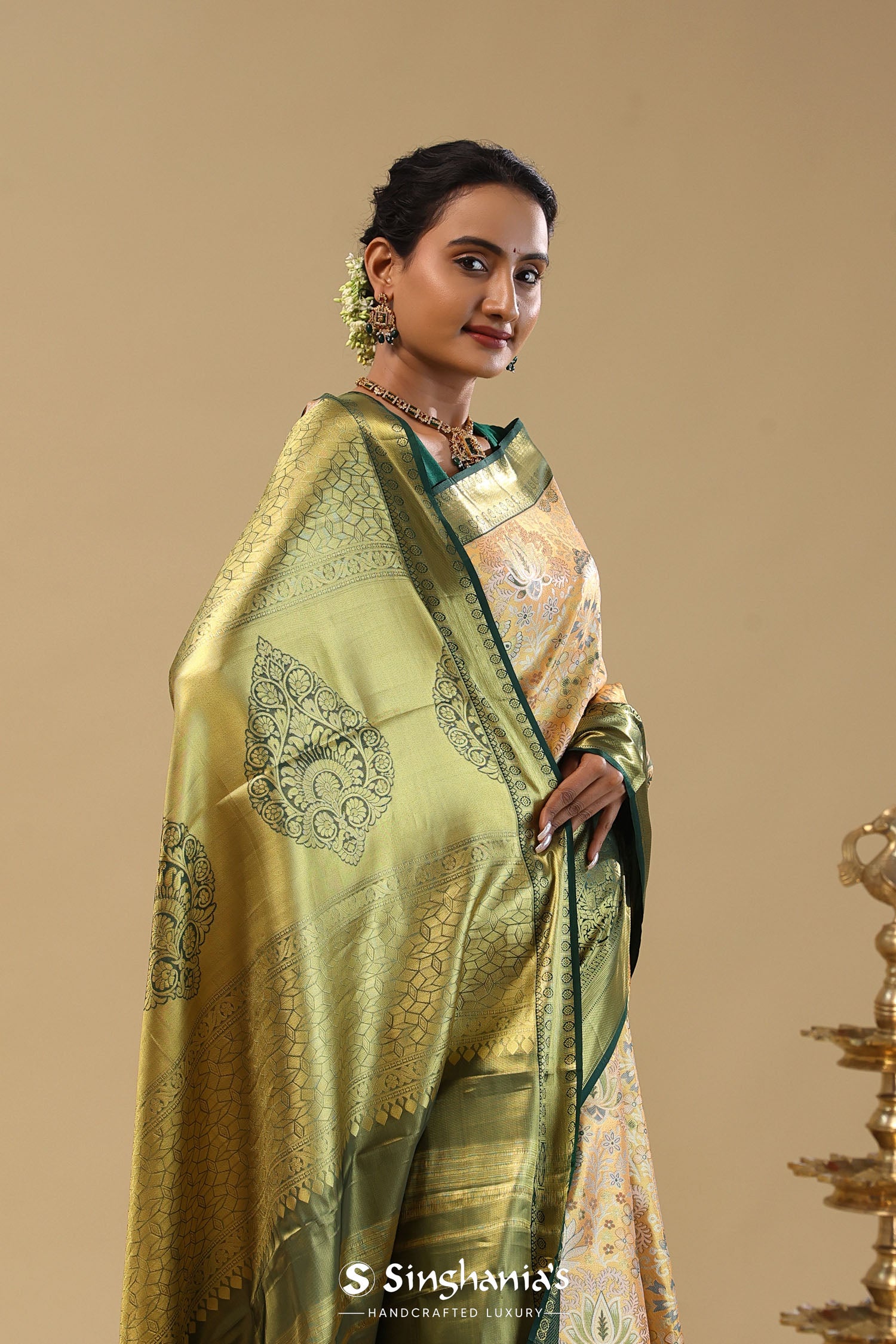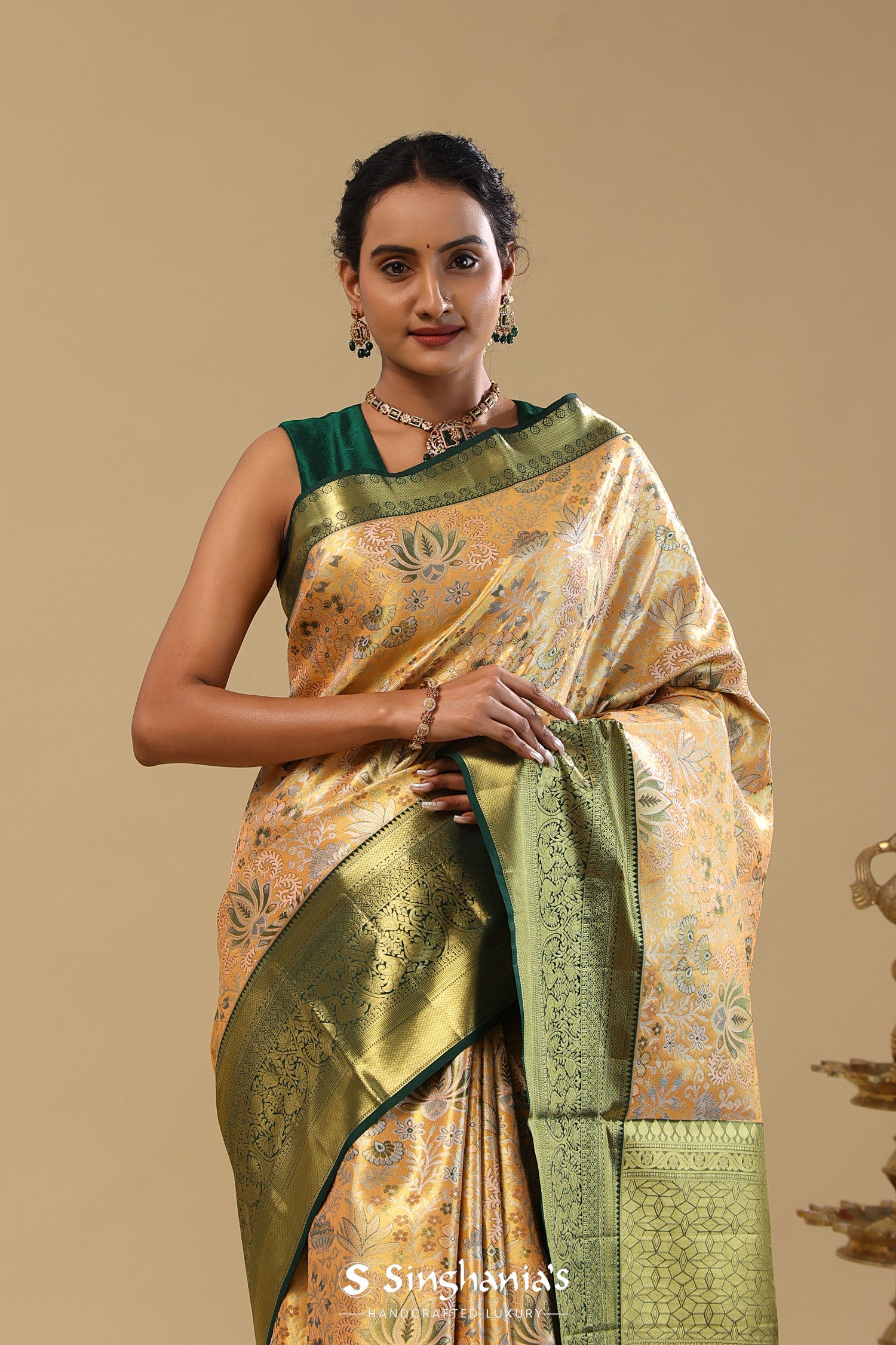 Antique Brass Orange Kanjivaram Tissue Saree With Green Border