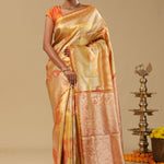Golden Kanjivaram Tissue Designer Saree With Open Border