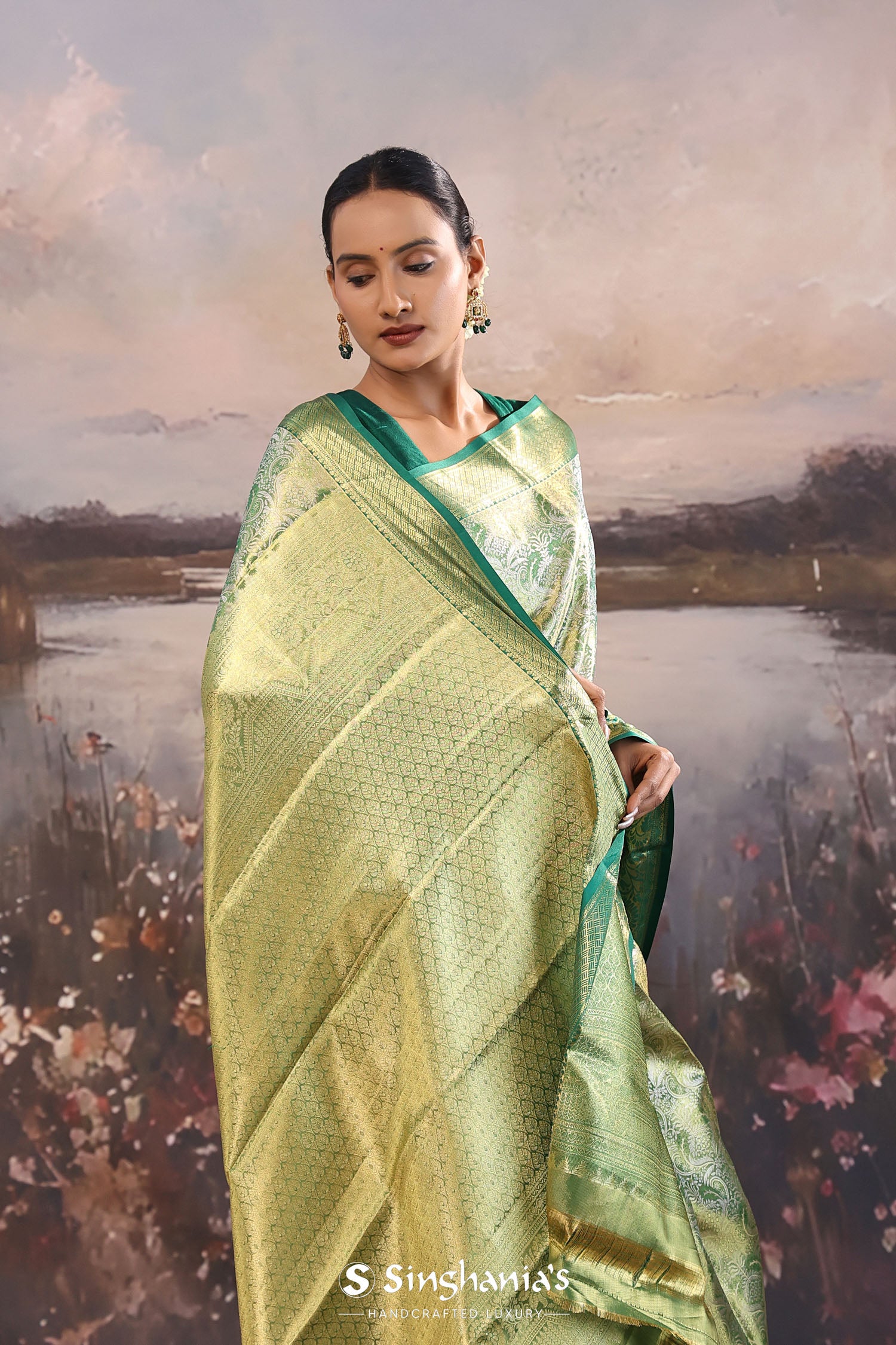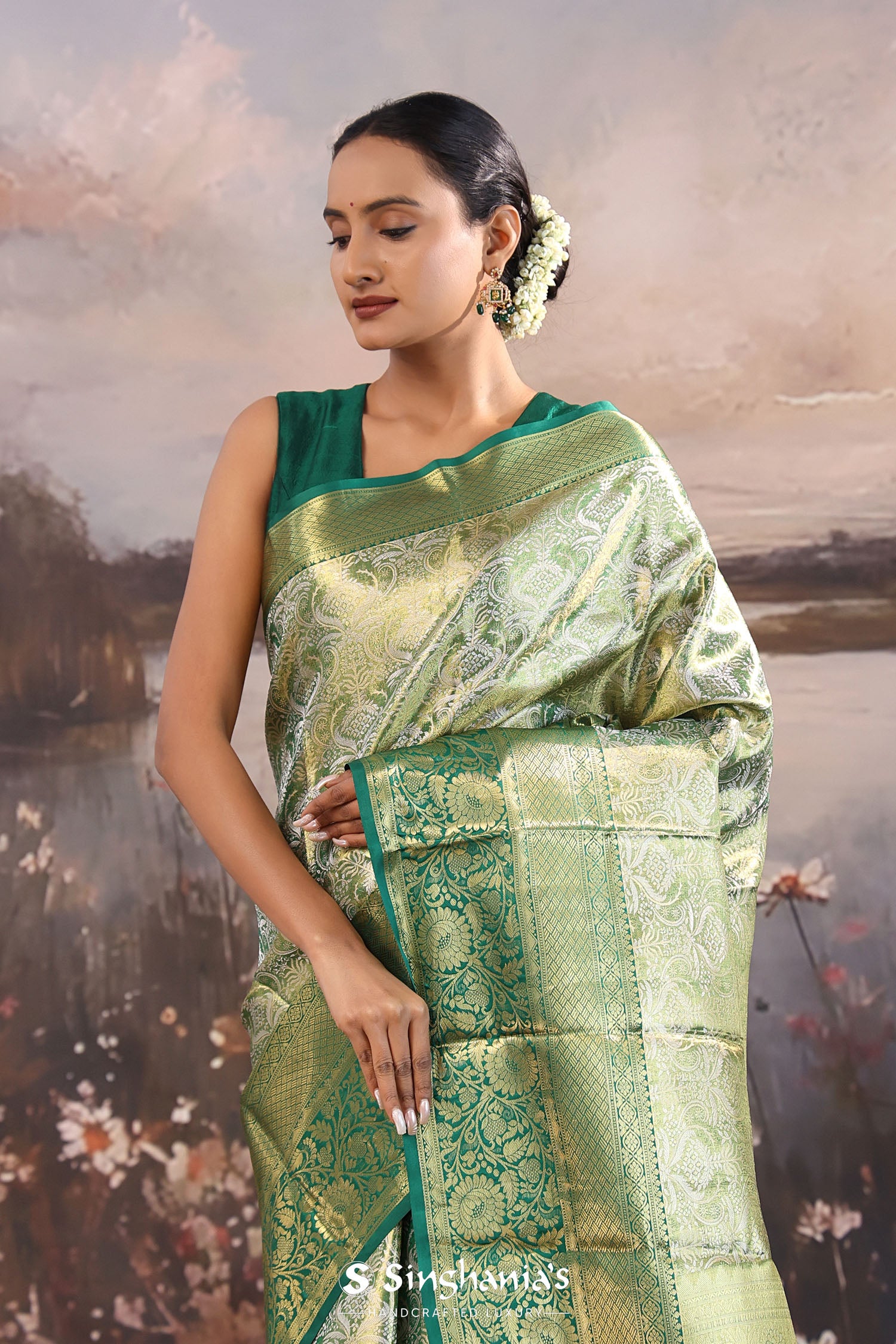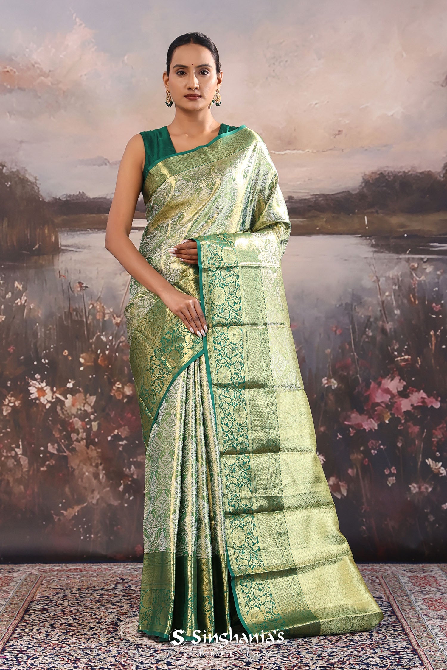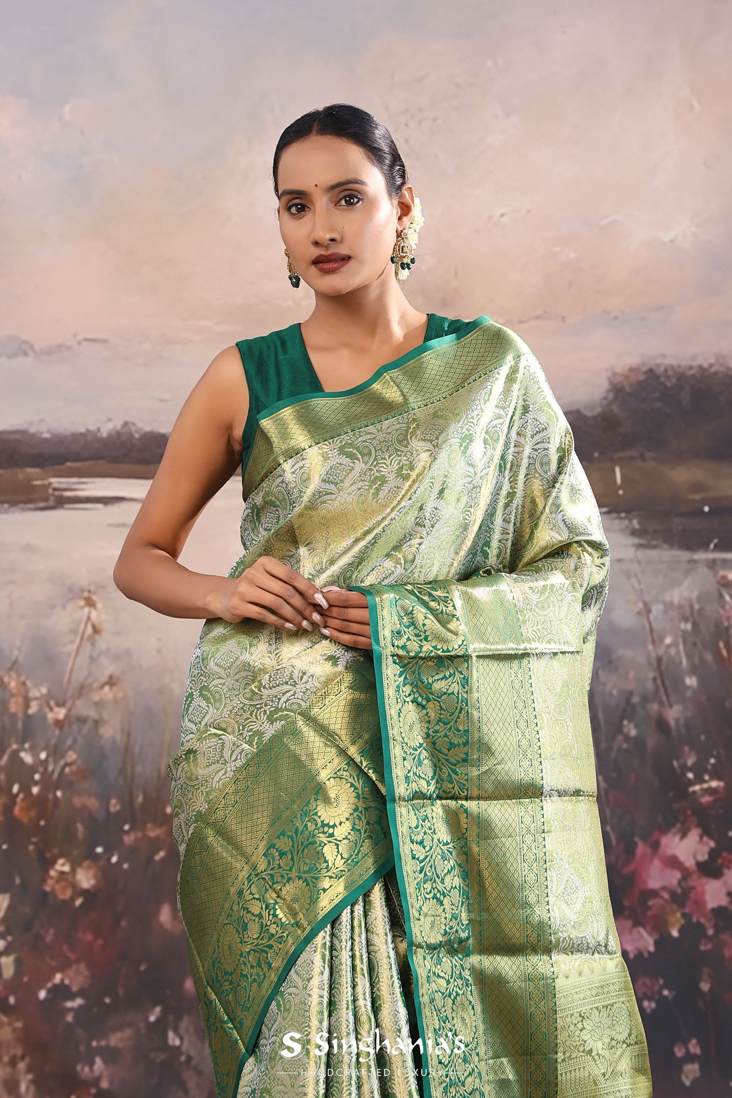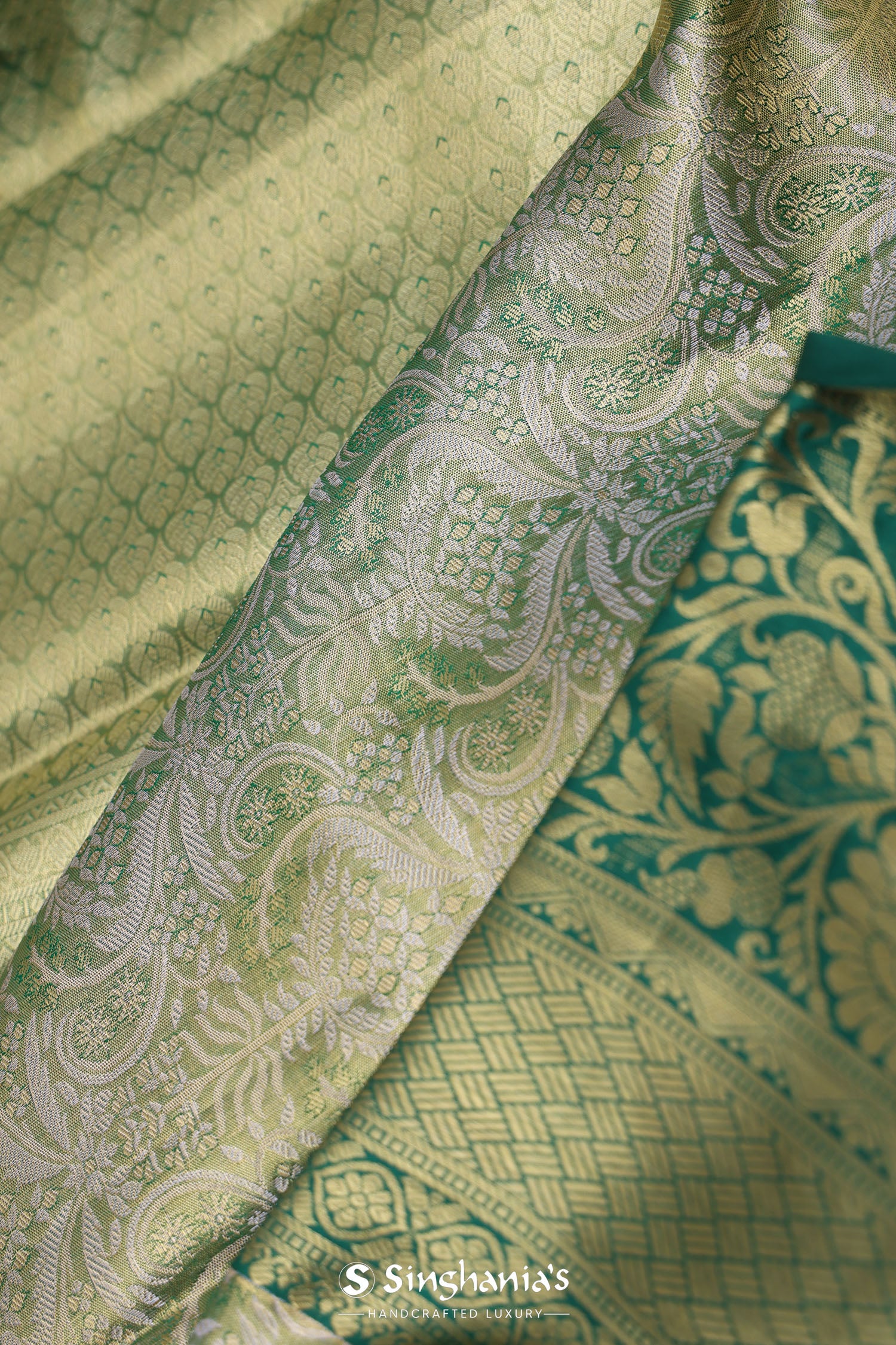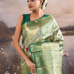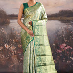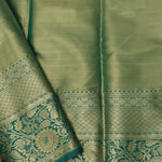 The floral and leaf design woven with silver zari complemented with self designer border which is adding the charm to overall look.