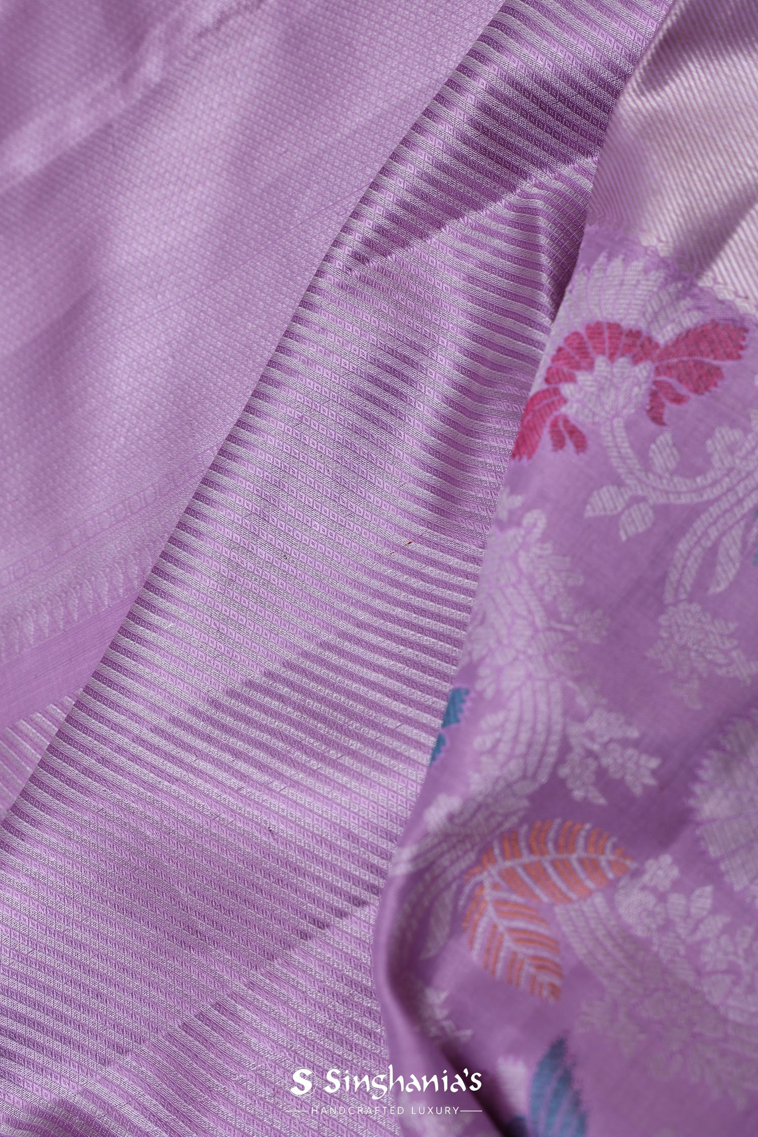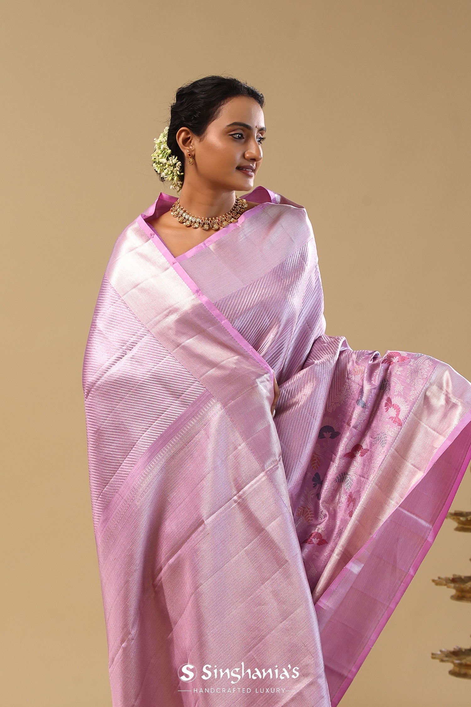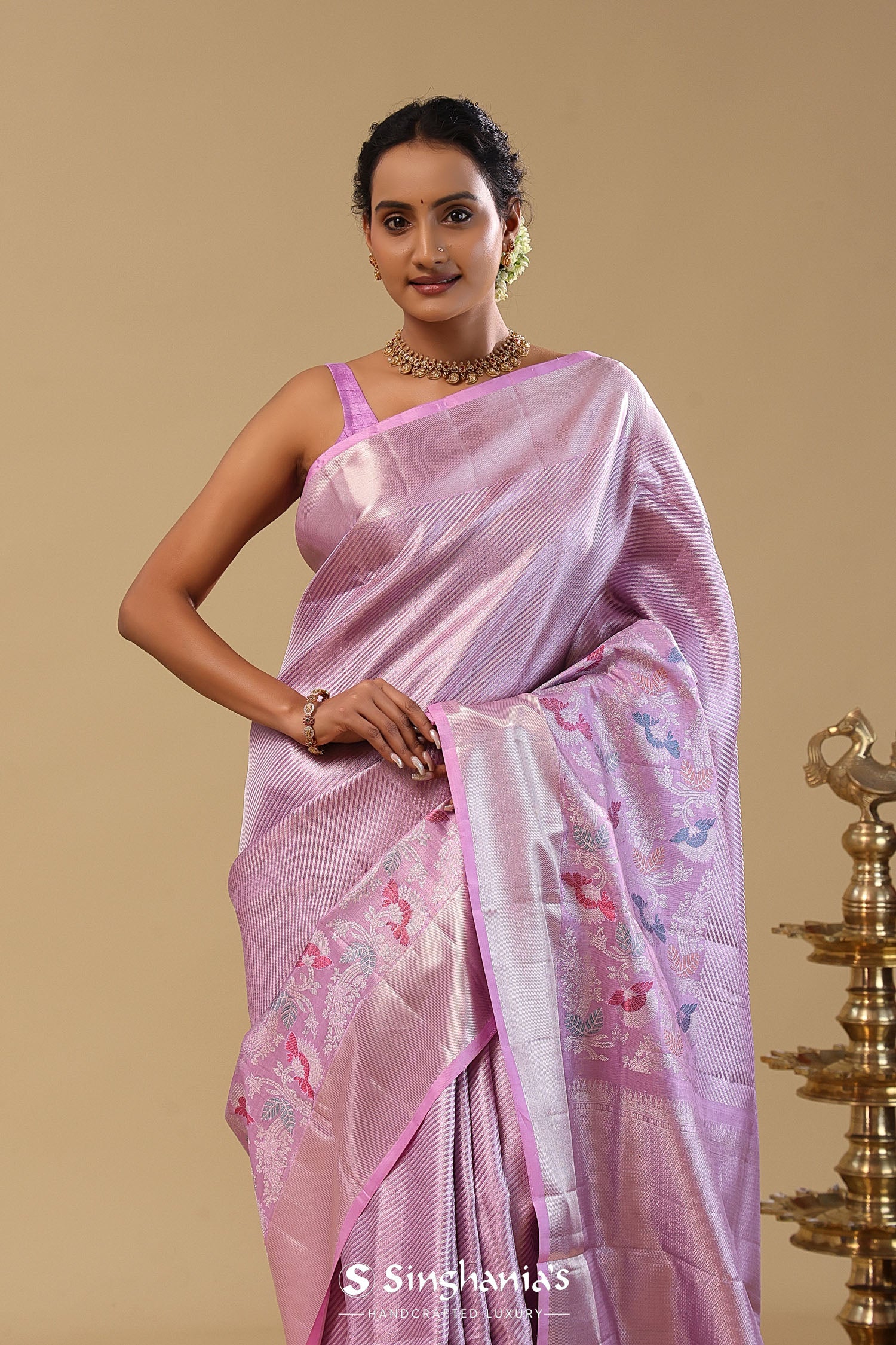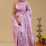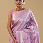 Lavender Kanjivaram Tissue Saree With Diagonal Stripes